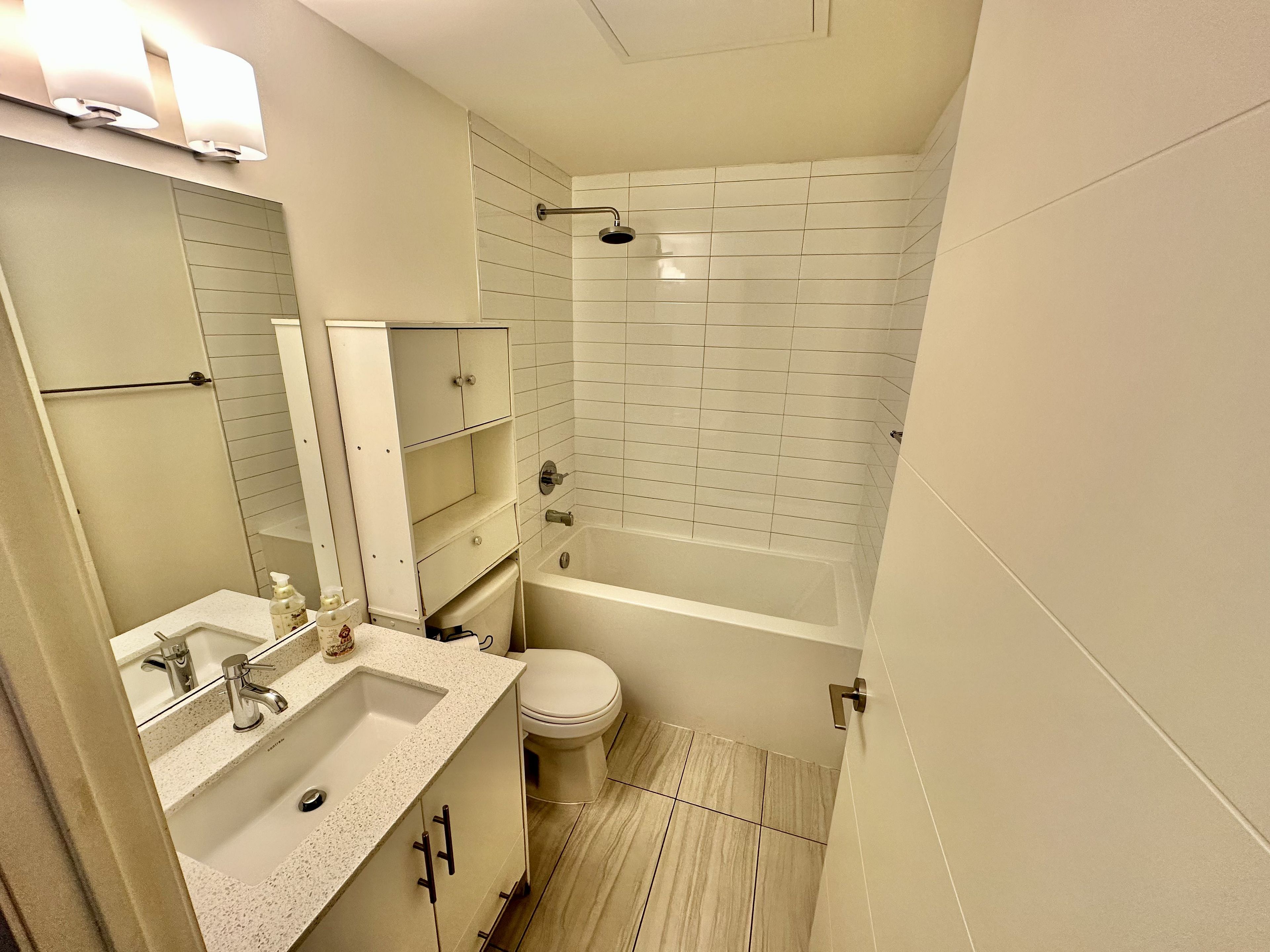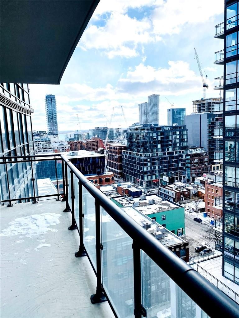Modern 1-bedroom suite in axiom condos featuring a functional, well-designed layout with defined foyer for added privacy. Bright open-concept living and dining area with floor-to-ceiling windows and walk-out to oversized private balcony (approx. 21'8") offering stunning 18th-floor views of lake ontario. Well-appointed kitchen with full-size appliances and ample cabinetry. Spacious bedroom with generous closet and 4-piece bath. Freshly painted, professionally deep cleaned, and move-in ready. Premium building amenities include 24-hour concierge, gym, guest suites, party room, rooftop deck, and elegant lobby. Unbeatable downtown location steps to st. Lawrence market, ttc, financial district, toronto metropolitan university, george brown college, and sugar beach, plus shops, cafés, and dining.
