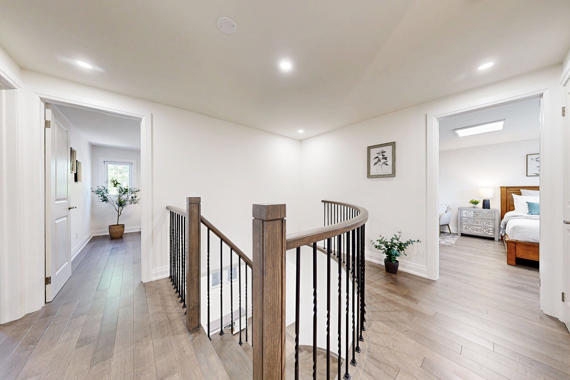 Nestled in a highly sought-after oakville neighborhood, this fully reimagined home has been meticulously renovated from top to bottom, offering designer touches and thoughtful upgrades all around! Step into a warm and inviting space, featuring a brand-new kitchen complete with a spacious island and high-end appliances (2024). The home has been updated with fresh paint (2024), elegant new hardwood flooring and stairs (2024), new doors throughout (2024), and modern, updated bathrooms, including a master ensuite, second-floor bath, and a convenient powder room. Enjoy the added convenience of a new second-floor laundry room with a new washer/dryer (2024), and mostly new windows (2024), as well as a stunning new main entrance door (2024). Rest easy knowing that the home is equipped with a new luxury roof shingle and plywood (2024), upgraded attic insulation (2024), and all new blinds and curtains (2024-2025). The lower level is an exceptional space, almost like a self-contained suite. With its brand-new private entrance and vinyl plank flooring (2025), this fully renovated area includes one bedroom, one bathroom, a kitchen, a living room, and plenty of storage. The space has been further enhanced with new insulation, windows, and an energy-efficient cold room door (2025). The basement is designed with maximum efficiency, offering ample room for a private area. It could serve as a storage unit or a recreation room for movie nights and sports. This area is separate from the suite, offering flexibility for use. Brand new asphalt driveway installed(2025). Ideally located across from aspen forest park, and just minutes from top-rated schools, major highways, and go stations, this home is also surrounded by parks, trails, a splash pad, and is close to the lake. Offering both luxury and convenience, this beautifully renovated home presents an exceptional opportunity in a prime oakville location.