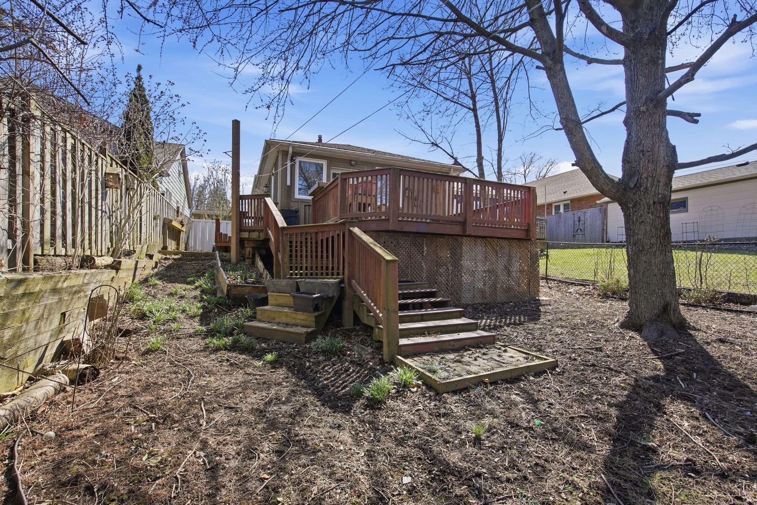 • Private backyard with opportunities for gardening or future expansion.