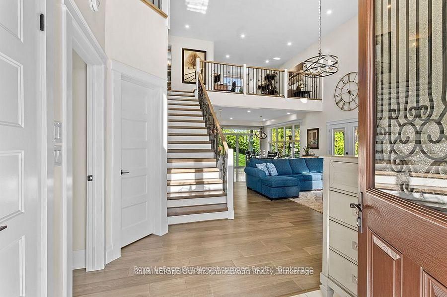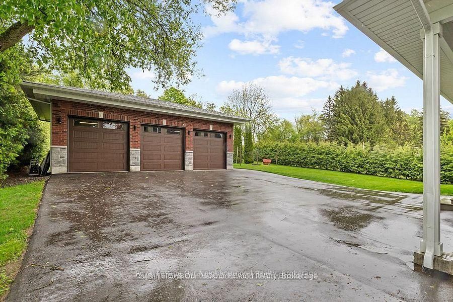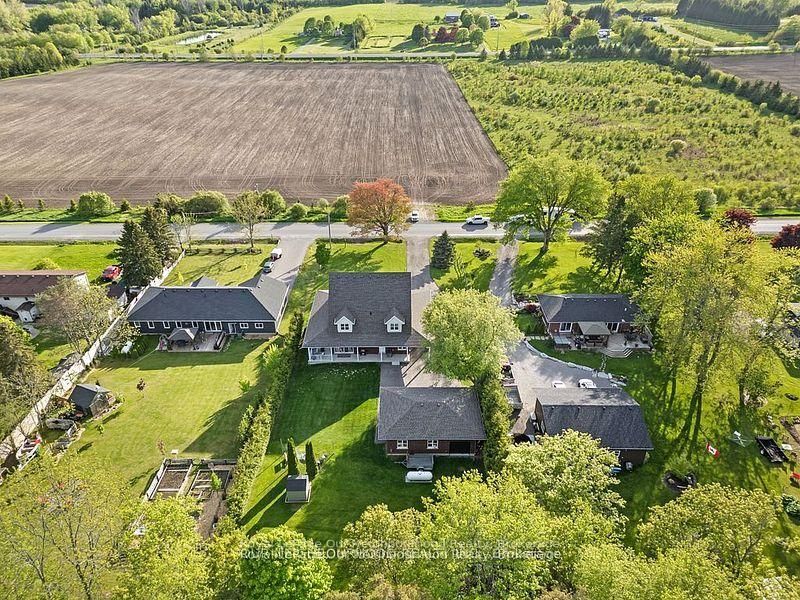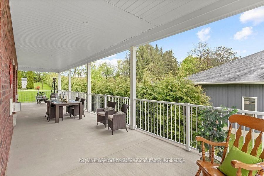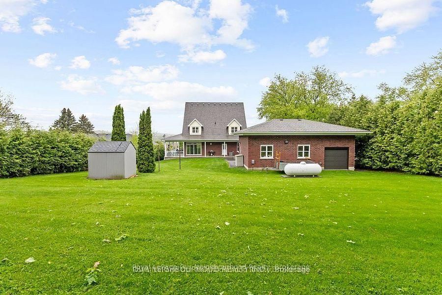This 2420 sq', 2 story 4 yr old exquisite custom-built home offers a seamless open-concept layout accentuated by panoramic views of beautiful country side. This home has 3 large bedrm with a second floor loaf great for an office or 2nd family room. Master bedrm has a large ensuite with claw foot tub and walk in closet. A custom built kitchen, complete with a 7' island and ceramic sink, soft close drawer with lights and many other details. This property boasts 9-foot ceilings on the main (& basement) with living area open to the 2nd floor. Wrap around porch has 3 walkouts, allowing you to entertain rain or shine. 3 large garages offers space for all your toys and a workshop w/rear access utility door. Car port and loads of parking, a large open space back yard for entertaining with lots of trees for privacy, great space for a pool and only 10 mins to rice lake. Newly installed fiber optic internet makes it easier to work from home.