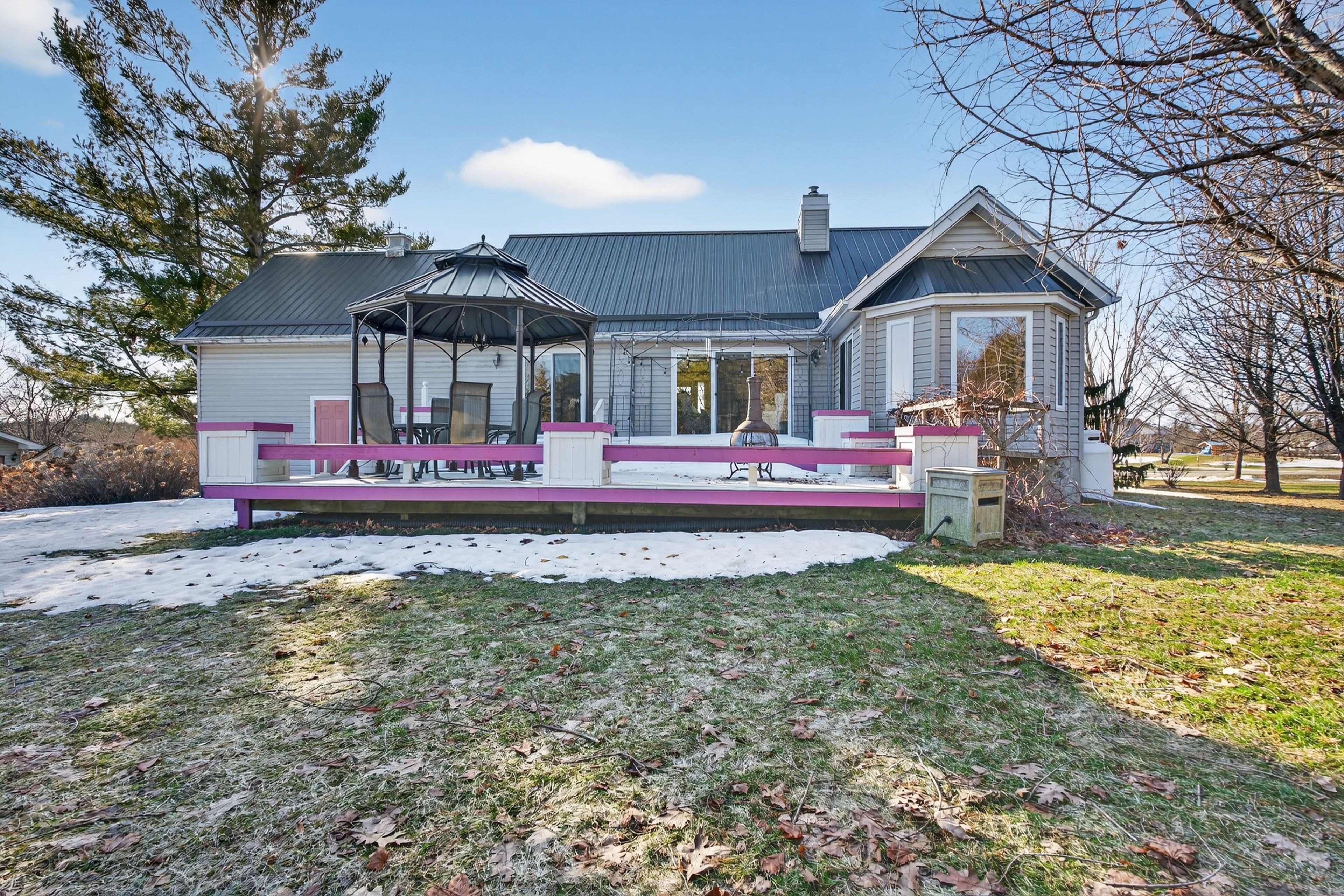Great neighbourhood perfect for young families and retirees alike! This updated 1560sf bungalow sits on a private1. 2-acre lot in victorian lake estates near sydenham lake. With over 2840sf of finished space, it offers a new custom kitchen with quartz counters, 3 bedrooms (master bedroom with ensuite, patio door and bay window), a vaulted great room with patio door and propane fireplace, separate formal dining room with another patio door. Hardwood and ceramic floors throughout most of the main floor. The lower level features an office/den/bedroom and a spacious rec room with electric fireplace, and large utility room with ample storage. Extras include: a400sf detached insulated and heated garage/workshop; 1-year-old propane furnace; hrv; uv/ro water treatment; metal roof; large rear deck with gazebos; elevated front porch; beautifully-landscaped grounds. Close proximity to all amenities, the cataraqui trail, sydenham lake and just 18 minutes north of kingston/hwy 401.