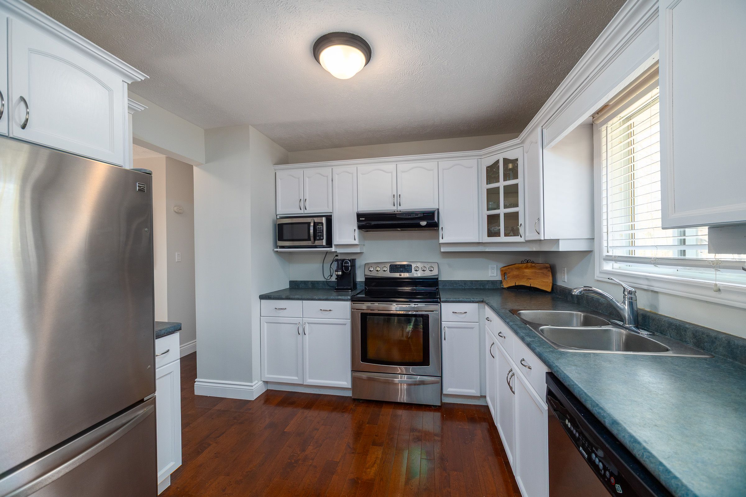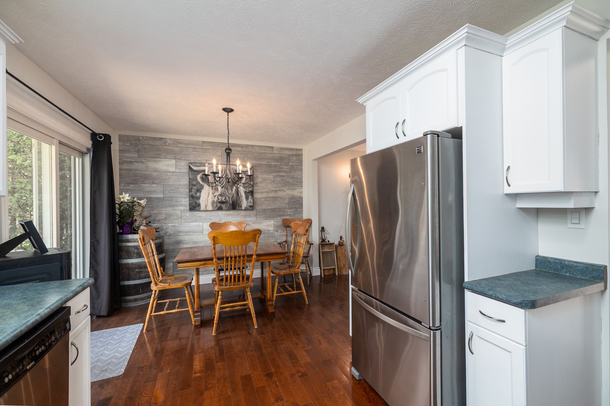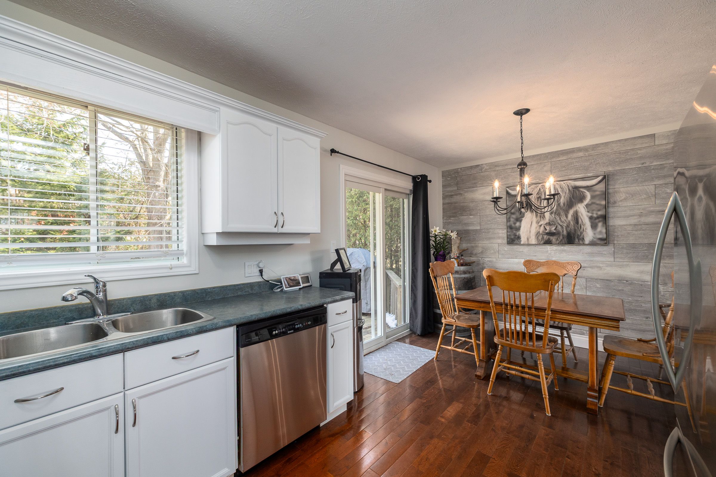 • Main floor features three bedrooms and a bright kitchen.