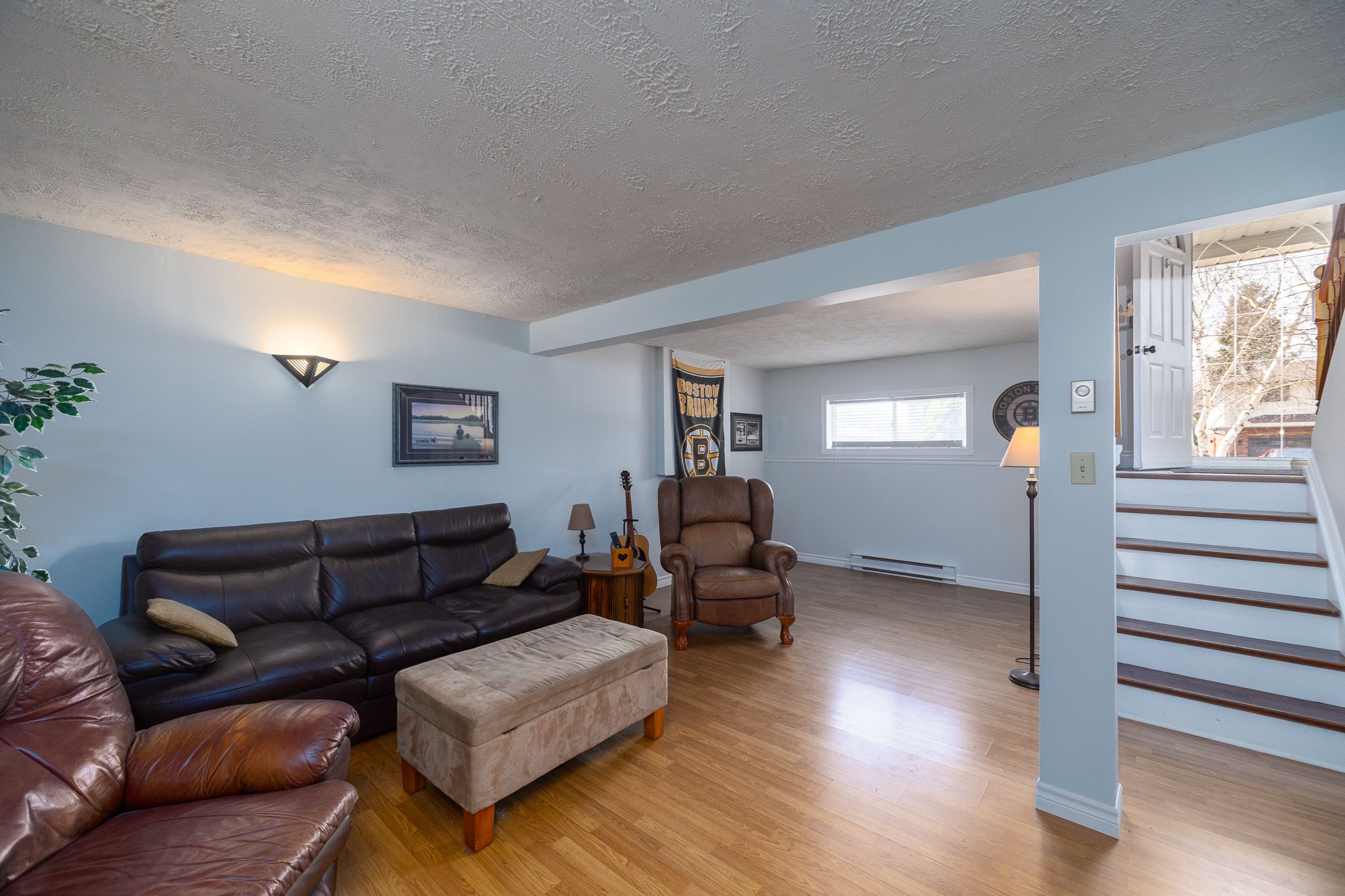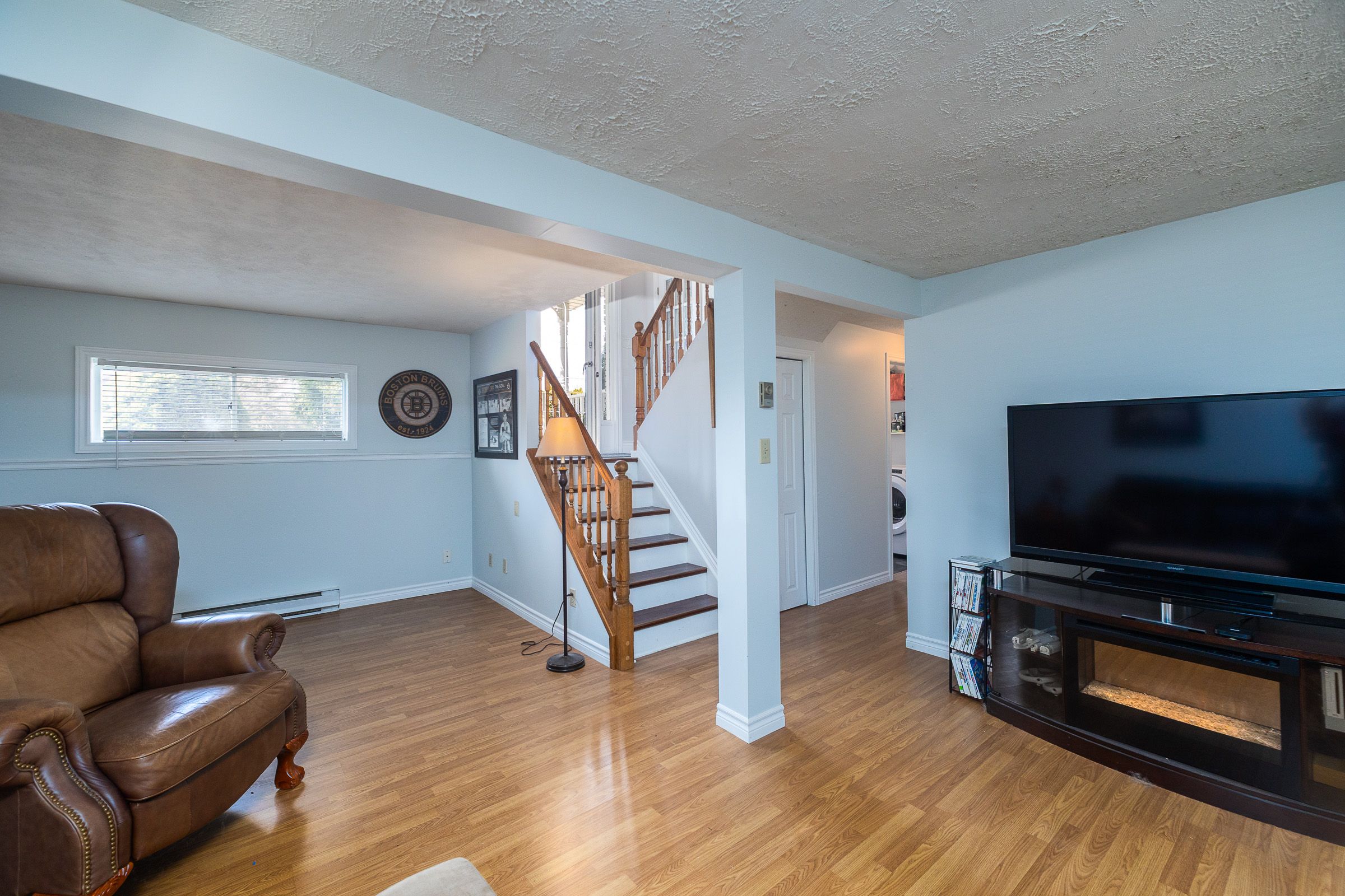 • Cozy lower level with a gas fireplace and fourth bedroom.