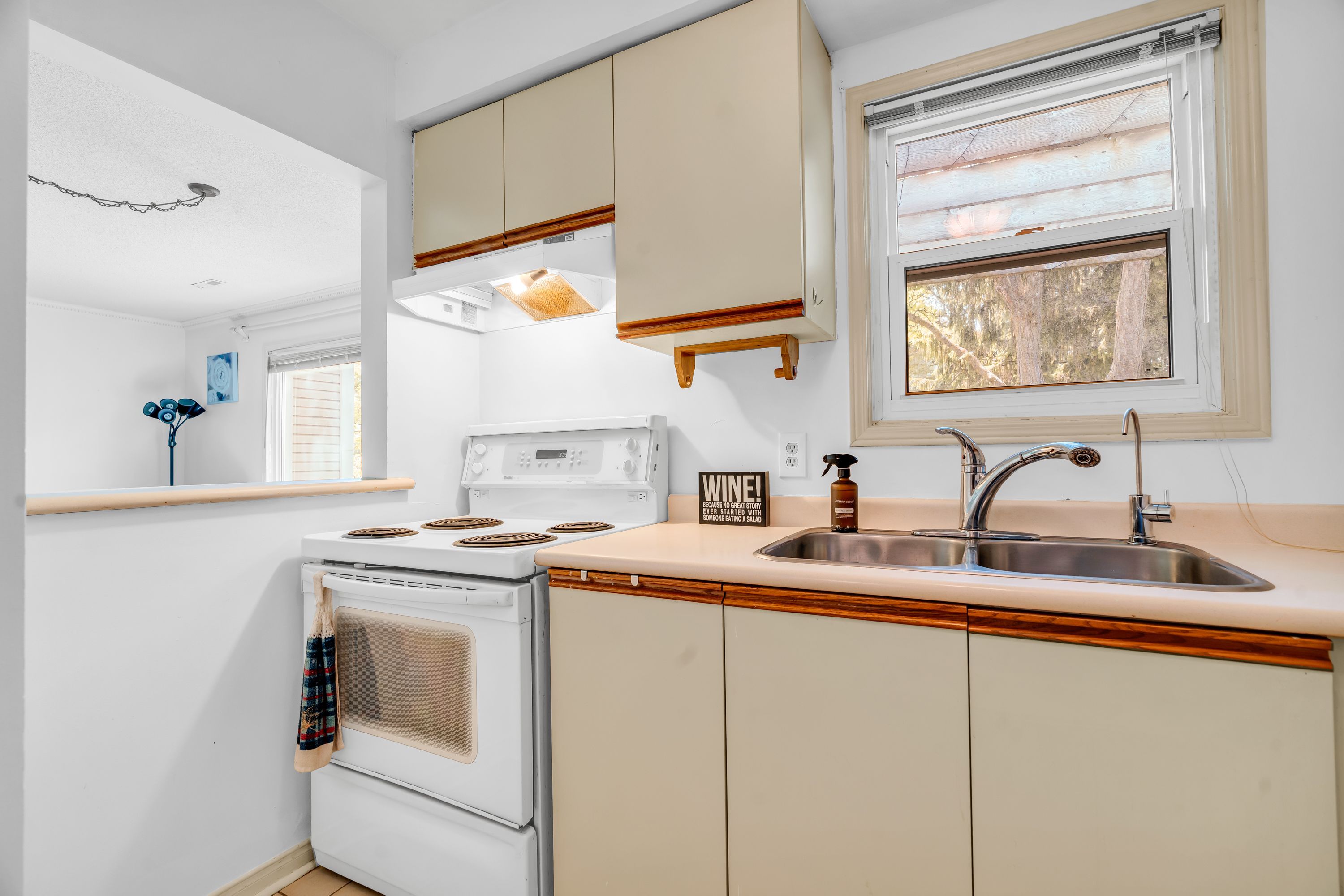 • Functional kitchen with a newer fridge for convenience.