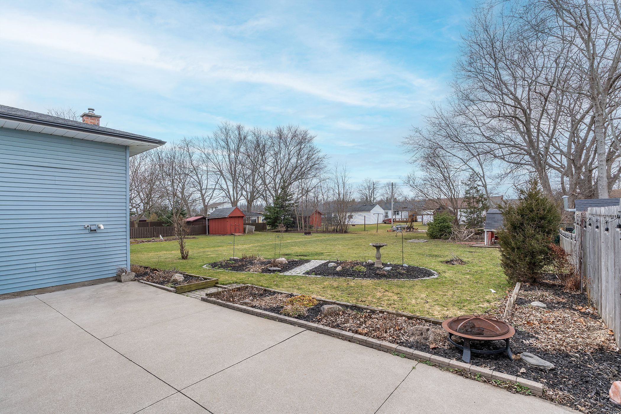 • Large yard with concrete patio offers room for outdoor activities and relaxation.