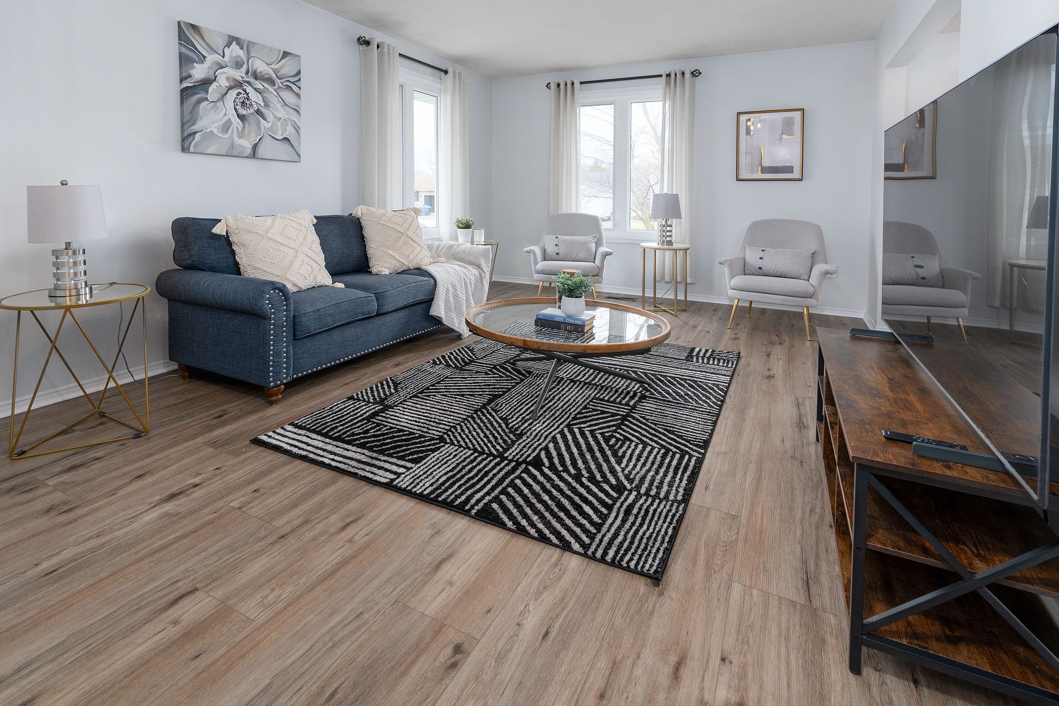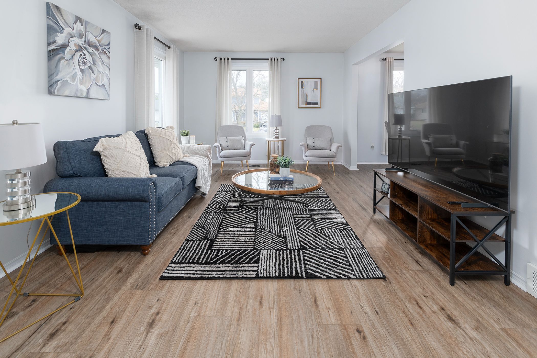• Spacious floor plan with bright living room opening to dining area.