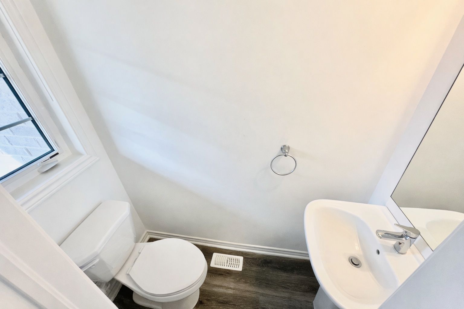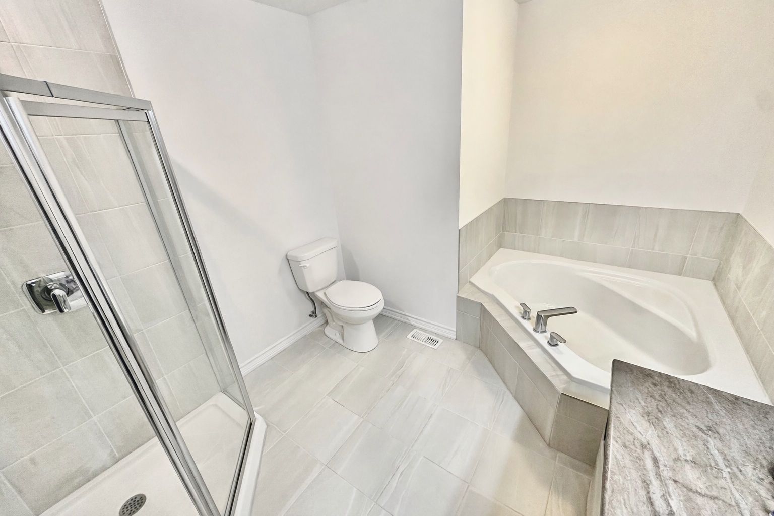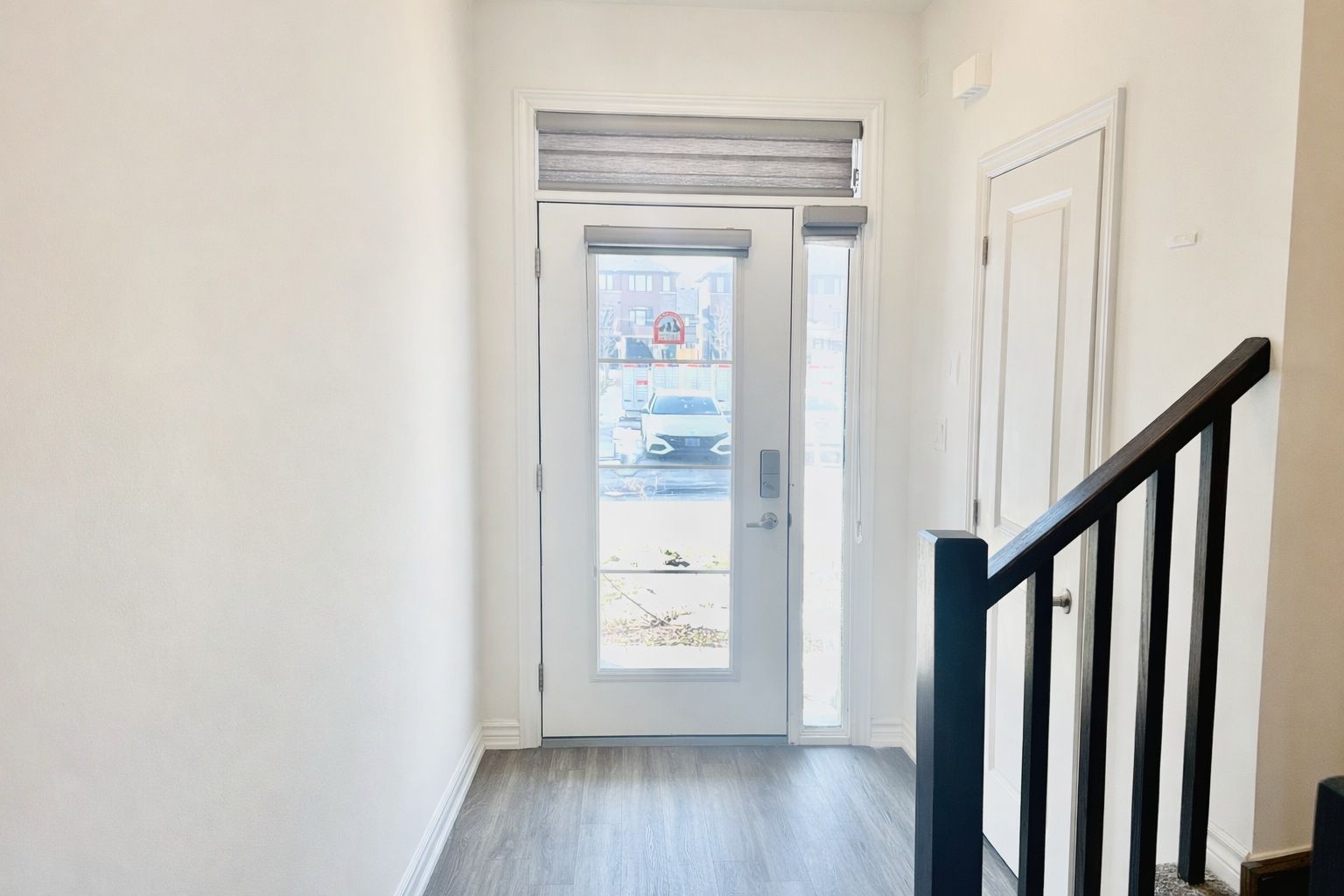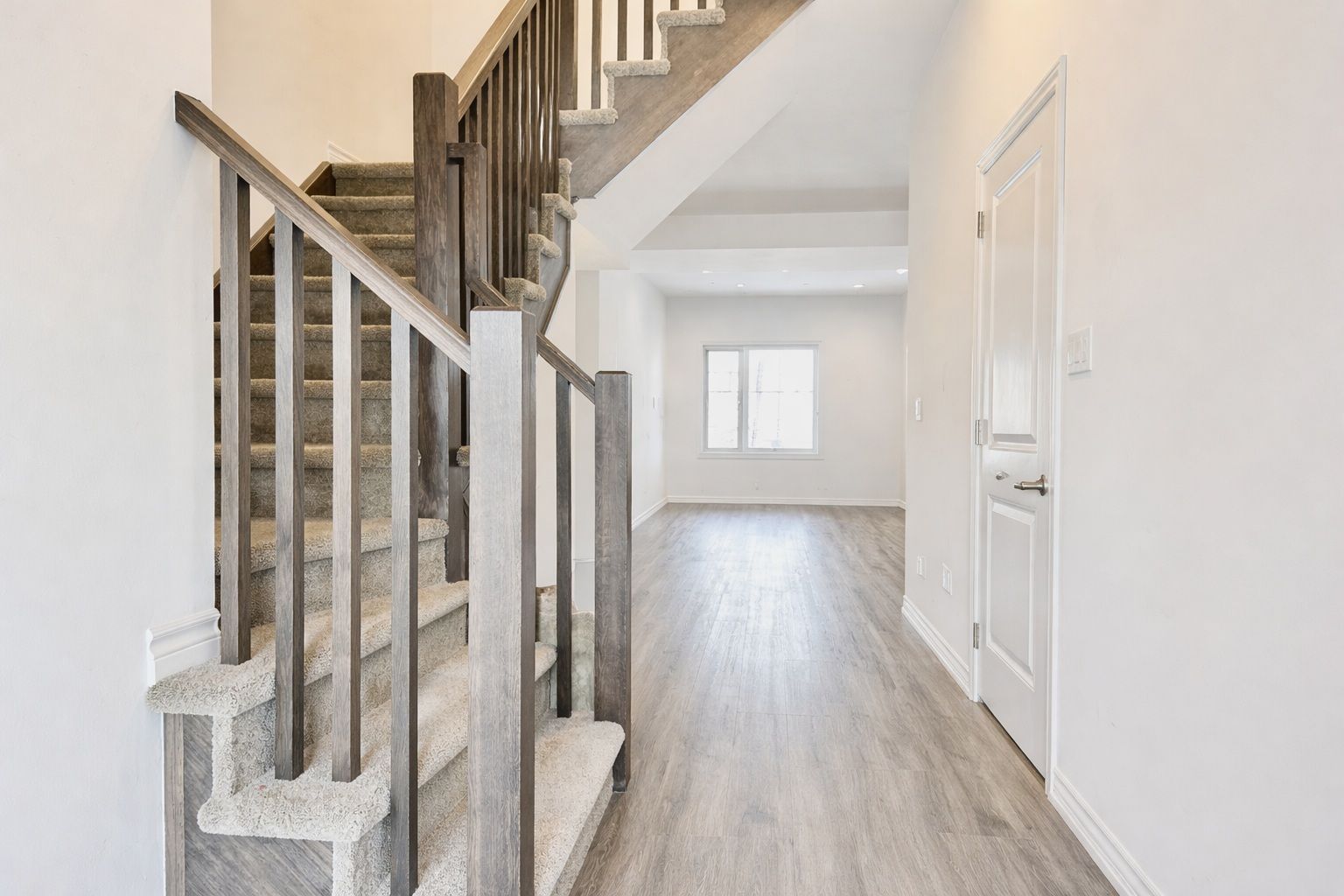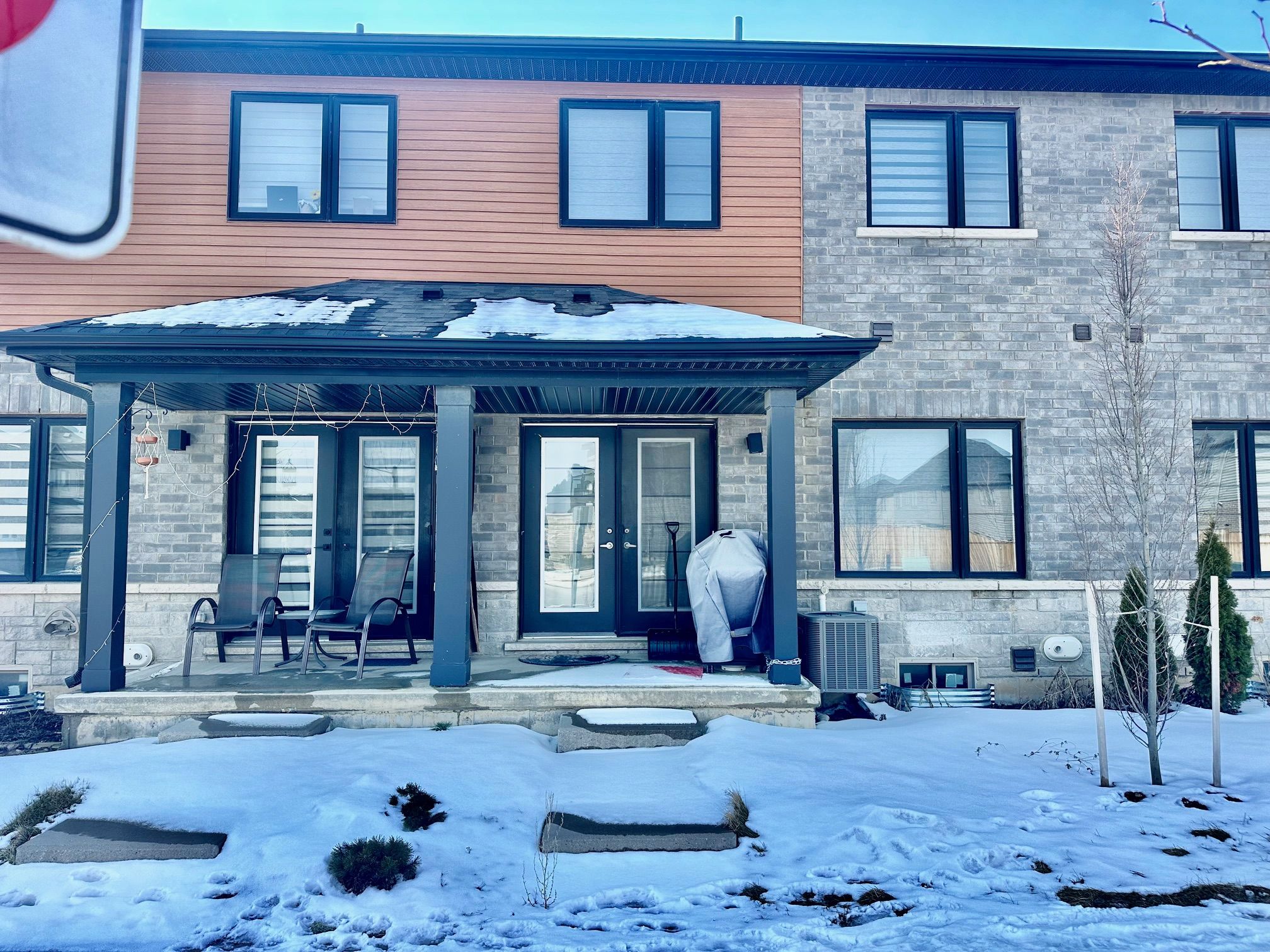 Finally a functional freehold townhome with an extra wide 20 foot lot for sale at such an affordable price! Built in 2023, located in sought after & newer west brant, contemporary designed 2 storey 3 bedroom 2. 5 bathroom 1582 sqft + huge unfinished basement with tons of upgrades! All 3 bedrooms each have walk-in closets, that is very rare to find! Attach garage with a auto garage door opener & direct entrance from garage to the home! Kitchen comes with an elegant subway tiled backsplash, stainless steel appliances, quartz countertops, kitchen island with deep storage! You will be surprised at how large the open concept living/sitting/dining area is! Laundry is conveniently located on the 2nd level! The master room is oversized, fitting a king size bed & couch set & desk very easily! The master 4-piece bathroom is also oversized with a glass stand up shower & soaker tub! Extra extra spent on the upgraded soaker tub with several jets to make it feel like a jacuzzi! Upgrades include: 3-piece rough-in basement for future washroom, tankless hot water heater, sump pump, wide vinyl plank flooring on main floor, microwave space saver, potlights on the mainfloor, breakfast bar area in kitchen, zebra blinds throughout entire home, 9 foot ceilings on main floor. Abundance of visitor parking & mailboxes right across the home convenient for you and your guests! Furnace, hrv, hot water heater all placed in a corner together, making the basement have tons of potential for your finishing! Backyard can be fenced off! *photos have been virtually staged by removing furniture, clutter and/or debris*