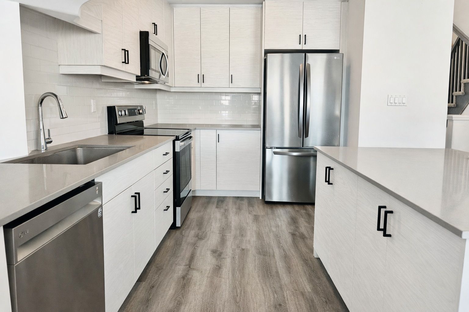 • Upgraded kitchen with quartz countertops and stainless steel appliances.