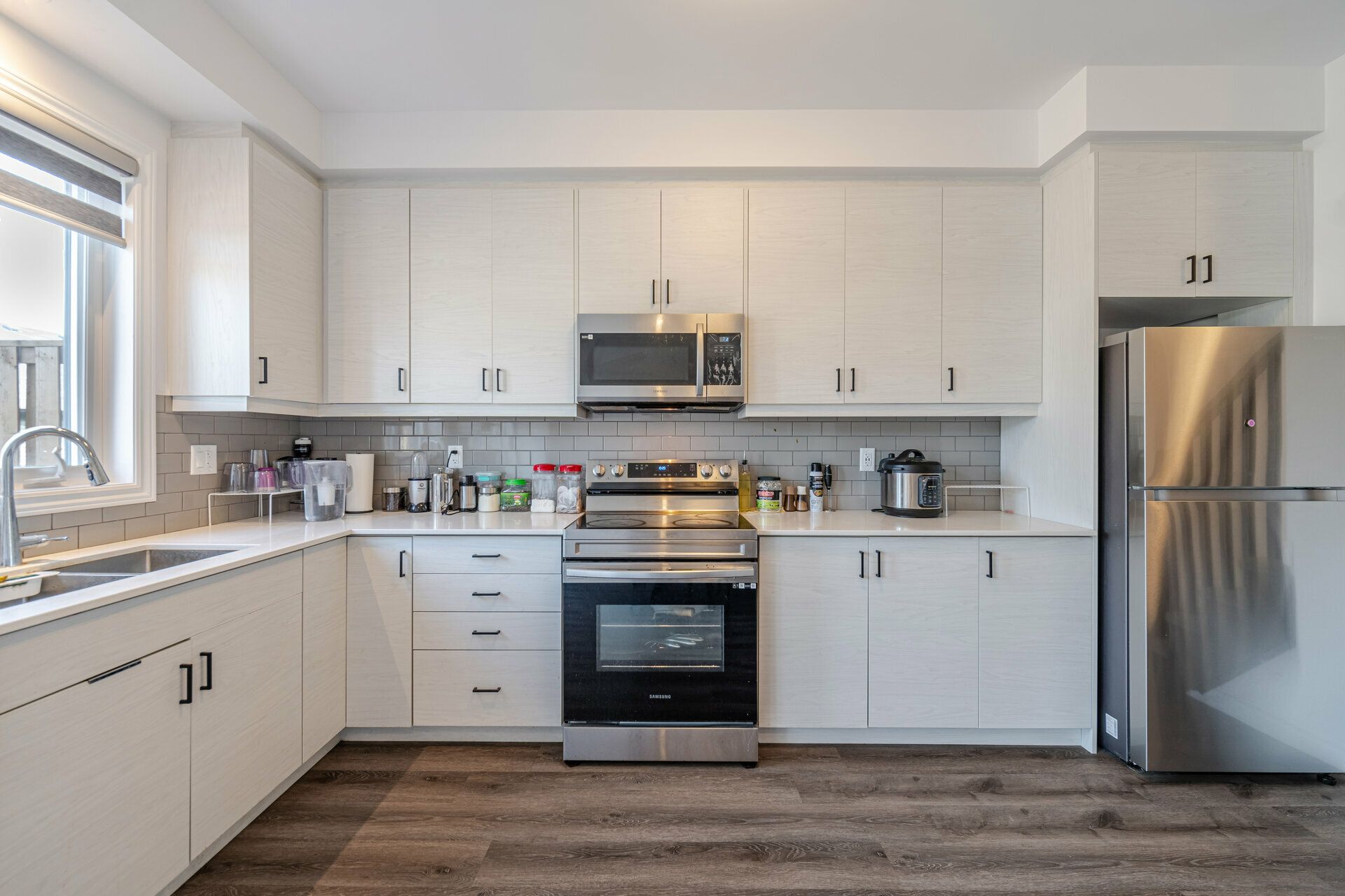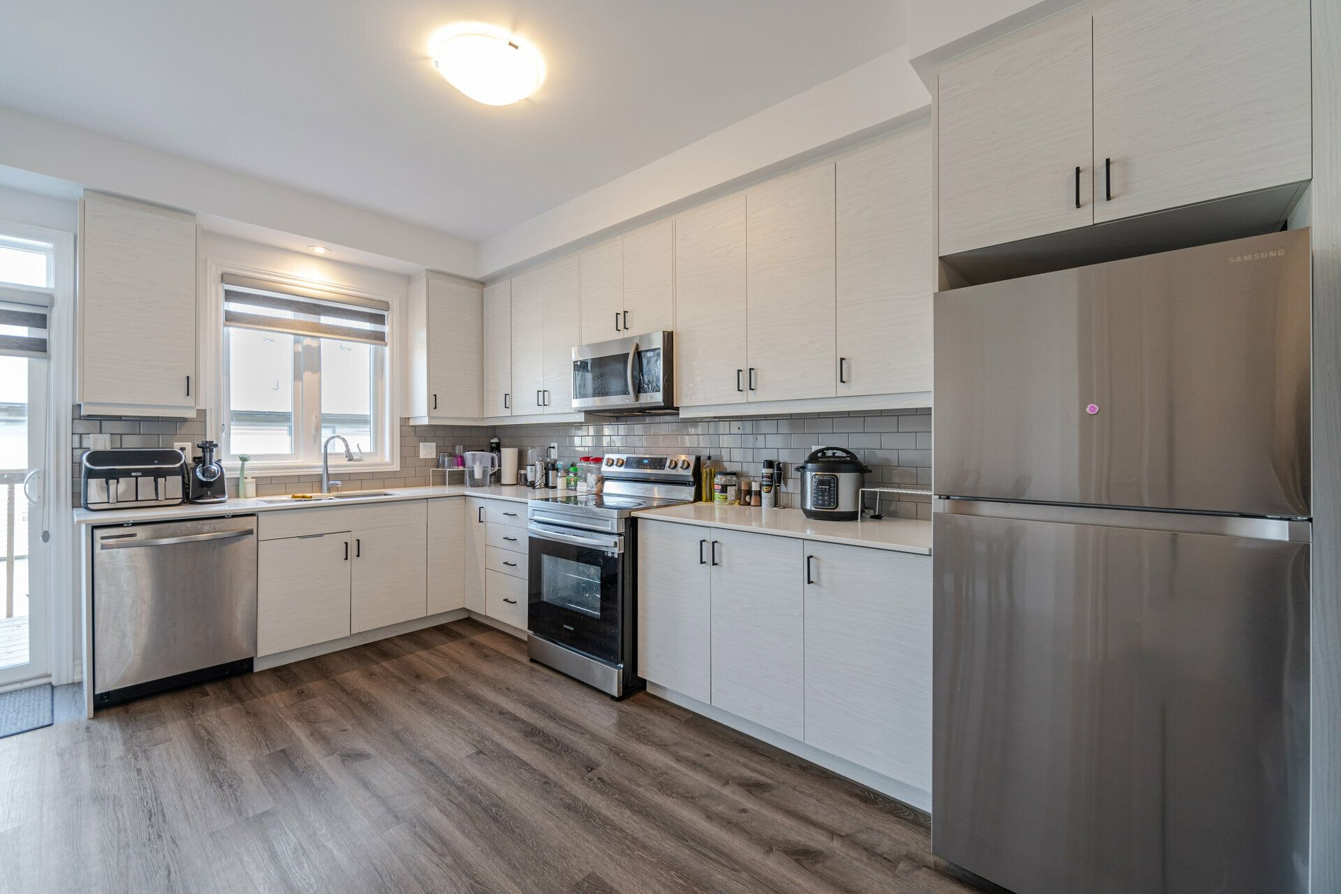 • Upgraded kitchen with plenty of cabinets and quartz countertops.
