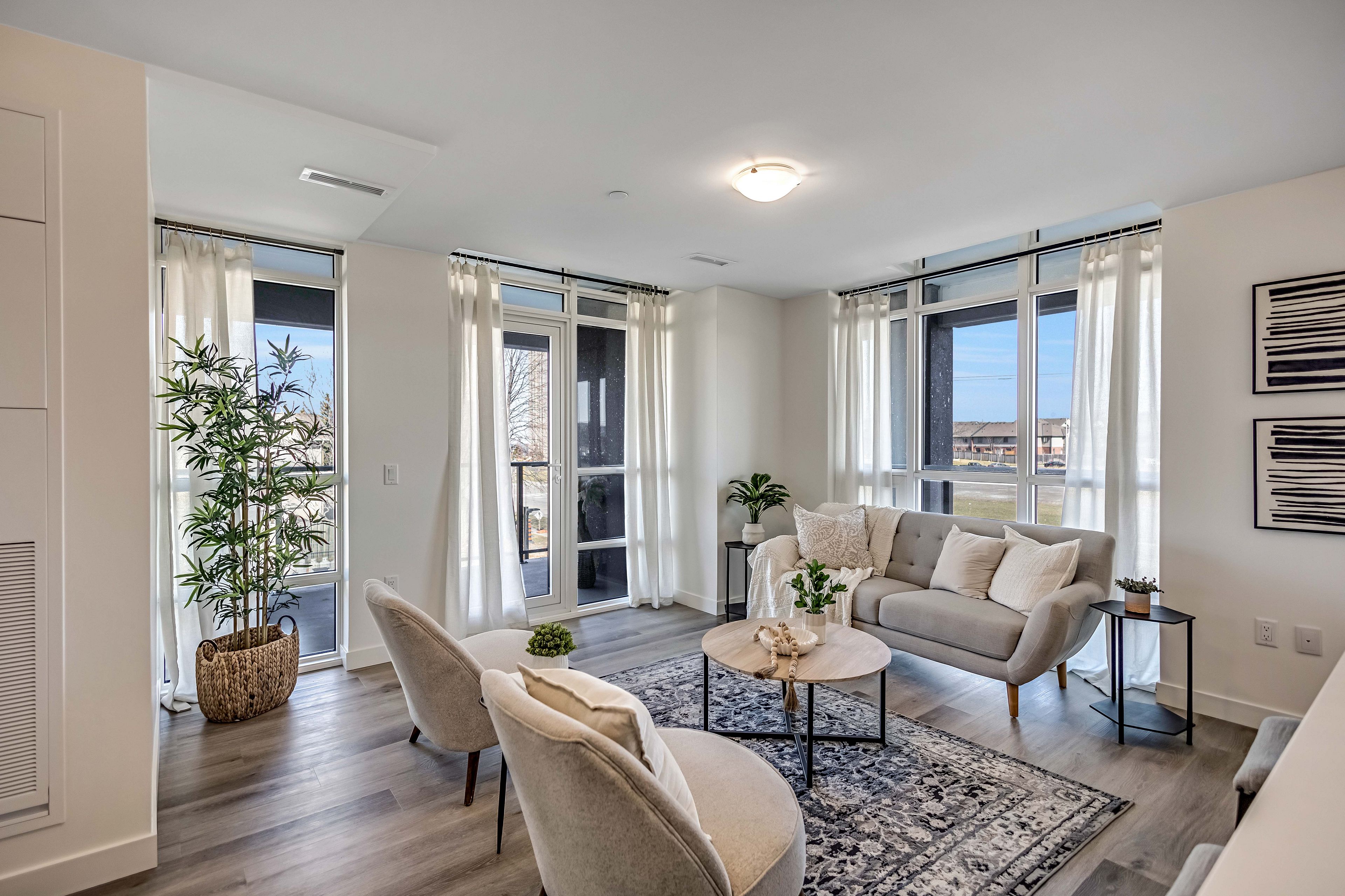 Wake up to stunning lake views in this brand-new residence at muse, where modern design meets effortless lakeside living in stoney creek. This bright corner suite offers over 1,100 sq ft of thoughtfully designed space, featuring 2 bedrooms plus a versatile den, perfect as a home office, formal dining area, or even a third bedroom. Floor-to-ceiling windows fill the home with natural light, while dual balconies on either side of the unit showcase breathtaking views of both lake ontario and the picturesque escarpment. Upgraded throughout, the suite features quartz countertops, a sleek tile backsplash, and luxury vinyl flooring, creating a clean and contemporary feel. Designed for convenience and comfort, the unit includes one underground parking space and a locker, along with smart-home features such as climate control, digital entry, in-suite security, and a voice- and touch-enabled wall pad. Residents enjoy access to a thoughtfully curated collection of amenities, including a rooftop terrace with bbqs, fire tables, and lounge areas overlooking the lake, as well as a fitness centre, yoga studio, party room, media room, pet spa, and more, ideal for both relaxing and entertaining. Located steps from waterfront trails, confederation park, and van wagner's beach, and with easy access to the go train and qew, this home offers the perfect balance of nature, lifestyle, and connectivity, ideal for professionals, downsizers, or anyone looking to enjoy modern lakeside living.