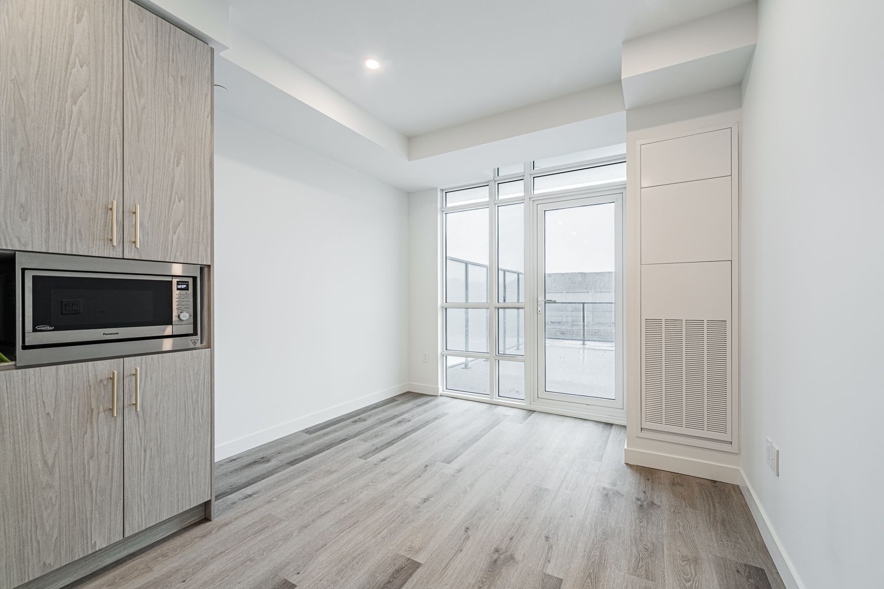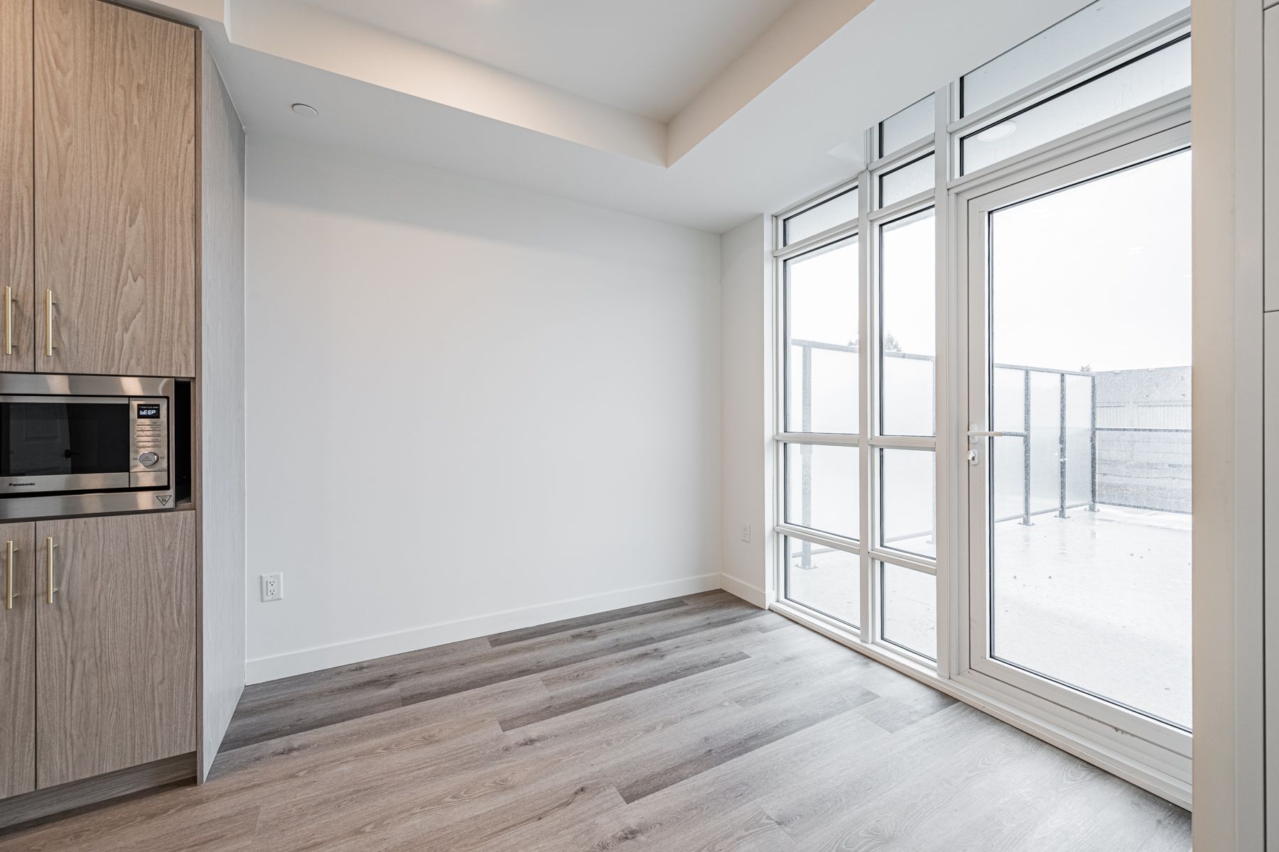 Stunning 1 bed + den | rare large terrace | stoney creek welcome to elevated condo living in the heart of stoney creek. This beautifully upgraded 1-bedroom + den unit is a true standout in the building, offering a rare oversized private terrace - perfect for entertaining, morning coffee, or simply soaking in the fresh air. From the moment you step inside, the thoughtful upgrades are impossible to miss. The chef-inspired kitchen has been meticulously enhanced with 100cm upper cabinets, quartz countertops and matching backsplash, under-cabinet lighting, and a generous 4-foot kitchen island extension complete with a dedicated pot and pan drawer. A built-in pantry closet with integrated microwave keeps the space sleek and functional, while the 30" cooktop, wall oven, hood fan, and 33" fridge round out a kitchen that truly has it all - including a water line to the fridge for added convenience. Stylish vinyl flooring flows throughout the open-concept layout, complemented by 15 pot lights that bathe every room in warm, modern light. The den offers a versatile bonus space - ideal as a home office, nursery, or guest room. Beautifully upgraded bathroom ; parking & locker included