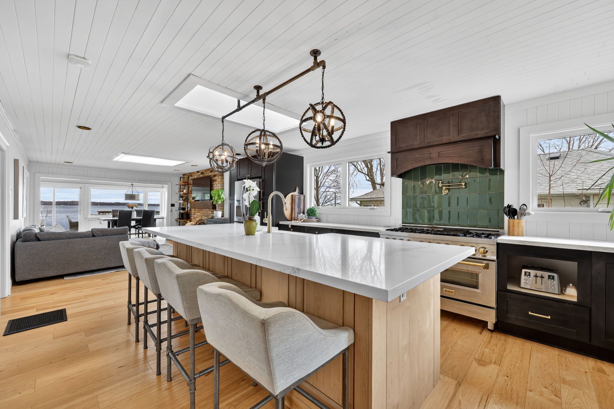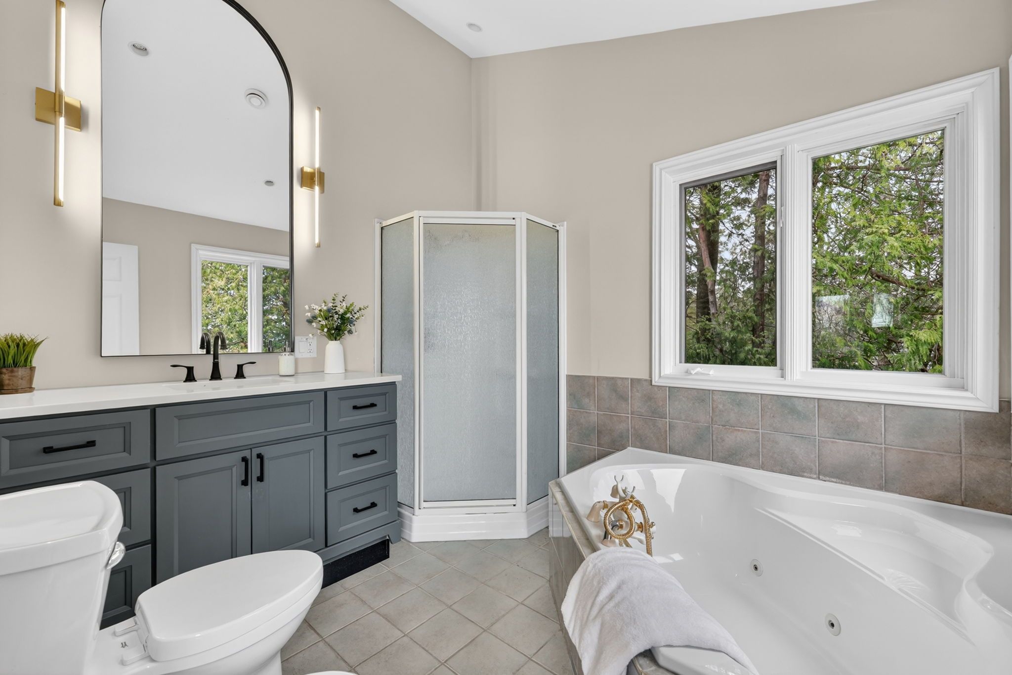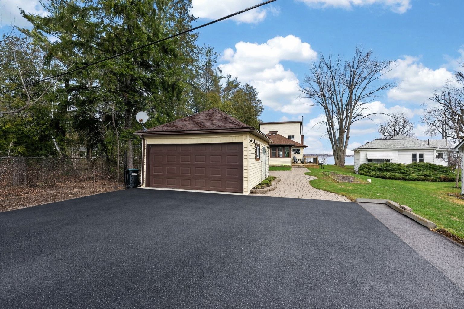 Experience the ultimate lakefront lifestyle with 50 ft of pristine, direct waterfront on lake simcoe's cooks bay! Tucked at the end of a quiet dead-end street and siding onto lush forest, this private 173-ft deep lot is a rare find! Enjoy endless outdoor fun with firepits, fruit trees, trampoline area, and space for family gatherings-plus you're just ~100 ft from a beautiful lake simcoe sandbar! This fully renovated home features a stunning chef's kitchen with a 10-ft island, farmhouse sink, zline 8-burner gas stove, pot filler, double oven & skylights, complemented by hardwood floors and breathtaking water views from nearly every room. Relax by the cozy fireplace or soak in the gleaming water from the sun-filled dining/ sunroom. Main floor offers laundry with built-ins and a bright spacious mudroom with double-door entry. Upstairs, the primary retreat impresses with 14-ft soaring ceilings, private balcony, walk-in closet & spa-like ensuite with jacuzzi tub. Additional features include an oversized insulated detached garage (18'x16') with ev hookup & 100 amp sub-panel, 200 amp service, tankless water heater, nat gas bbq hookup, hot tub pad & invisible fence. Recent renovations; kitchen ('21), flooring ('22), most windows ('22), main floor bath ('26), shiplap décor ('21), washer/dryer ('21). Prime location minutes to beaches, boating, golf, ice fishing, shopping, restaurants, yonge st & hwy 400-your perfect year-round waterfront escape & family home!