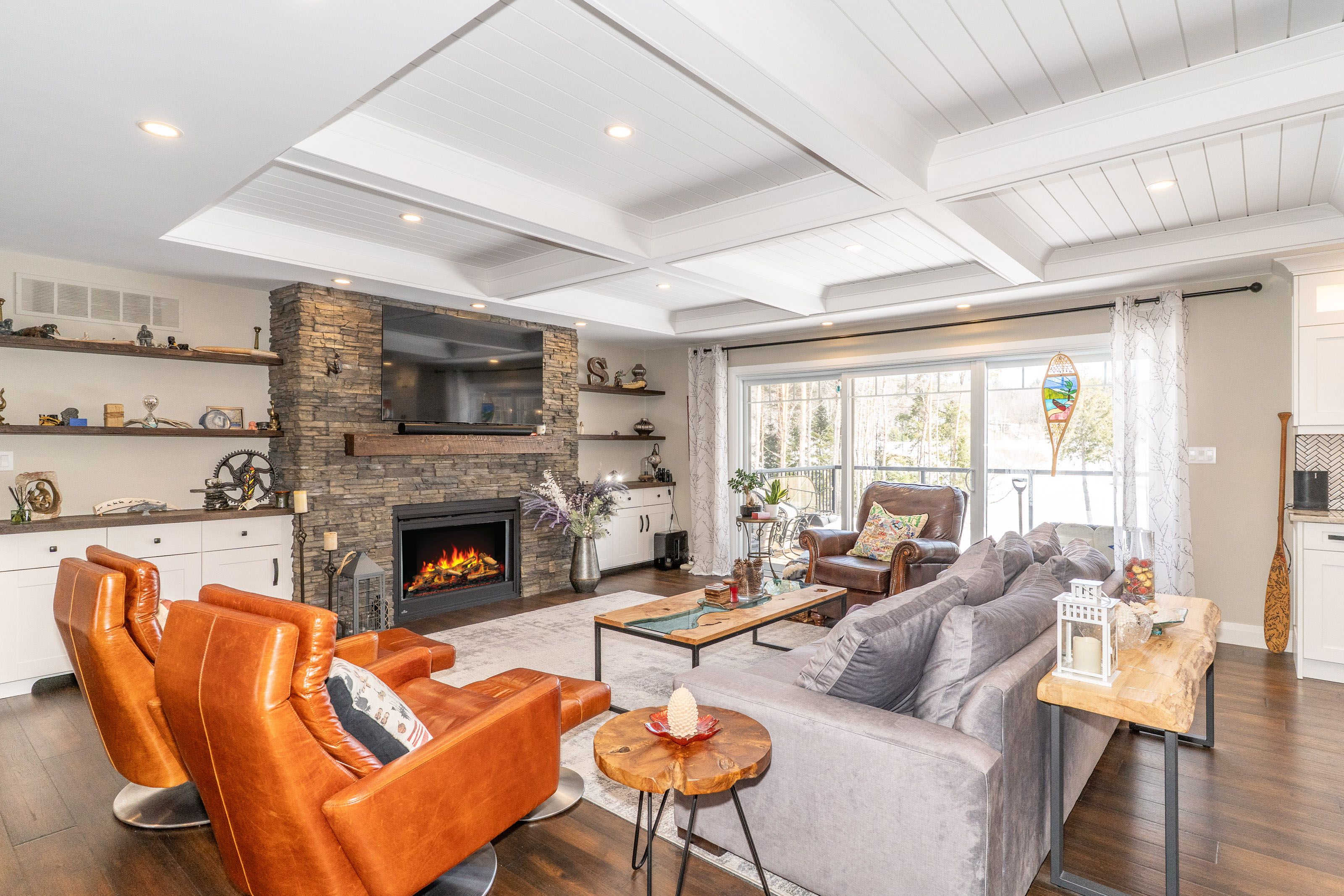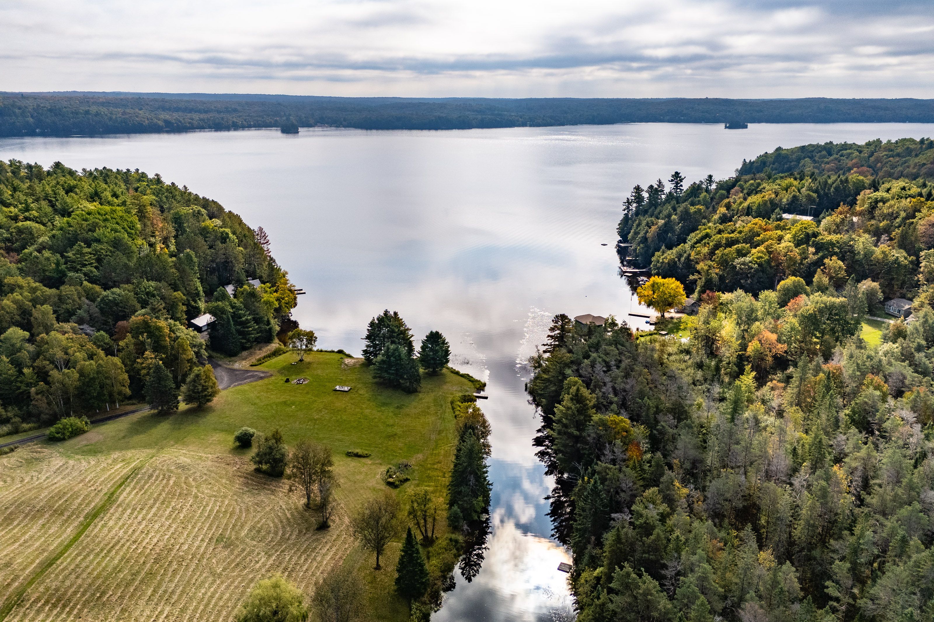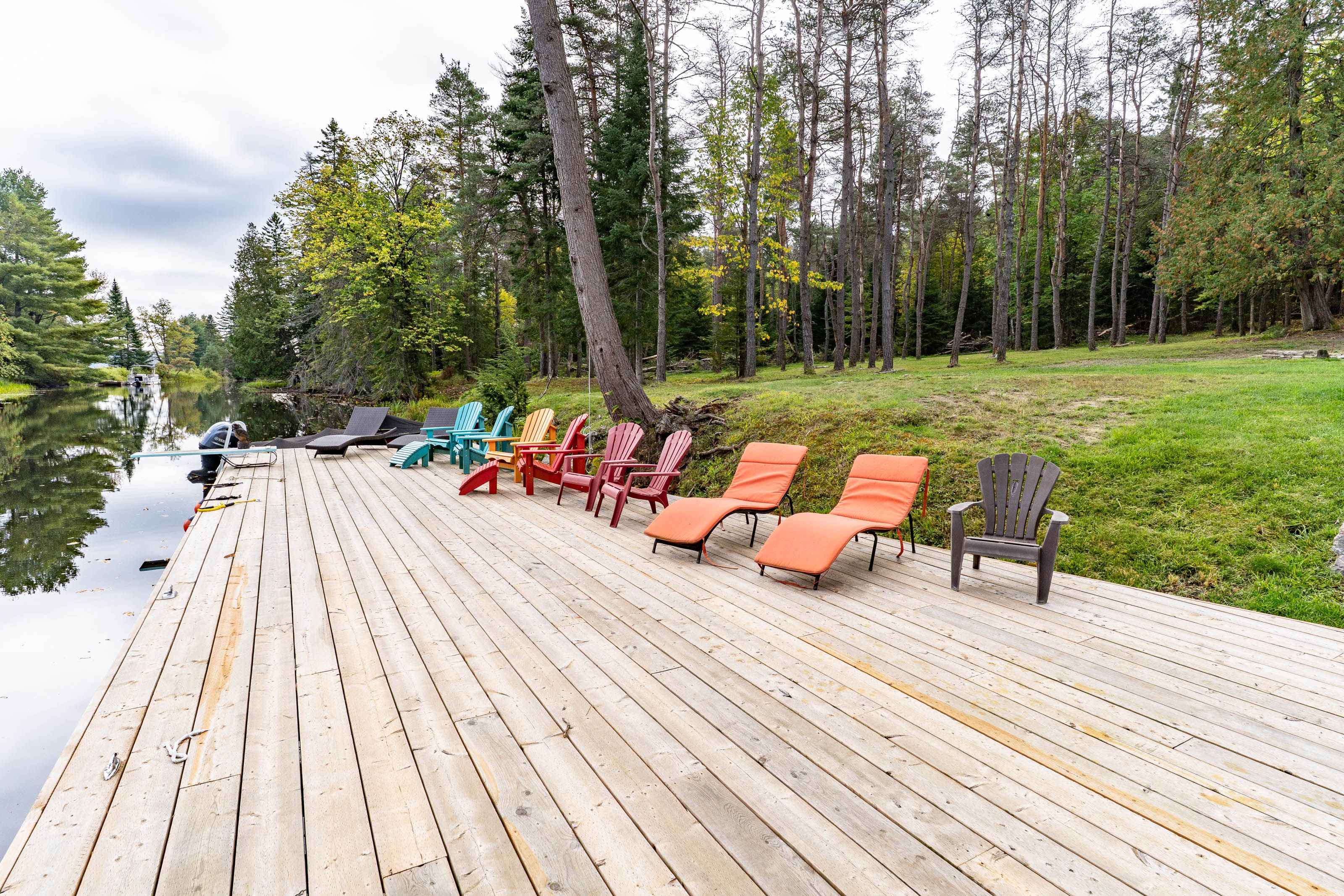 This is it! The complete package, sitting on about 4. 5 acres just minutes from hwy 11 this large custom home has a triple attached garage, walkout basement and around 400' of waterfront just a stones throw from mary lake. Offering direct access to beautiful mary lake and the 4 lake chain, this unique property has quiet and private dockage in the river with no neighbours across spoiling the serene view. The home was custom built in 2019 with quality finishes and a smart layout, it features a main floor primary suite, main floor laundry, a huge deck overlooking the expansive yard and river, and a walkout basement. The triple attached garage has a large loft currently used for storage but could be finished to suit your families needs. The large steel pile dock is great for lounging at the waters edge while the poured concrete patio is perfect for a campfire or to enjoy a soak in the wood fired hot tub under the stars. Extremely private, well thought out and the best of all worlds, this four season home or vacation property ticks so many boxes. Call for your private tour.