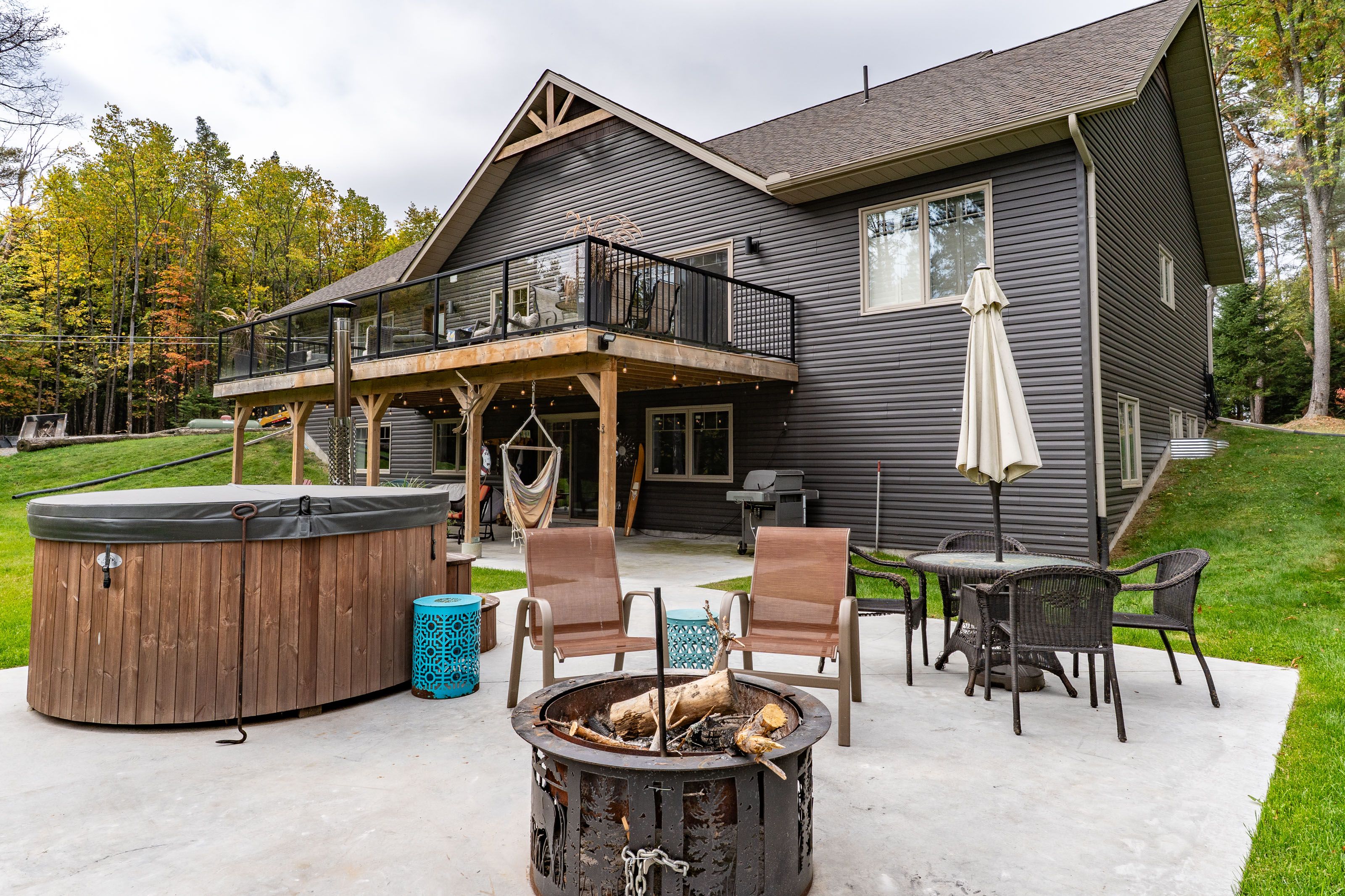 Subtype DetachedIndoor Features Primary Bedroom - Main FloorOutdoor Features Deck, Hot Tub, Patio, Privacy, Year Round LivingAmenities Clear View, Lake Access, River/Stream, Sloping, Waterfront, Wooded/TreedOwnership FreeholdViews Meadow, River, Trees/WoodsWaterfront DirectBasement Finished with Walk-OutFoundation ConcreteHeating / Cooling Forced AirHeating Fuel PropaneSewer Septic