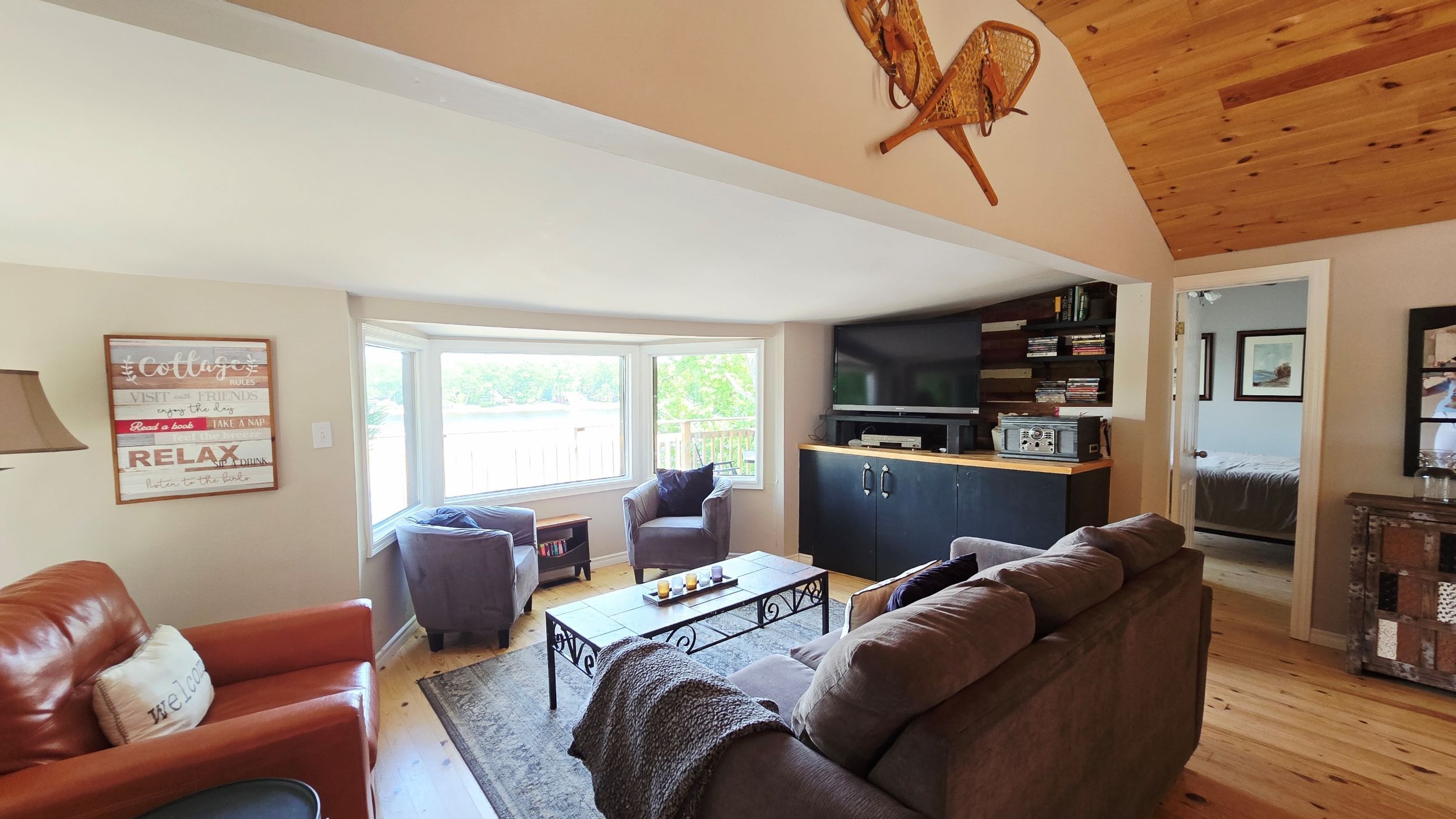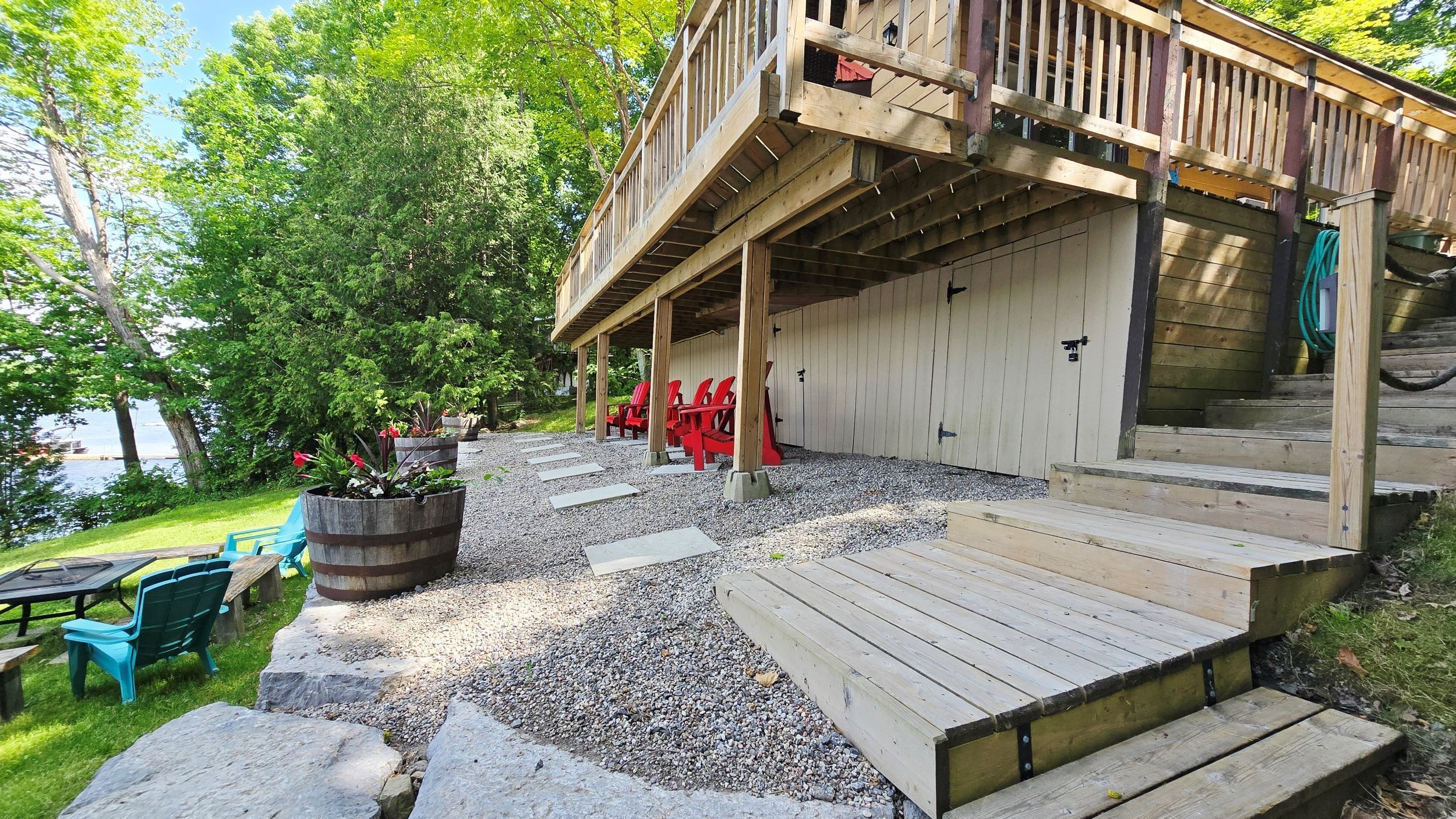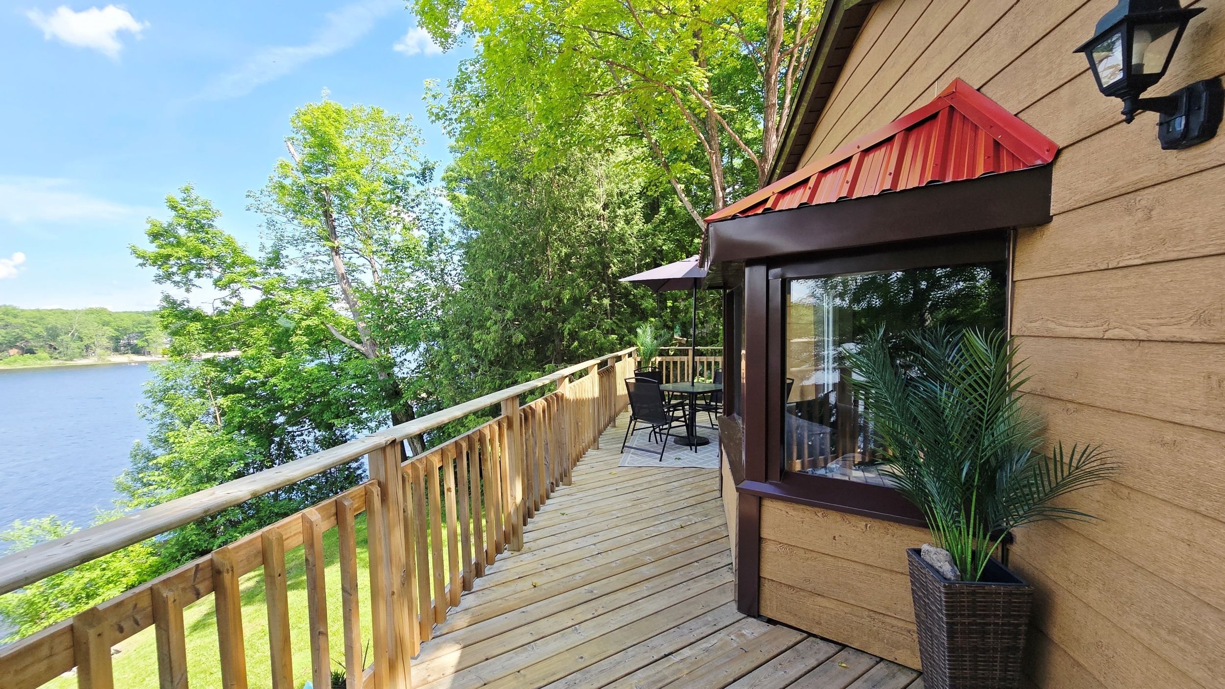 • Inviting wrap-around deck with stunning riverfront views.
