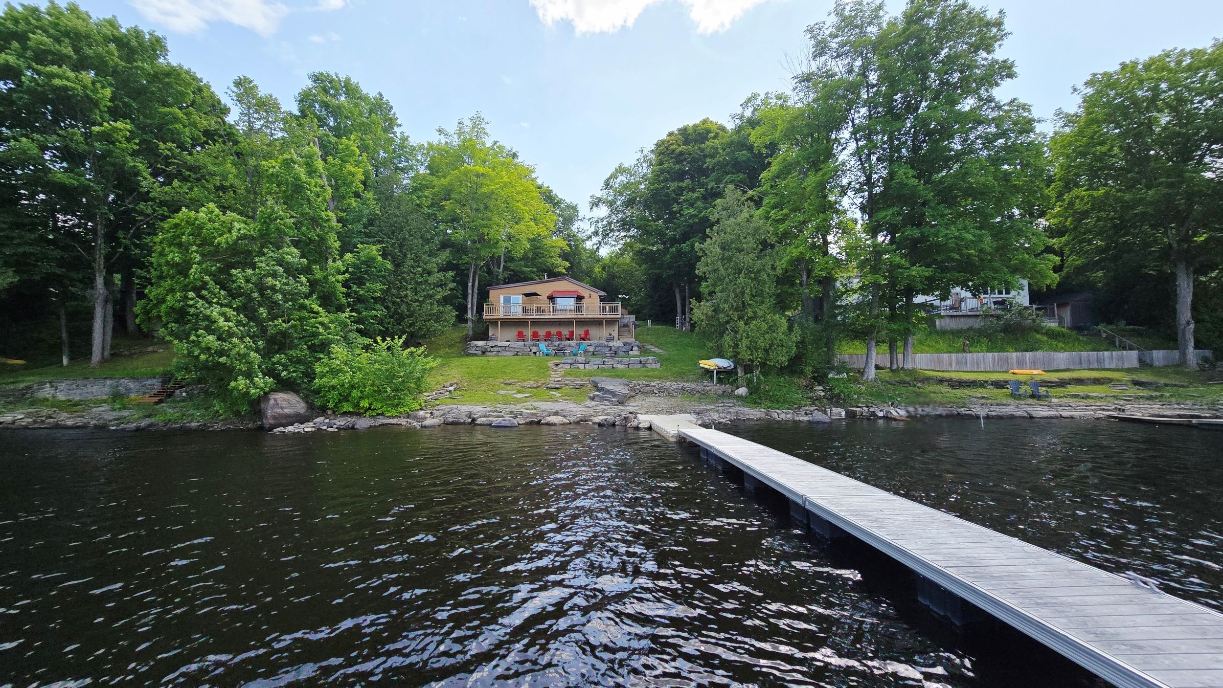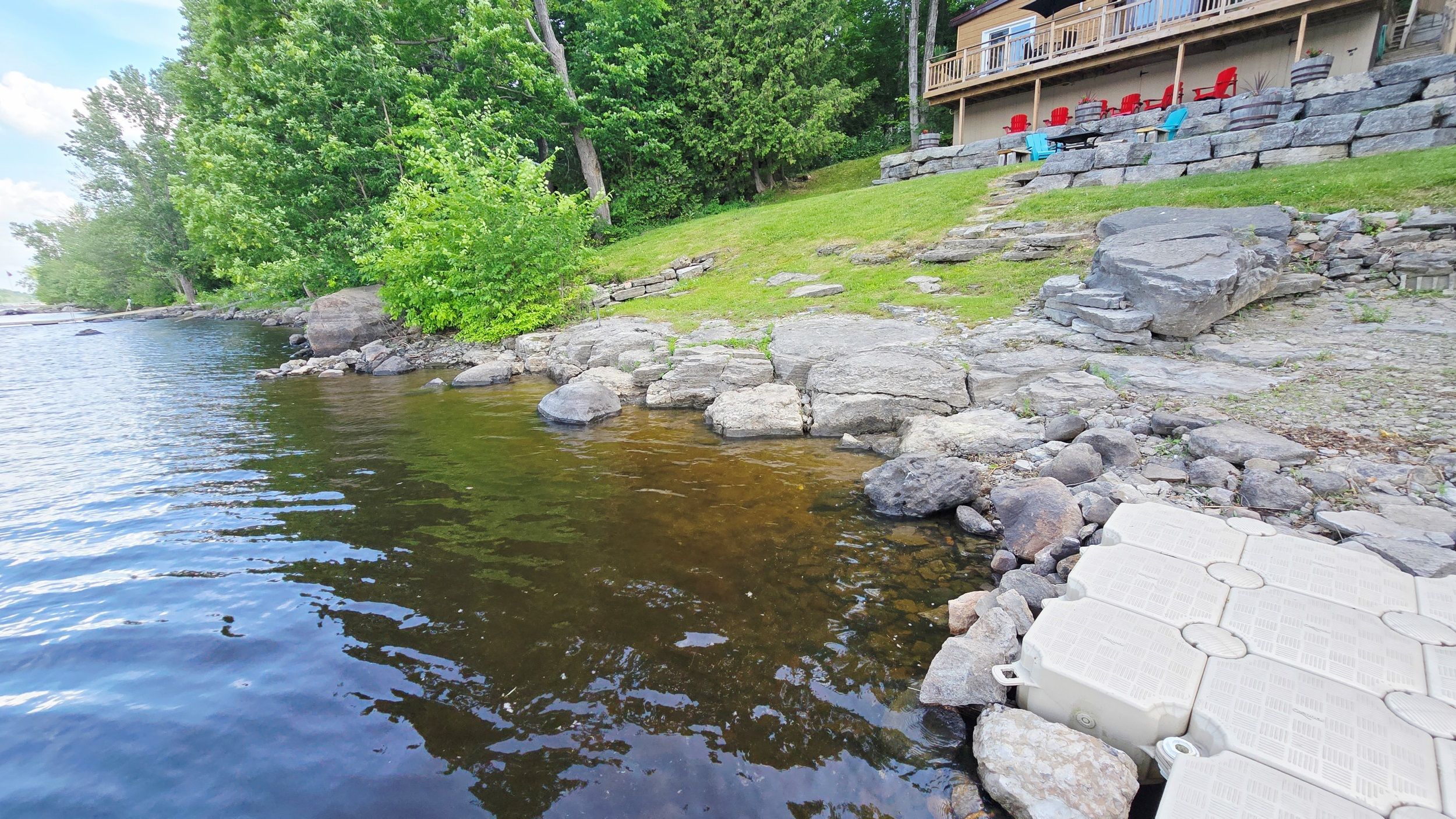 • 100 feet of pristine shoreline perfect for docking and swimming.