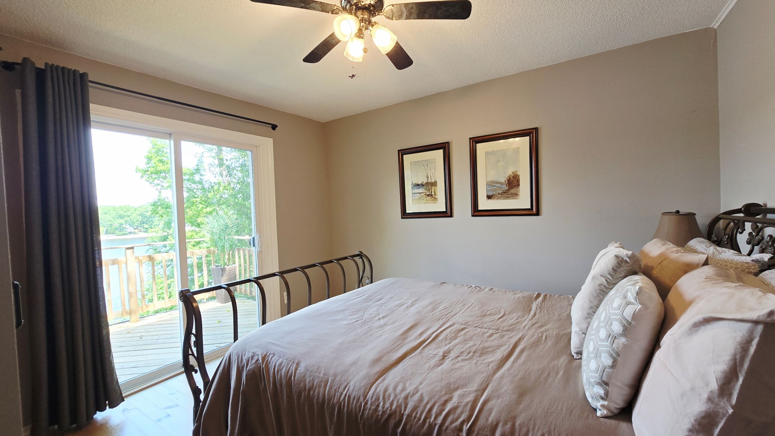 • Spacious primary bedroom opens to the waterside deck for relaxation.
