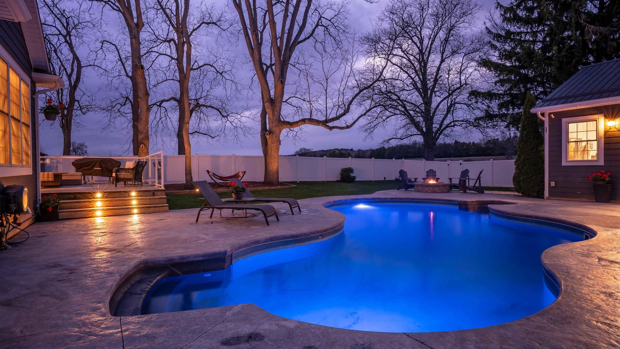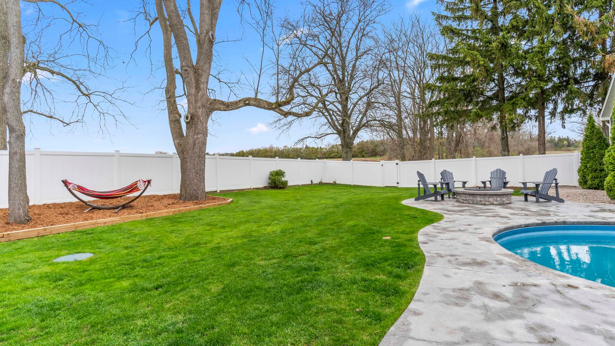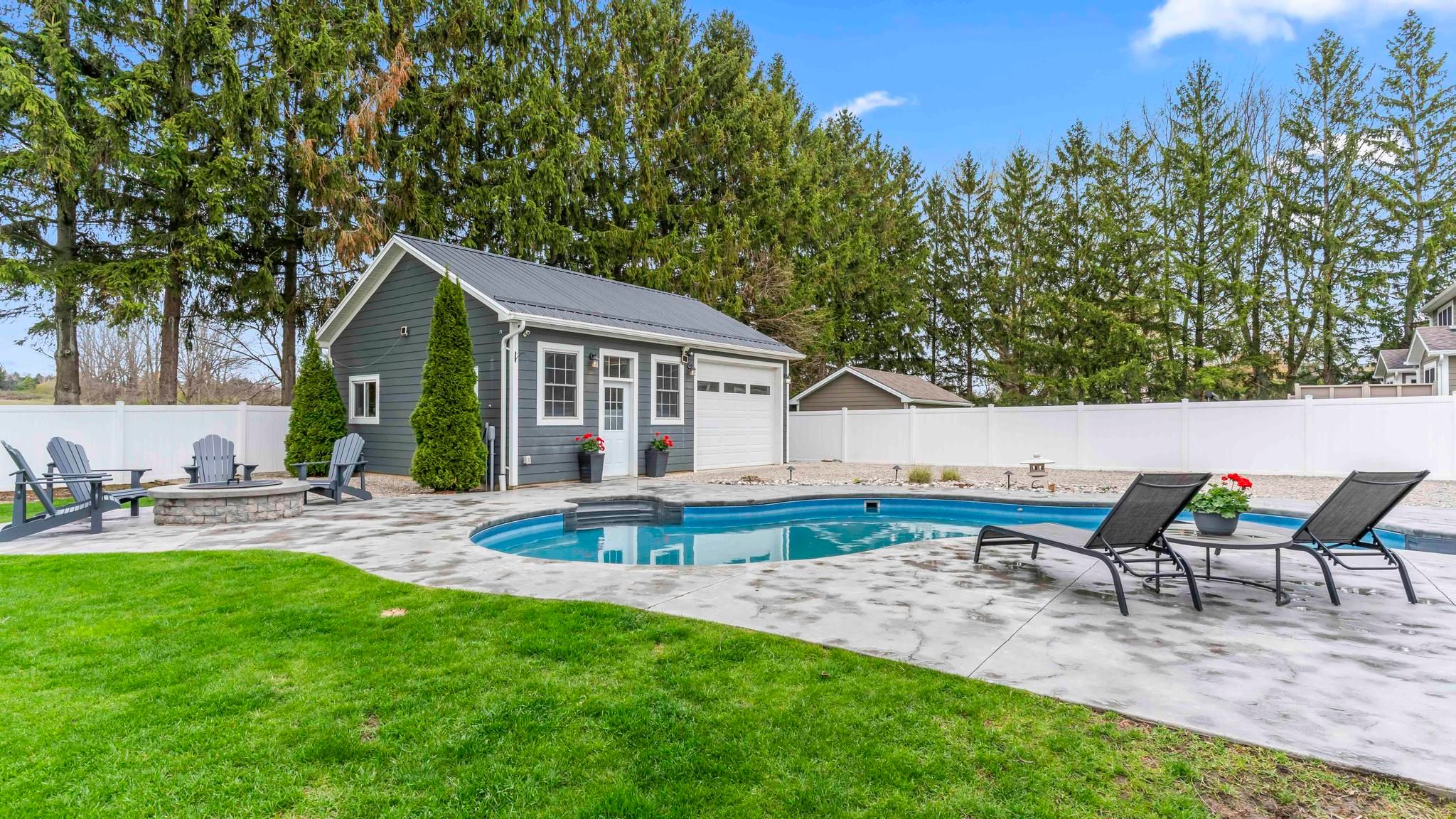 • Private backyard oasis featuring a heated saltwater pool and deck.
