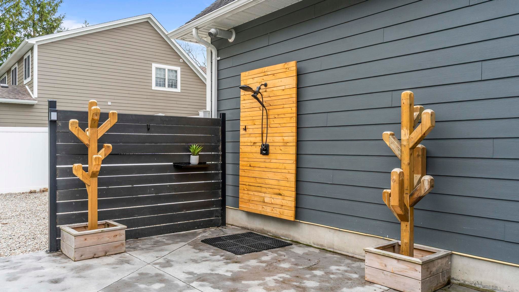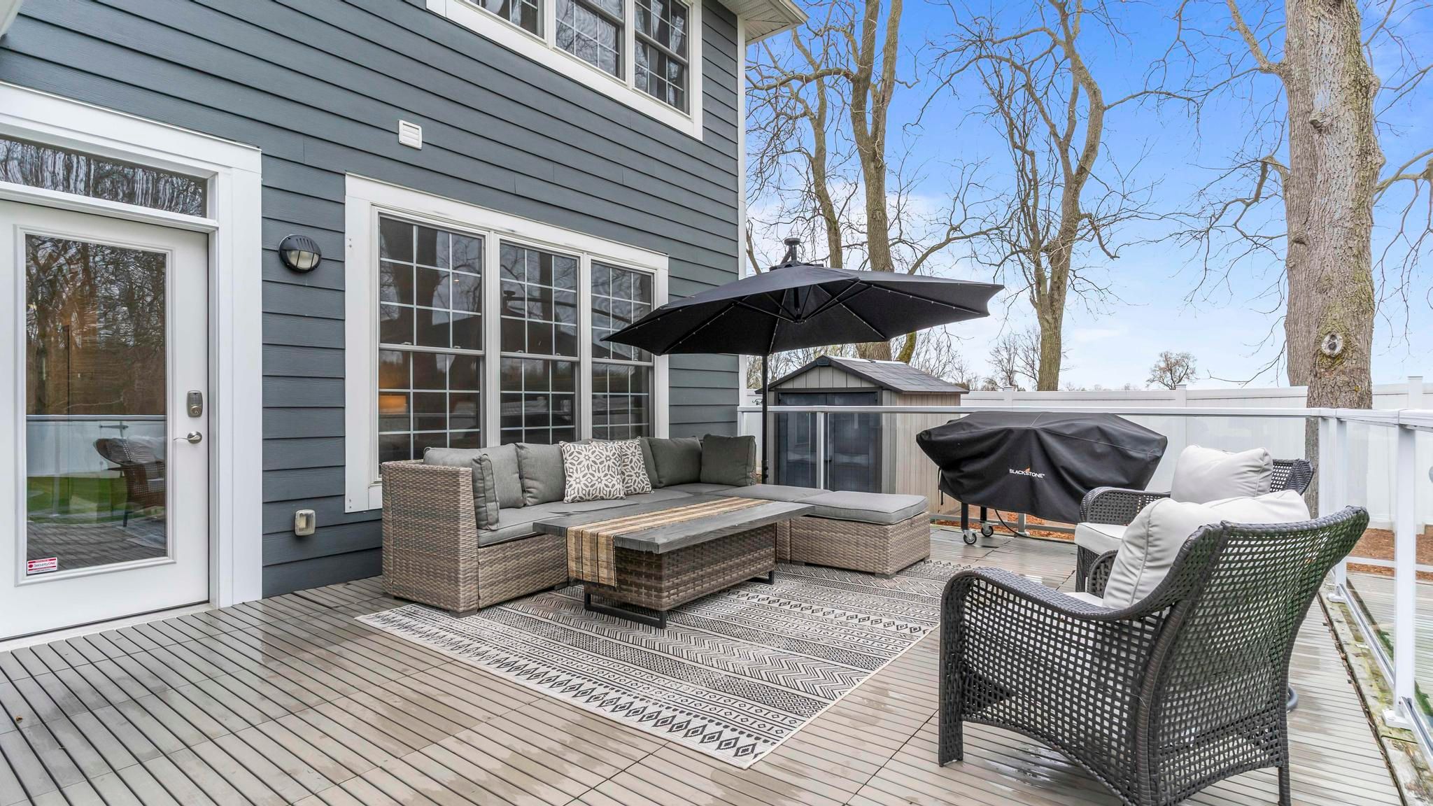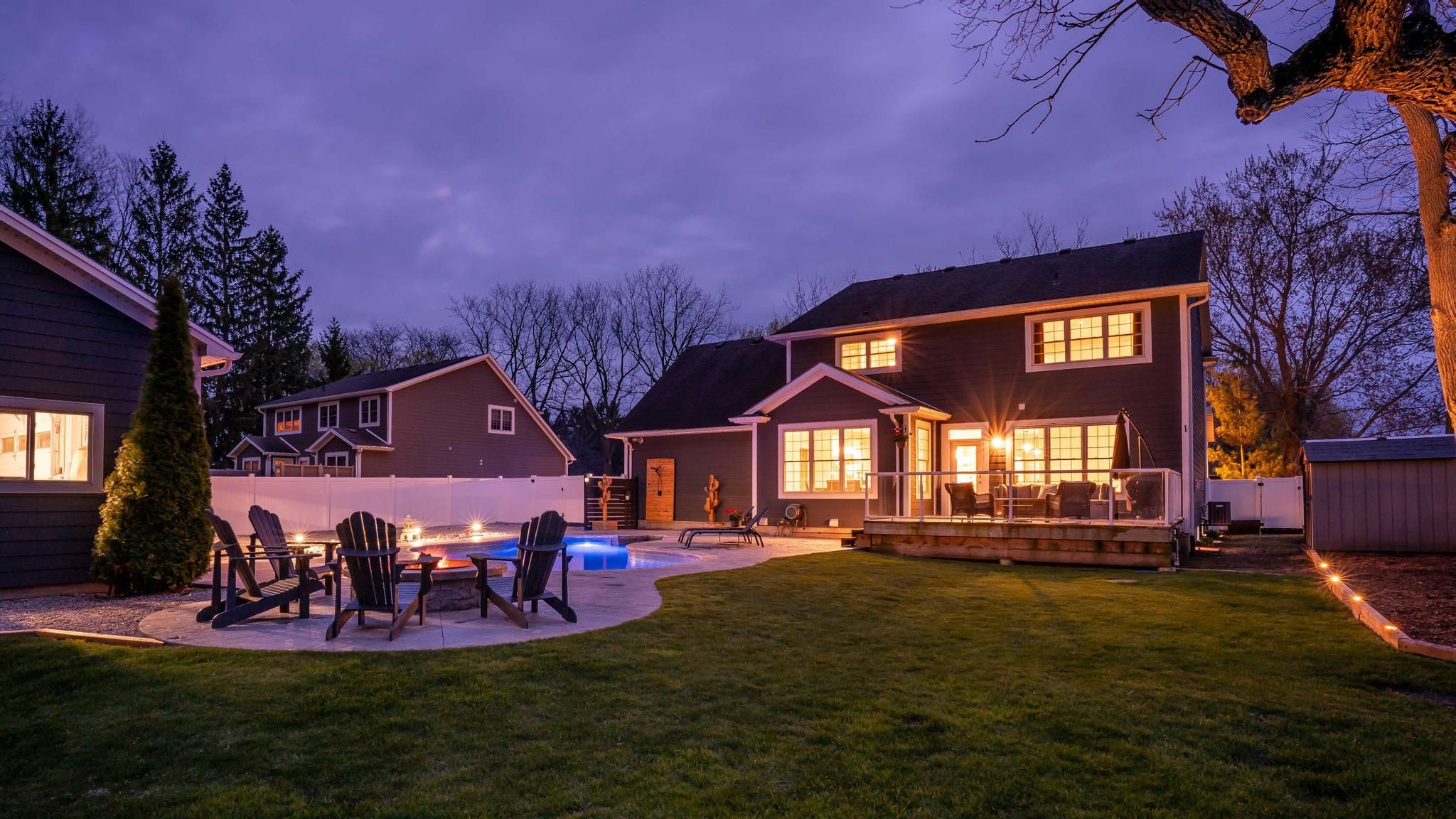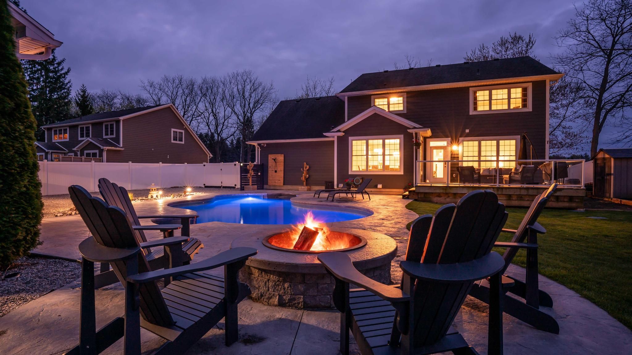 • Private backyard oasis featuring a heated saltwater pool and deck.