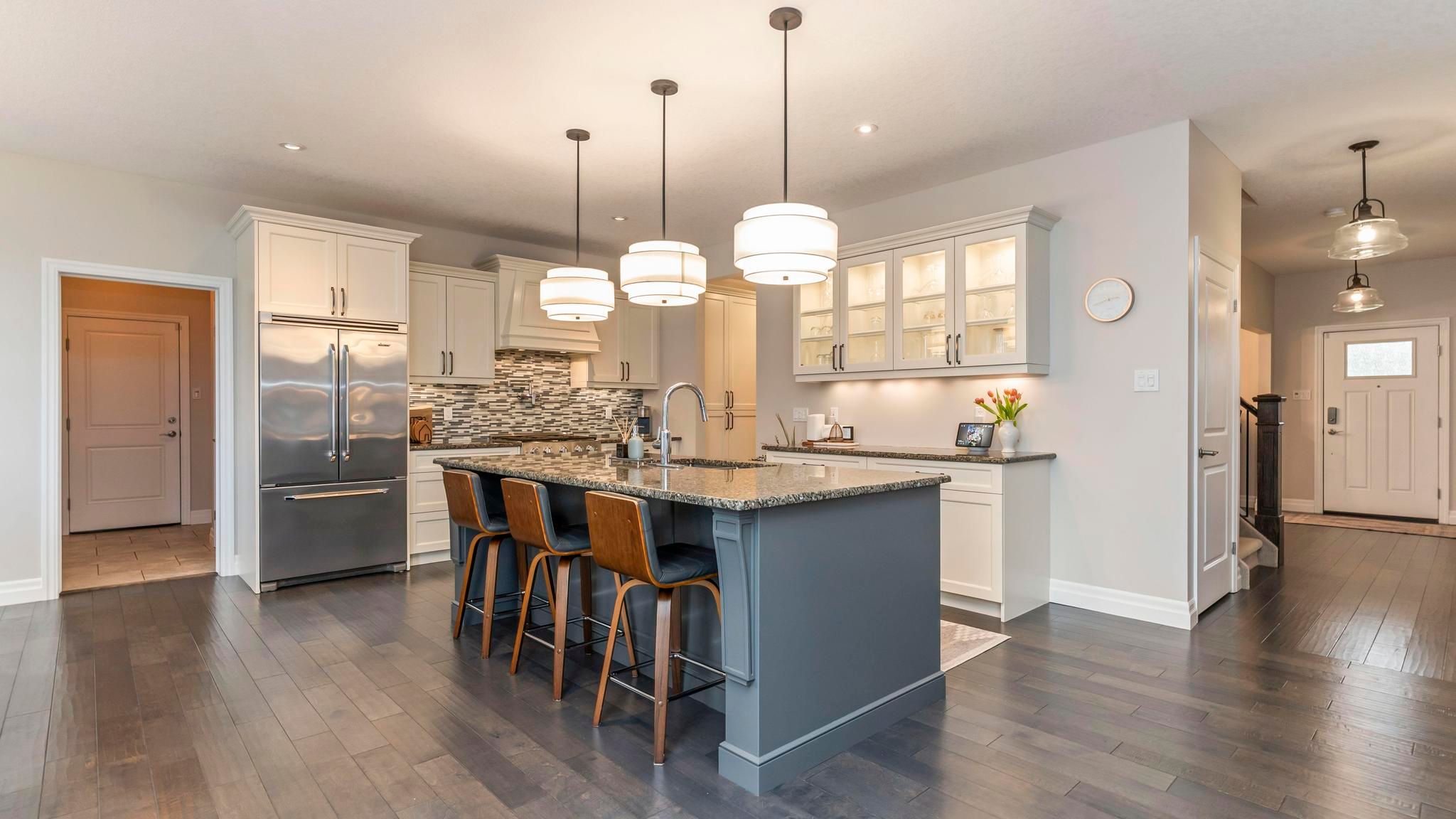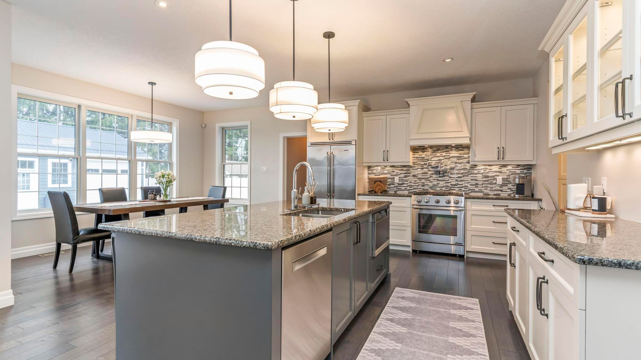• Gourmet kitchen with granite countertops and ample gathering space.