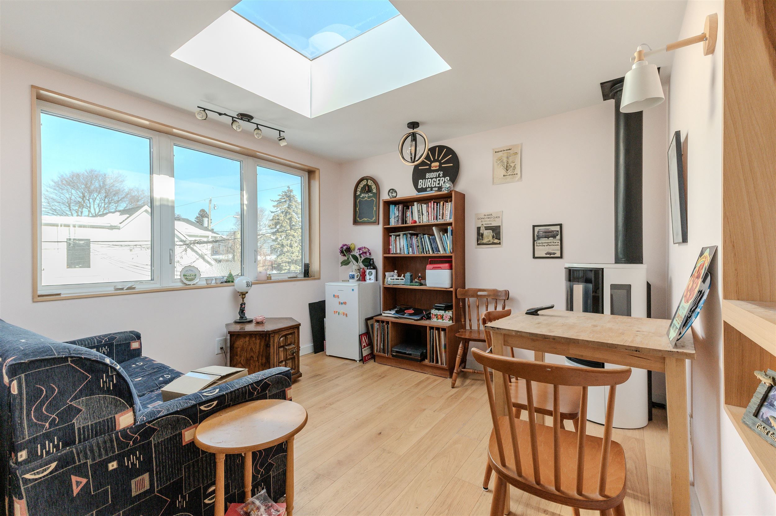 • Spacious upper unit featuring a fireplace, skylight, and family room addition.