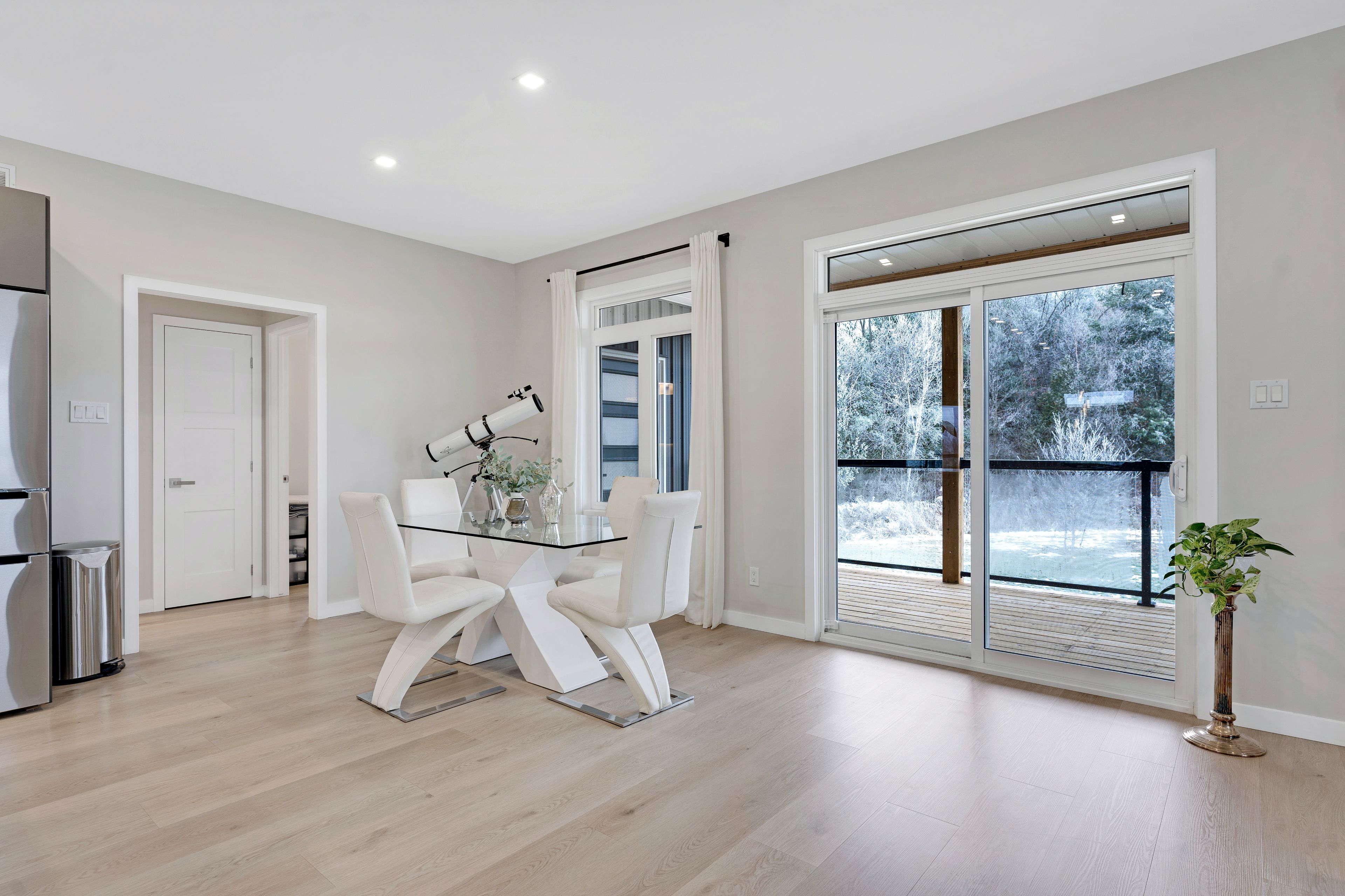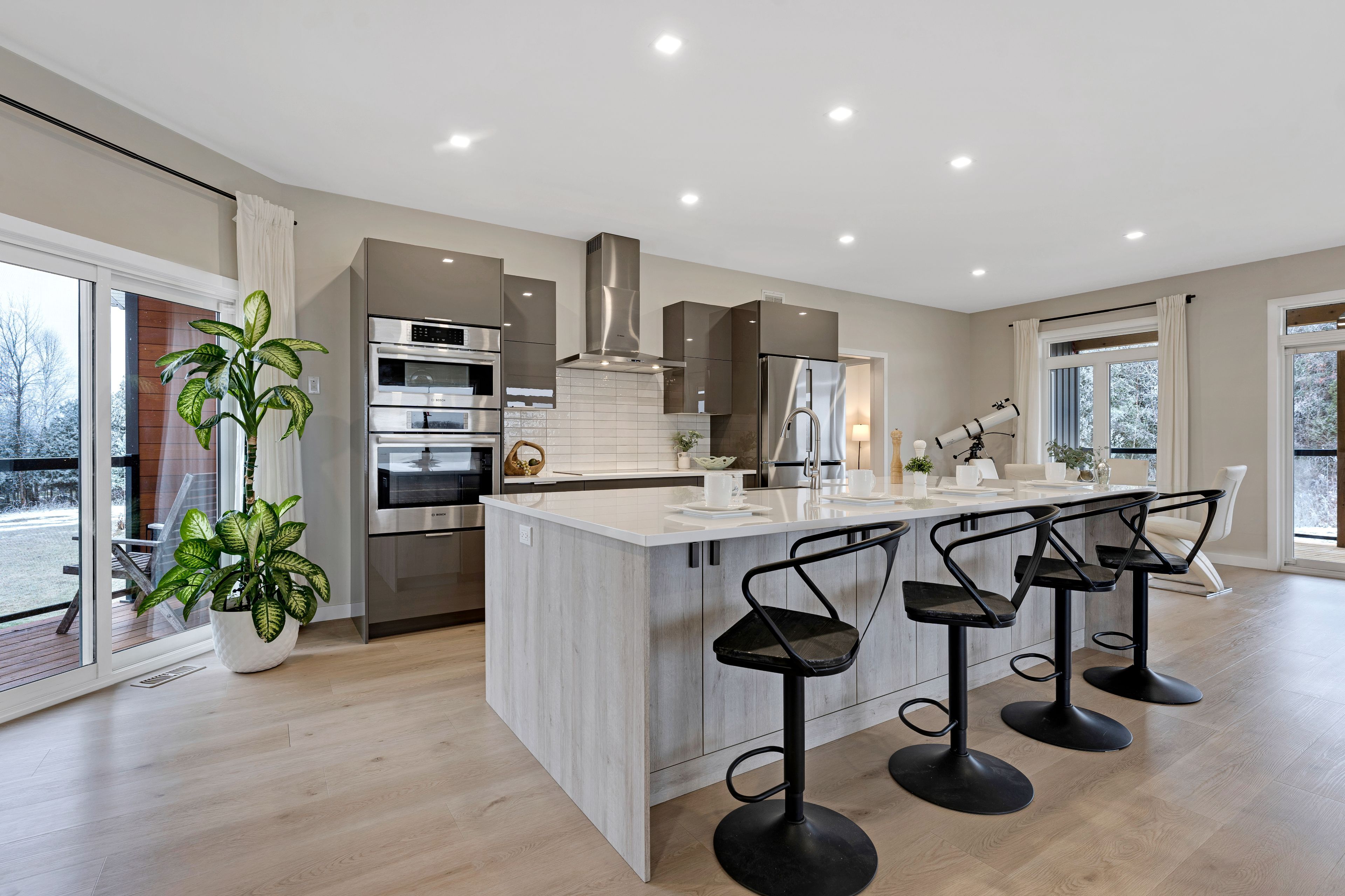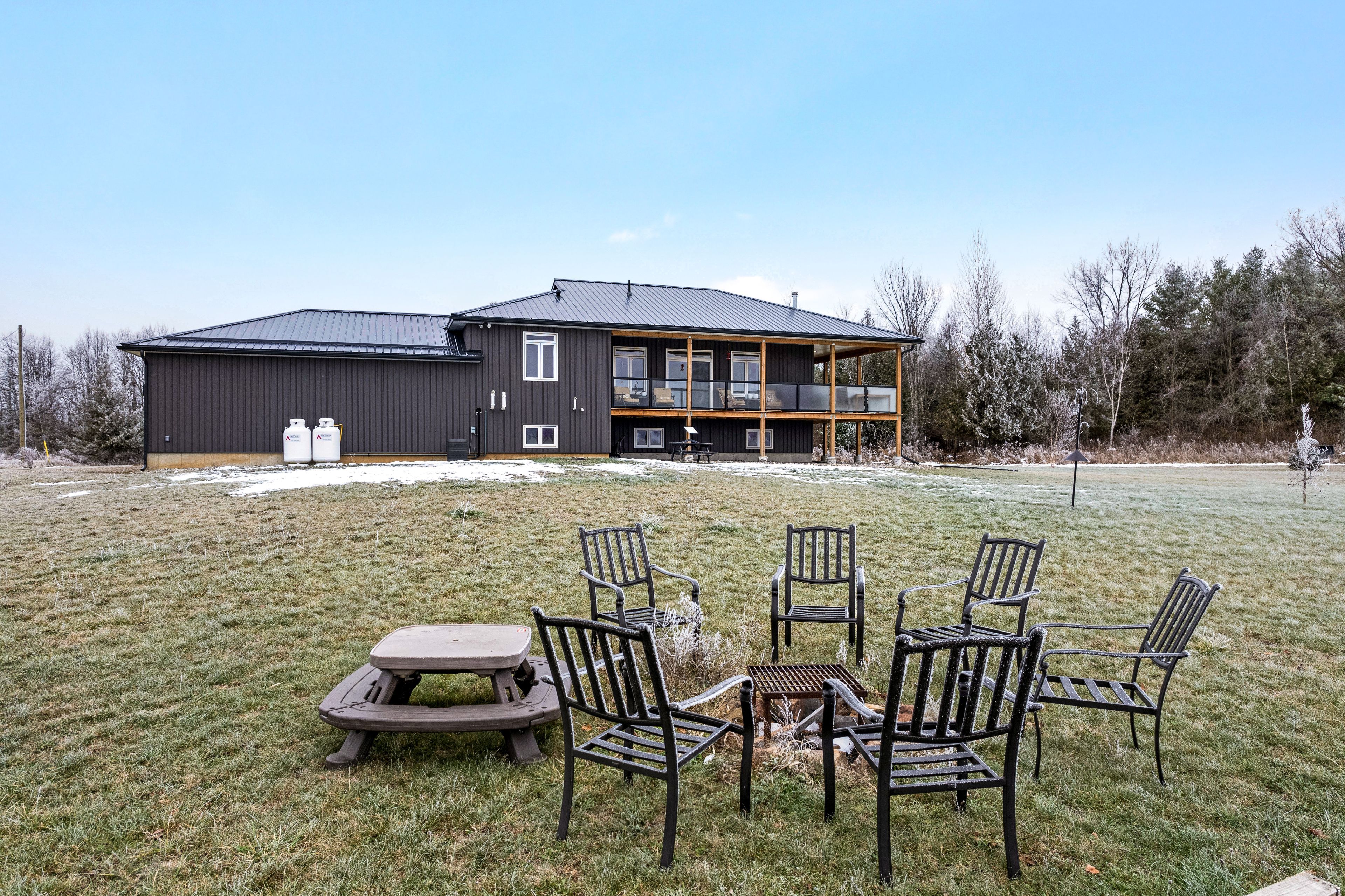 Outstanding. With smooth clean lines this 2022 home offers a sophisticated presence and, its unparalleled construction creates a wealth of efficiencies. The exterior steel siding is eye catching with its attractive slate-hued finish, accented by earthy warm cedar. The design elements blend flawlessly into 3 peaceful country acres. Step inside to the sleek foyer featuring white bright décor enhanced by double closet's charcoal glass panels; elegance added by the porcelain floor and glass chandelier. Flooring thru-out 3+1 bed, 2 full bath home is porcelain tile plus, luxury vinyl plank with cork cushioning for sound absorption - you will appreciate this with every step. Ceilings 9' high, light cascades inside thru big windows and living spaces insulated for sound separation from the bedrooms. Livingroom linear propane fireplace is surrounded by showcase porcelain wall. Impeccable gourmet kitchen most welcoming with cambria quartz countertops, custom deslaurier cabinetry, generous breakfast bar and premium bosch appliances including two built-in ovens. Adjoining butler's pantry and sitting area. Primary suite calming retreat with two large closets and luxurious 5-pc ensuite porcelain floor, two-sink quartz vanity, rainhead glass shower with body-spray tower and deluxe soaker tub. Two more bedrooms and well-appointed 4-pc bathroom also with porcelain floor, quartz vanity, touchscreen mirror and rainhead shower with body-spray. Lower level 8' ceilings, r22 insulation and potential for in-law suite with rough-ins for kitchen and bathroom. From lower level, direct access to double attached garage with hookup for overhead propane heater. Adding to home's ultra-modern design and commitment to quality is superior steel roof with protective membrane & r60 insulation. Steel fascia has recessed soffit lighting. High energy-efficient kohltech windows & propane furnace. Underground hydro line from road to home. On paved township road. Cell service & hi-speed. 10 mins perth.