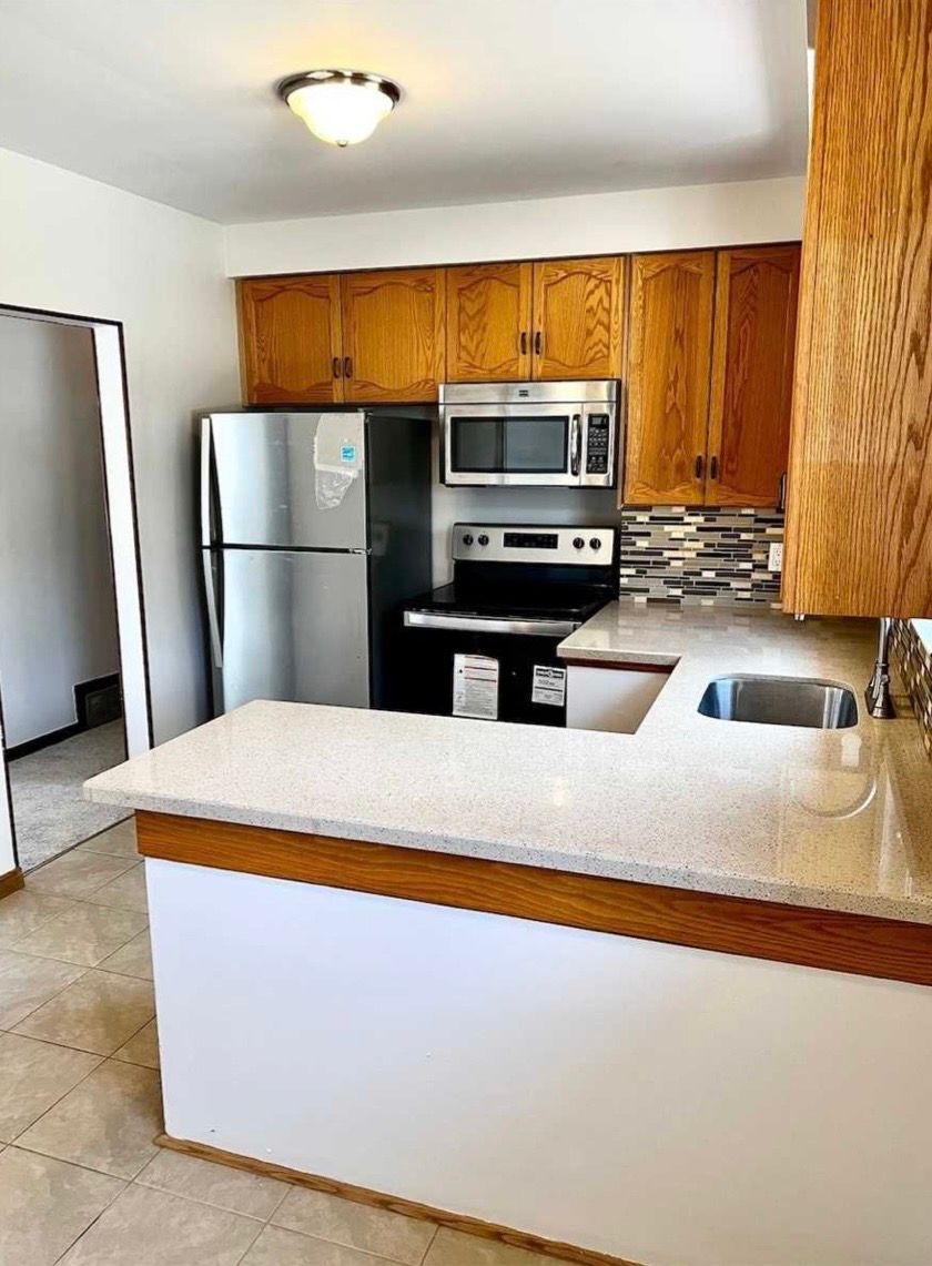 • New stainless steel appliances in the eat-in kitchen.