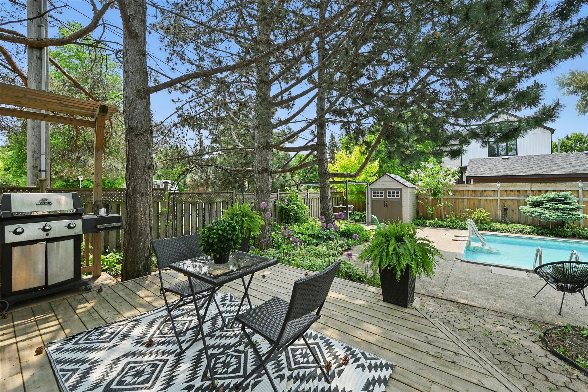 Welcome to the heart of downtown burlington! Larger than it looks, this lovely 2+1 bedroom bungalow, 2 full baths, a generous spacious addition, overlooking the gorgeous gardens and large salt water pool. Double car garage w/parking up to 5 spaces. Freshly painted throughout, 3 fireplaces! Finished rec room w/bar area great for entertaining your guests or teen retreat! Included bbq is gas, not propane. Enjoy burlington's fabulous shops, restaurants and pubs, providing the ideal blend of convenience and tranquility. Steps to spencer smith park's gorgeous waterfront, where you can enjoy the many festivals, splash pad, parks & wintertime skating, festival of lights! One of canada's top rated cities!
