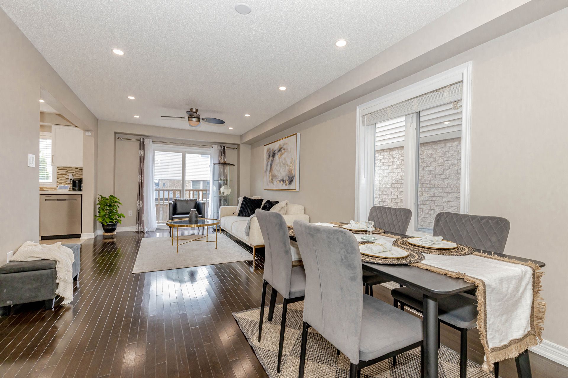 This stunning, freshly painted branthaven semi in burlington's sought-after alton village is completely move-in ready, blending modern upgrades with everyday comfort. Curb appeal - grand double-door entrance, new interlocked double-car driveway (2023), updated exterior lighting (2025), and garage with high ceilings & built-in shelving. Bright & open - sun-filled main floor with an airy layout, pot lights (2023), and new fixtures (2025). Gourmet kitchen - quartz counters, backsplash, stainless steel appliances, custom cabinets (2023), plus a new dishwasher (2024). Indoor-outdoor living - great room walkout to a deck overlooking a landscaped, fenced backyard ideal for entertaining. Luxury finishes - carpet-free throughout with new oak stairs/landing (2024). Fully redesigned bathrooms (2022) exude elegance. Ample storage with walk-in closets and a convenient 2nd-floor laundry with upgraded appliances. Finished basement - professionally done in 2023, offering a family room, recreation space, and office perfect for work or play. Location perks: nestled on a family-friendly crescent, this home is surrounded by top-rated schools, parks, and all amenities groceries, shopping, and dining. Commuters will love the quick access to 407, qew, dundas, and go transit. This home offers the perfect blend of luxury, practicality, and community. Book your showing now.