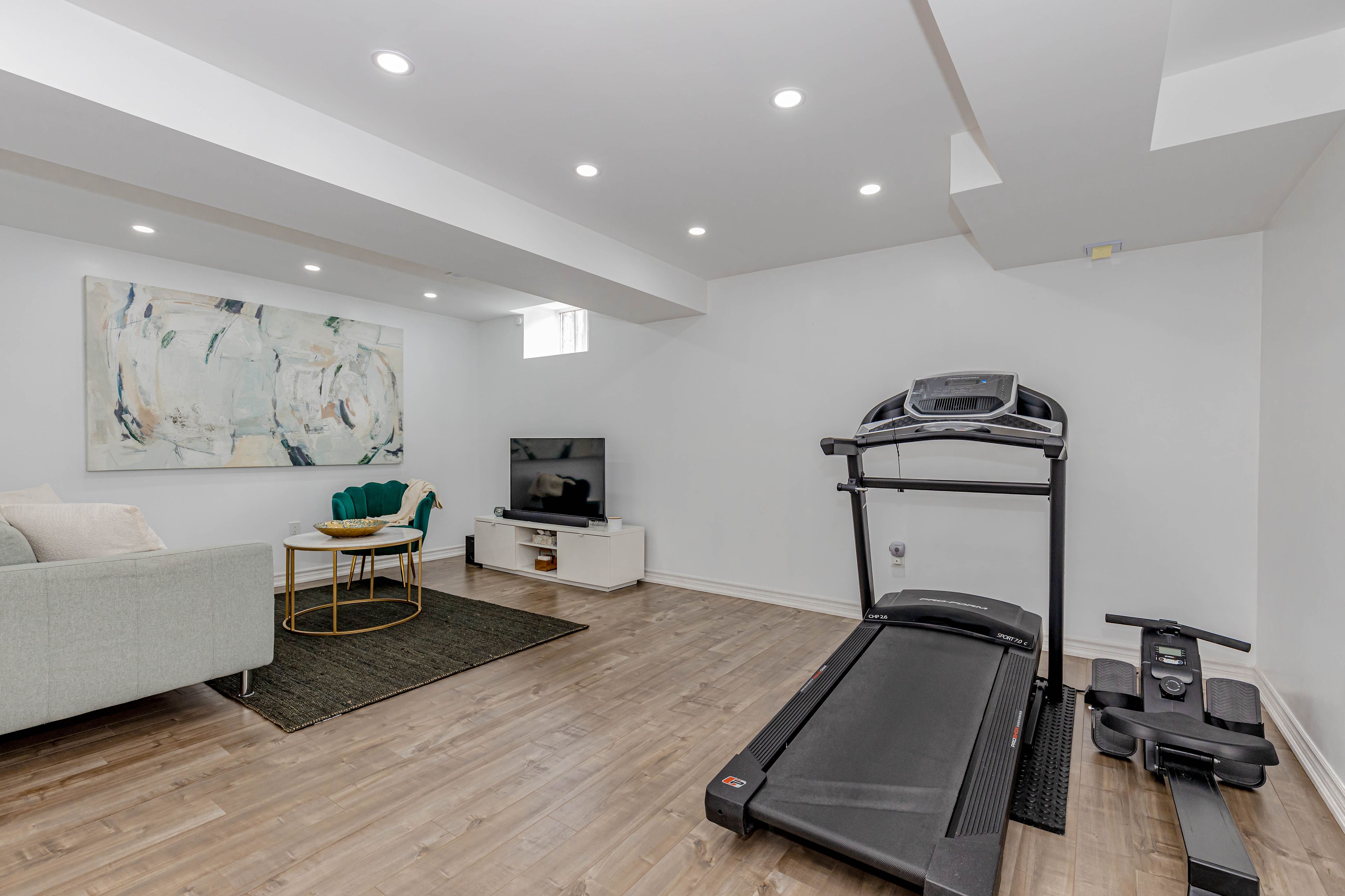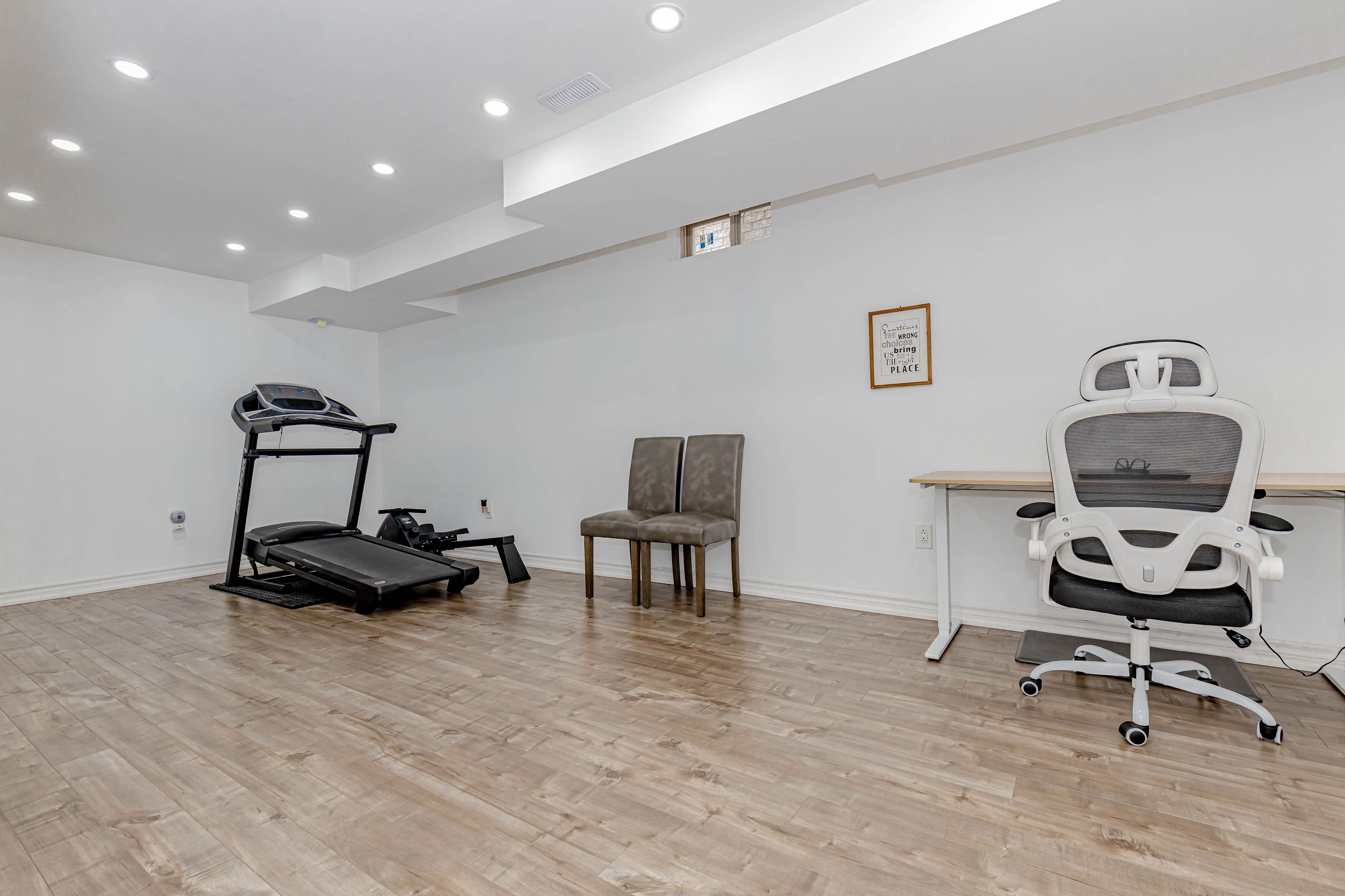• Finished basement offers versatile spaces for family, recreation, and work.