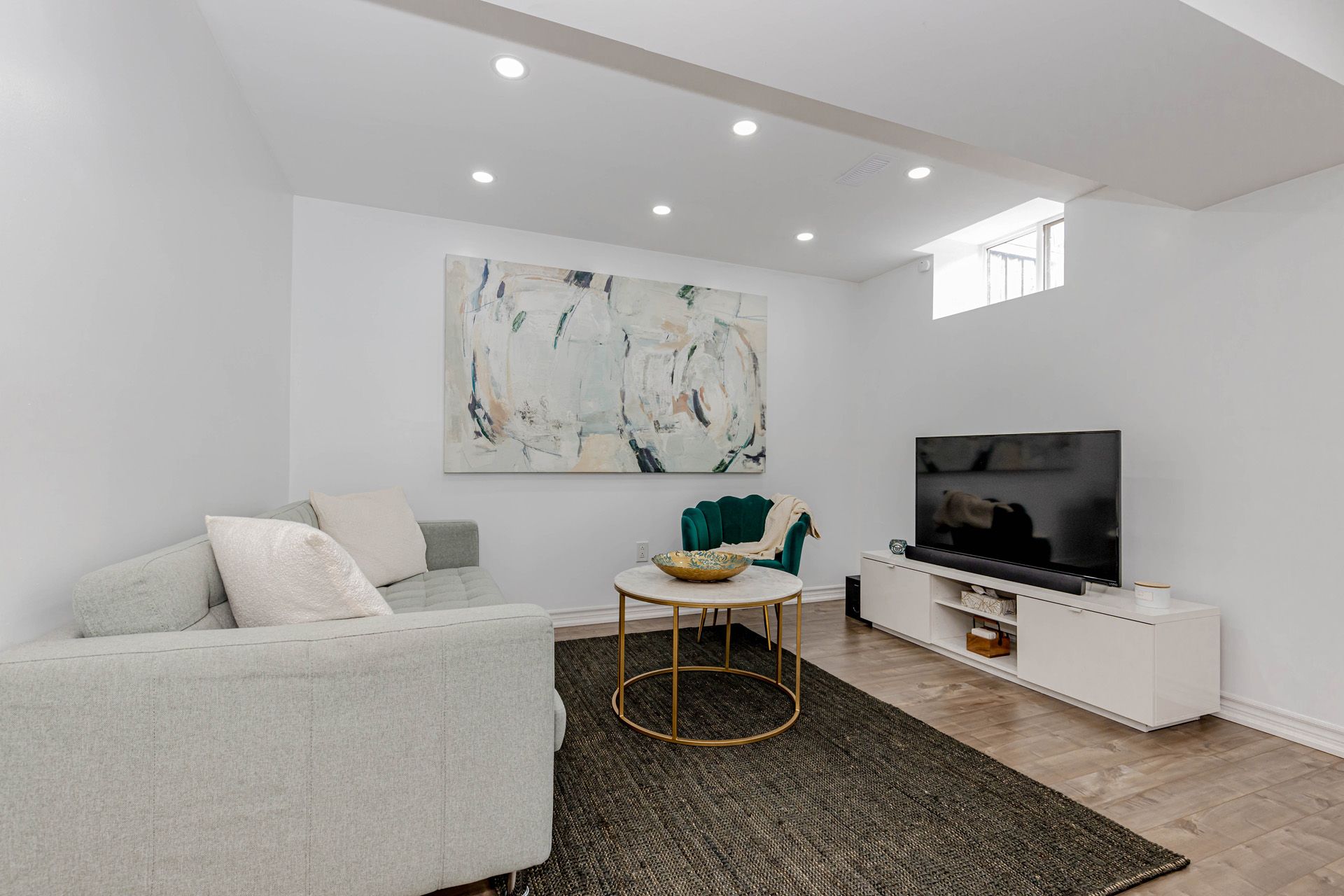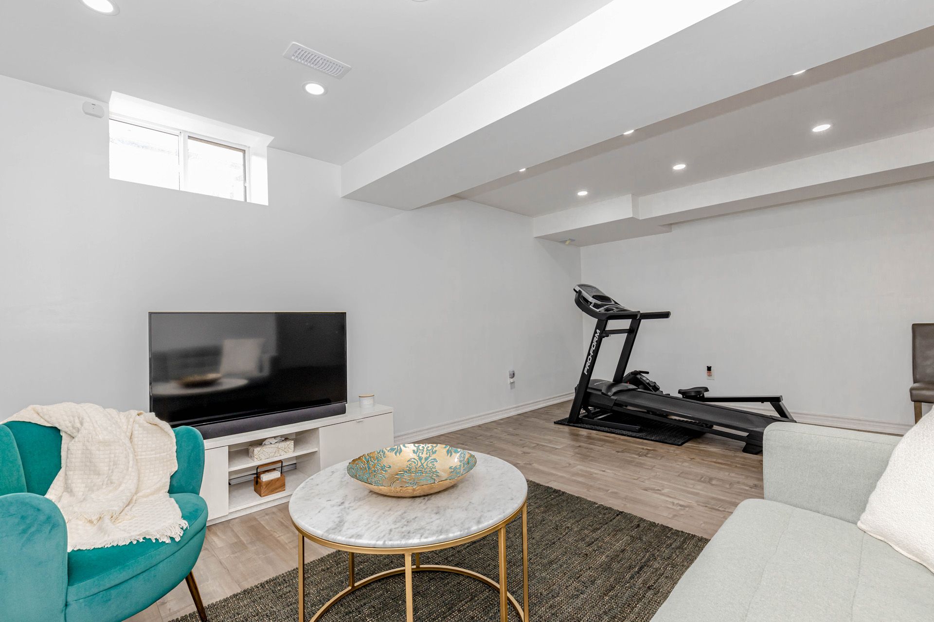 • Finished basement with family room, recreation space, and office area.
