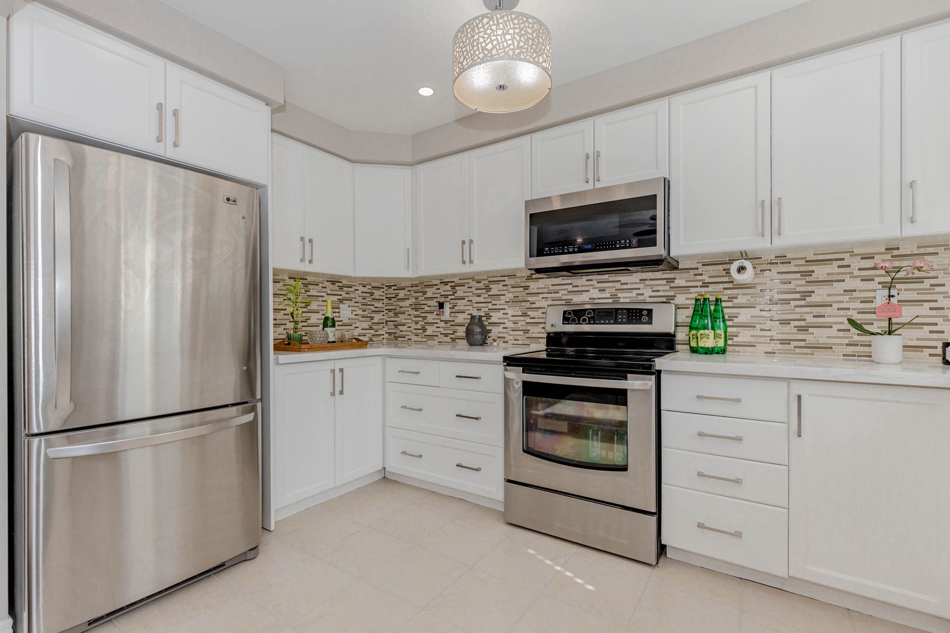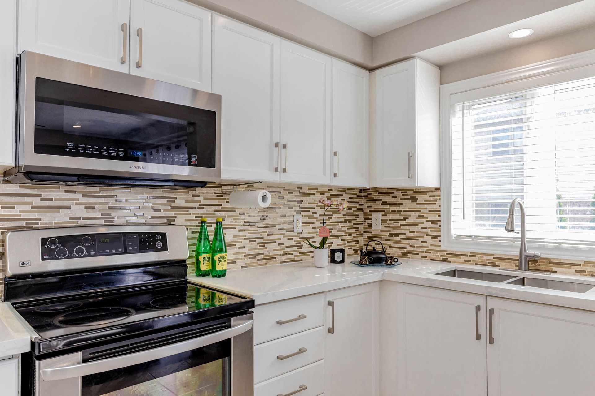 • Gourmet kitchen featuring quartz counters and upgraded stainless steel appliances.