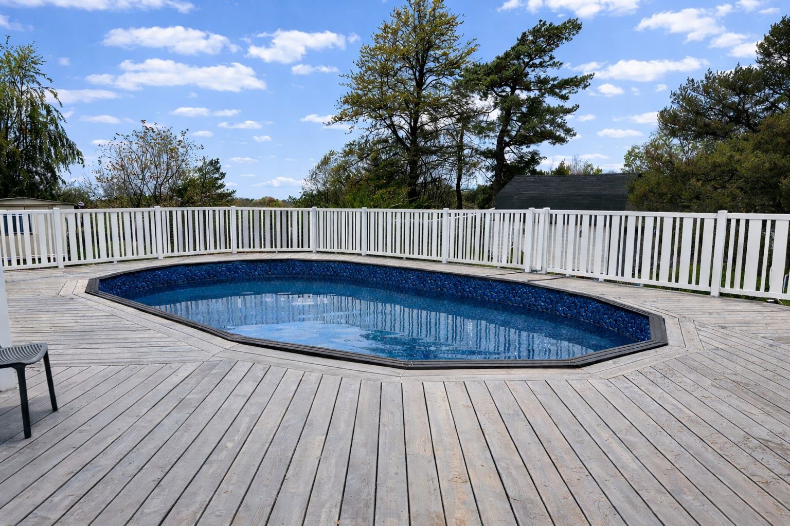 • Backyard oasis featuring a heated above-ground pool and 3-season sunroom.
