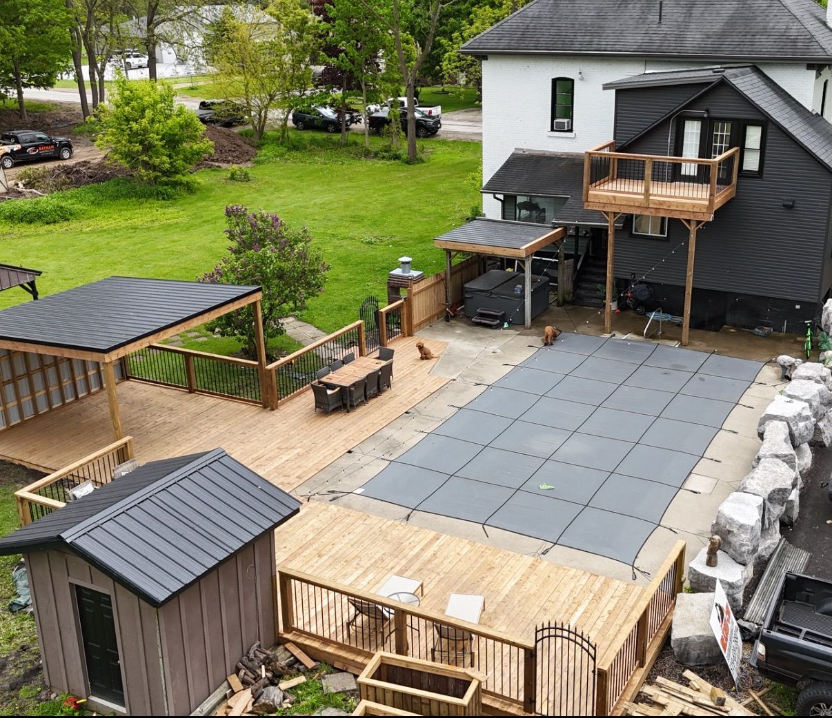 Charming renovated country home in a great location close to the st. Thomas airport and the coveted new sarum school district on just under 2 acres of lush grounds with 4 bedrooms, 2. 5 bathrooms, in-ground pool, hot hub and bonus out-building is now ready for new owners! The interior was tastefully renovated in 2020/21 with the exterior competed in 2025. This property blends classic architectural details with contemporary updates for effortless living! Step inside to discover a spacious and thoughtfully designed interior featuring an open concept chef's custom kitchen with gas cook-top, wall oven/microwave, high-end stainless steel appliances, pot filler, quartz counter-tops, island, shiplap ceiling with sound system, dining room and living room with fireplace. Walk-out from the kitchen to a big side deck to relax while you bbq. Staying on the main level, there is an added 2-piece bathroom, den area for kids to play and a large family room. Heading upstairs, you will find 4 generous bedrooms and 2 well appointed4-piece bathrooms with one being an ensuite to the primary bedroom that has a walk-out to a balcony overlooking the pool and grounds. Laundry is conveniently located on the 2nd level with all the bedrooms. There is a door with stairs leading to the attic for more storage space or potentially add a 5th bedroom. The water tank is owned with 60gal capacity, 2 sump pumps added in the basement and electrical panel updated to 200amp service. Natural gas hook up done in 2020 with internet fiber optics in 2021. Some other recent updates include all new windows, spray foam basement walls, paved laneway holding over 10 cars, armour stone landscape, exterior paint, hot tub replaced as well as pool liner replaced, added fire-pit, kids play area and backyard deck with covered gazebo completed in 2025. Don't miss this rare opportunity to own a piece of serenity in central elgin's countryside!