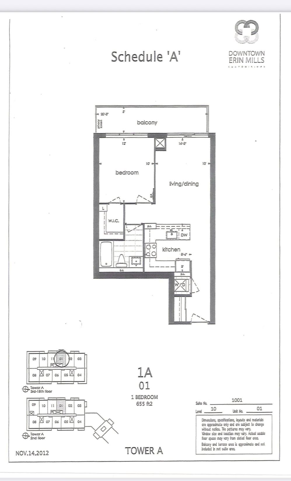 Near erin mills town center & credit valley hospital. Built by pemberton. Open concept 655 sq ft, 9 ft smooth ceilings. Modern kitchen with 40 inch upper cabinets, stone counter tops, back-splash & breakfast bar. Spa style bath, w/i closet. Ideal rental for long term tenant for 2yrs minimum, no smoker & pets. 20 ft wide balcony with sunset view. Parking + locker included. Convenient location next to the elevators.