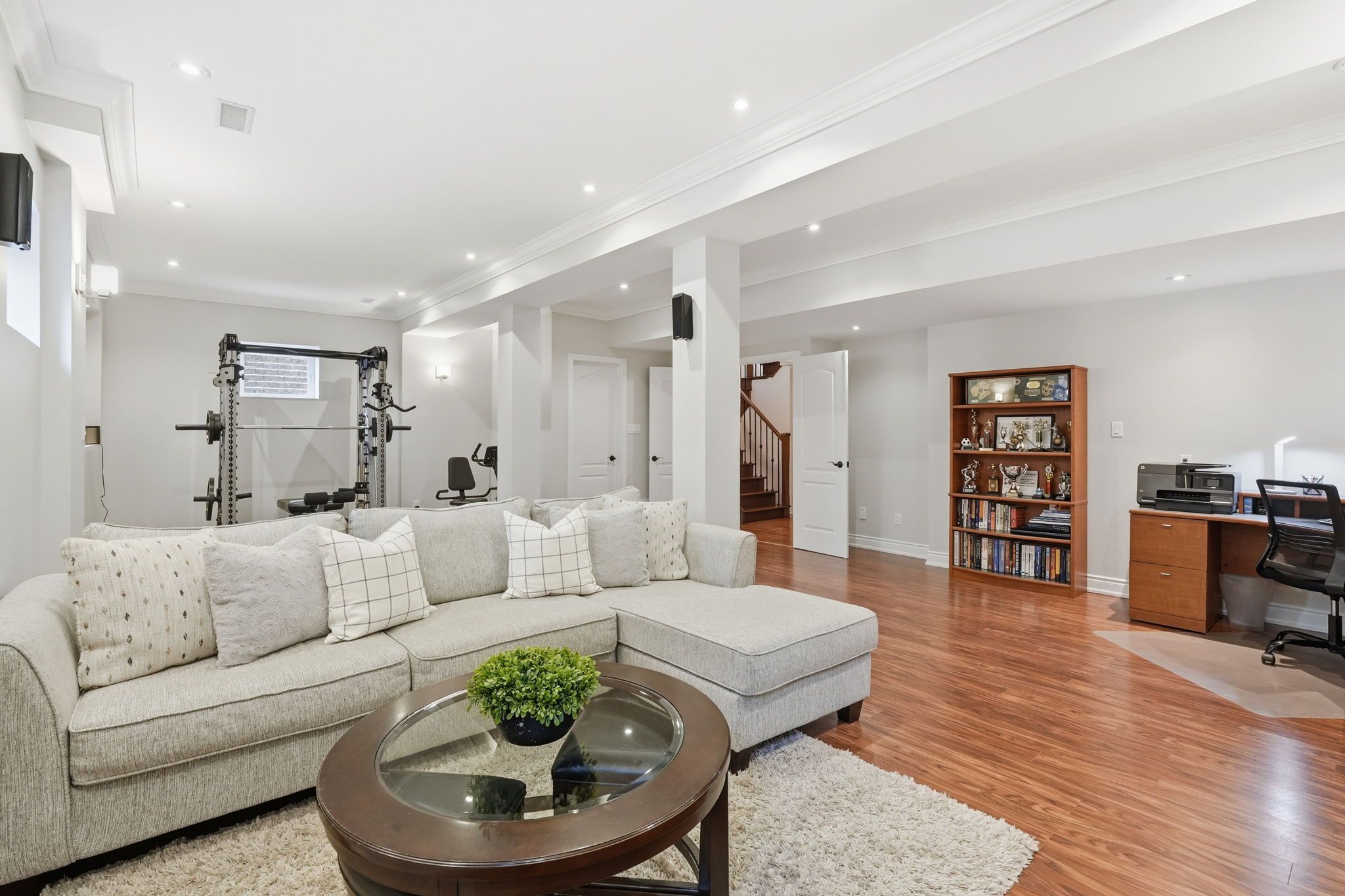 • Finished basement with high ceilings adds versatility and extra room.