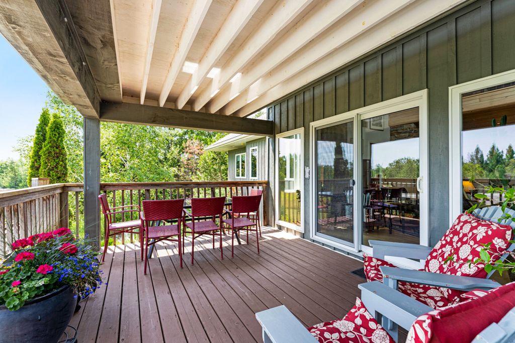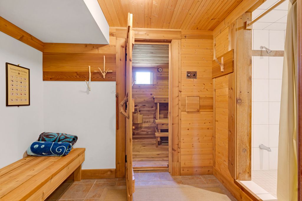 • Finished lower level includes recreation space, sauna, and easy access to the pool.