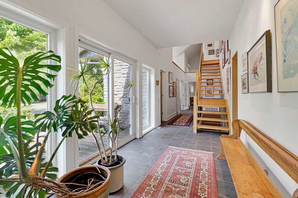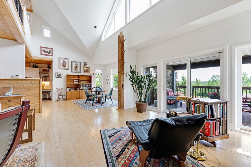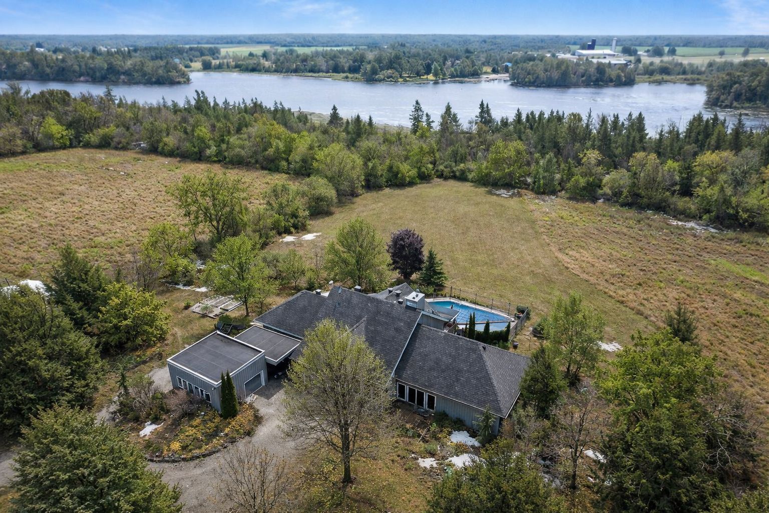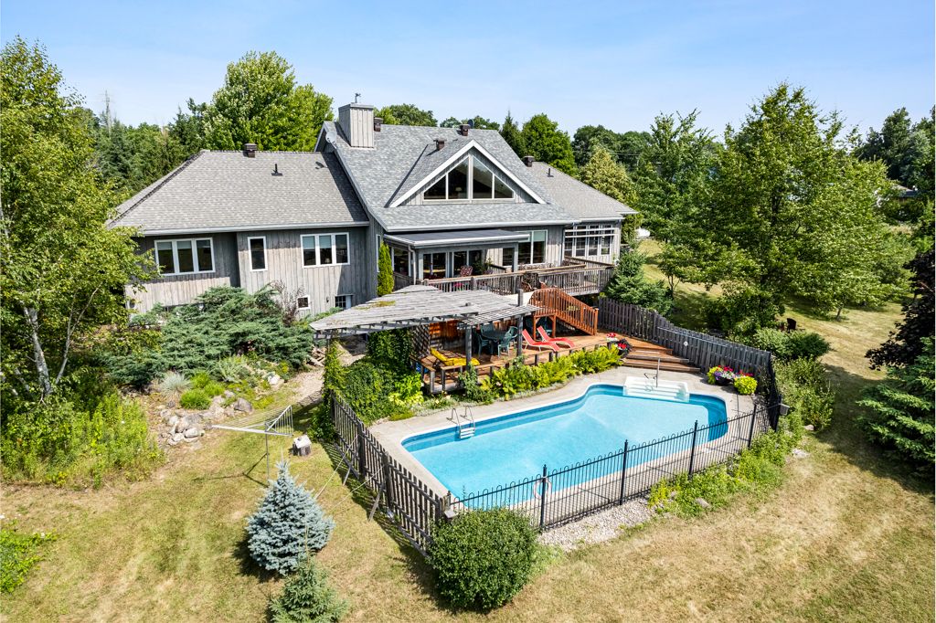 Your private riverside retreat - a four-season waterfront sanctuary - welcome to this exceptional architect-designed home offering total privacy and approximately 950 ft of waterfront along the unesco rideau canal. Set on 12+ peaceful acres just minutes from merrickville and only 40 minutes to ottawa, this private riverside retreat blends luxury, functionality, and year-round enjoyment in a truly unforgettable setting. Soaring ceilings, sun-filled spaces, and a dramatic two-story stone fireplace anchor the open-concept living area, creating a warm yet impressive focal point. The gleaming white kitchen is both elegant and practical-perfect for entertaining or everyday living with views of the surrounding landscape. The main level features spacious principal and guest bedrooms, each with its own ensuite, plus a bright loft overlooking the river and rolling fields beyond. The finished walkout lower level is designed for comfort and recreation, complete with heated floors, a wood stove, a large rec area, an additional bedroom, a powder room, sauna, and a convenient shower room just steps from the saltwater pool-ideal after a swim, skate, or day on the trails. Curated perennial gardens, blooming apple trees, and vibrant seasonal colour surround the home. Relax on the dock, fish the rideau, kayak at sunrise, or enjoy winter skiing and skating before warming up in the sauna. True four-season living in a peaceful natural setting. Additional highlights include copper plumbing, a wide poured concrete foundation, exceptional insulation, architectural plans, extra-wide halls for accessibility, a 3-season sunroom, a detached drive-through garage, custom copper eavestroughs, roughed-in central vac, an emergency generator, ample storage, and plugs for holiday lighting. A rare opportunity embracing your dream lifestyle-this private riverside retreat offers tranquility in nature just minutes from merrickville, close to hwy 416, and in easy reach of ottawa.