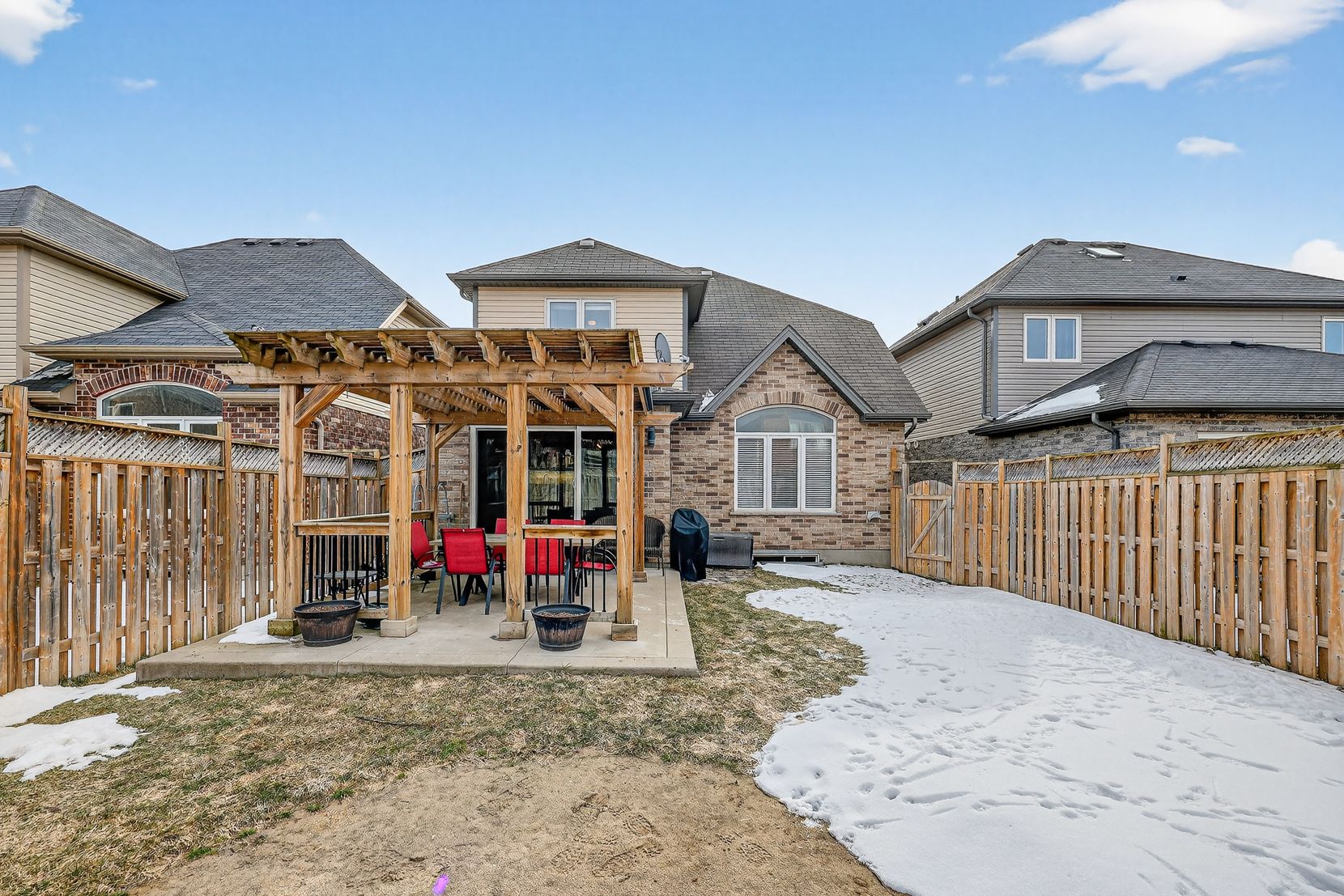 Welcome to 464 champlain avenue, a move-in ready two-storey home in woodstock's desirable south end. A welcoming foyer opens to a bright, spacious living room with soaring vaulted ceilings, flowing seamlessly into the kitchen with centre island and dining area featuring oversized sliding doors to the fully fenced backyard with patio and pergola, perfect for entertaining. Upstairs offers 3 generous bedrooms, a spacious 4-piece bath with convenient second-floor laundry, and a beautiful landing overlooking the living room below. The unspoiled basement is ready for your personal touch. Complete with an attached garage and ideally located close to shopping, parks, public transit, the hospital, and quick access to the 401 & 403. A fantastic opportunity in a prime location!