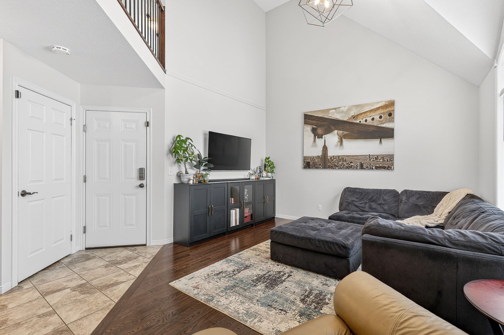 • Bright living room with vaulted ceilings for an airy feel.