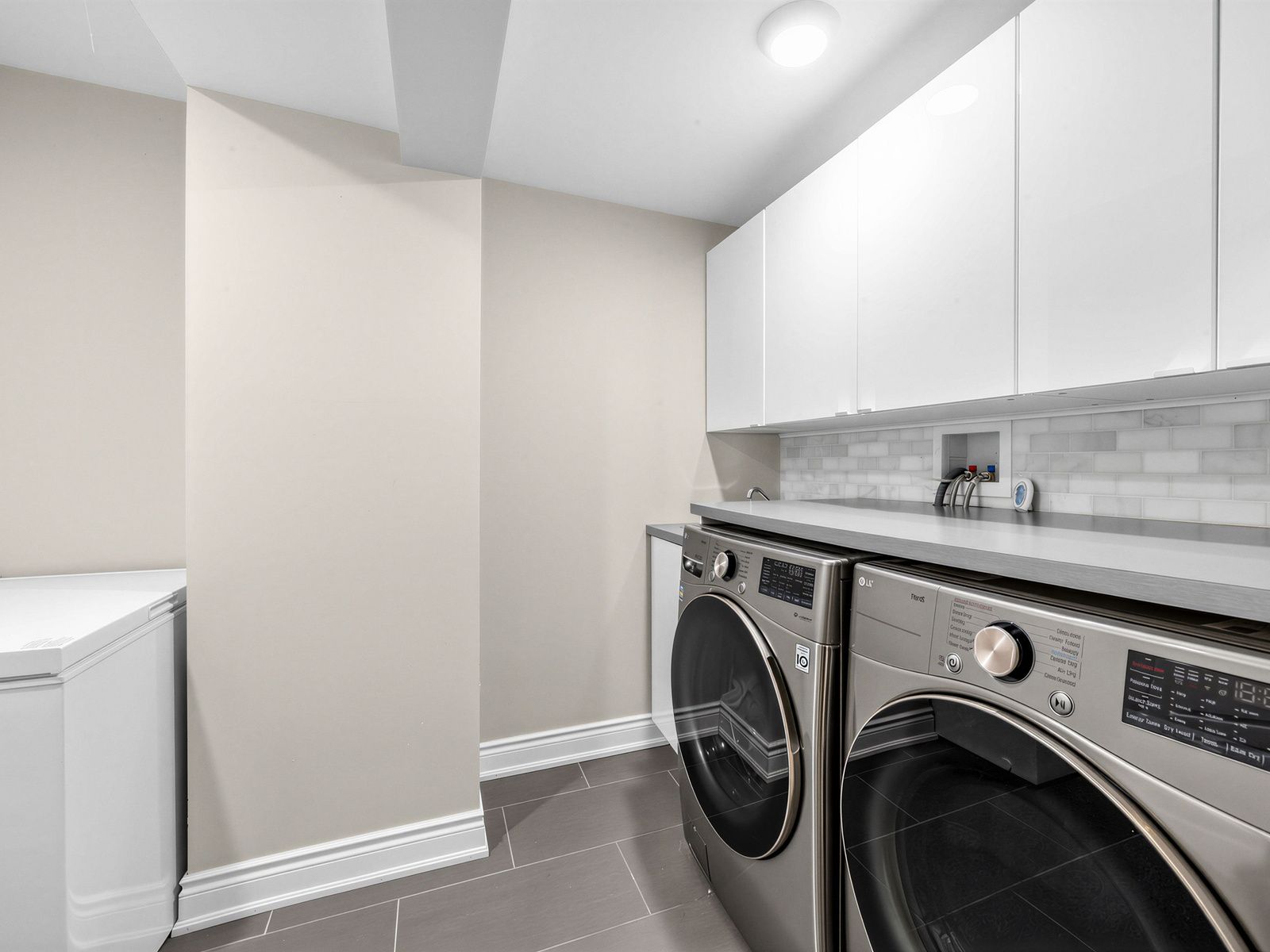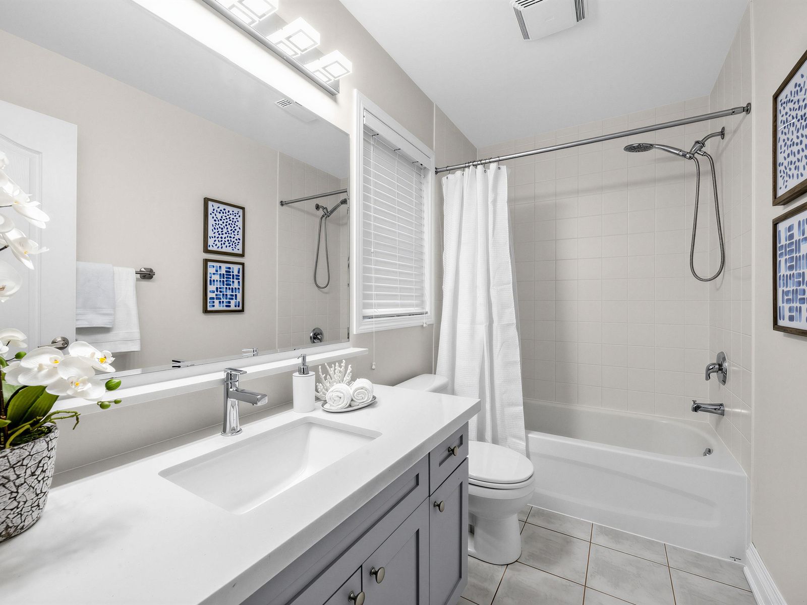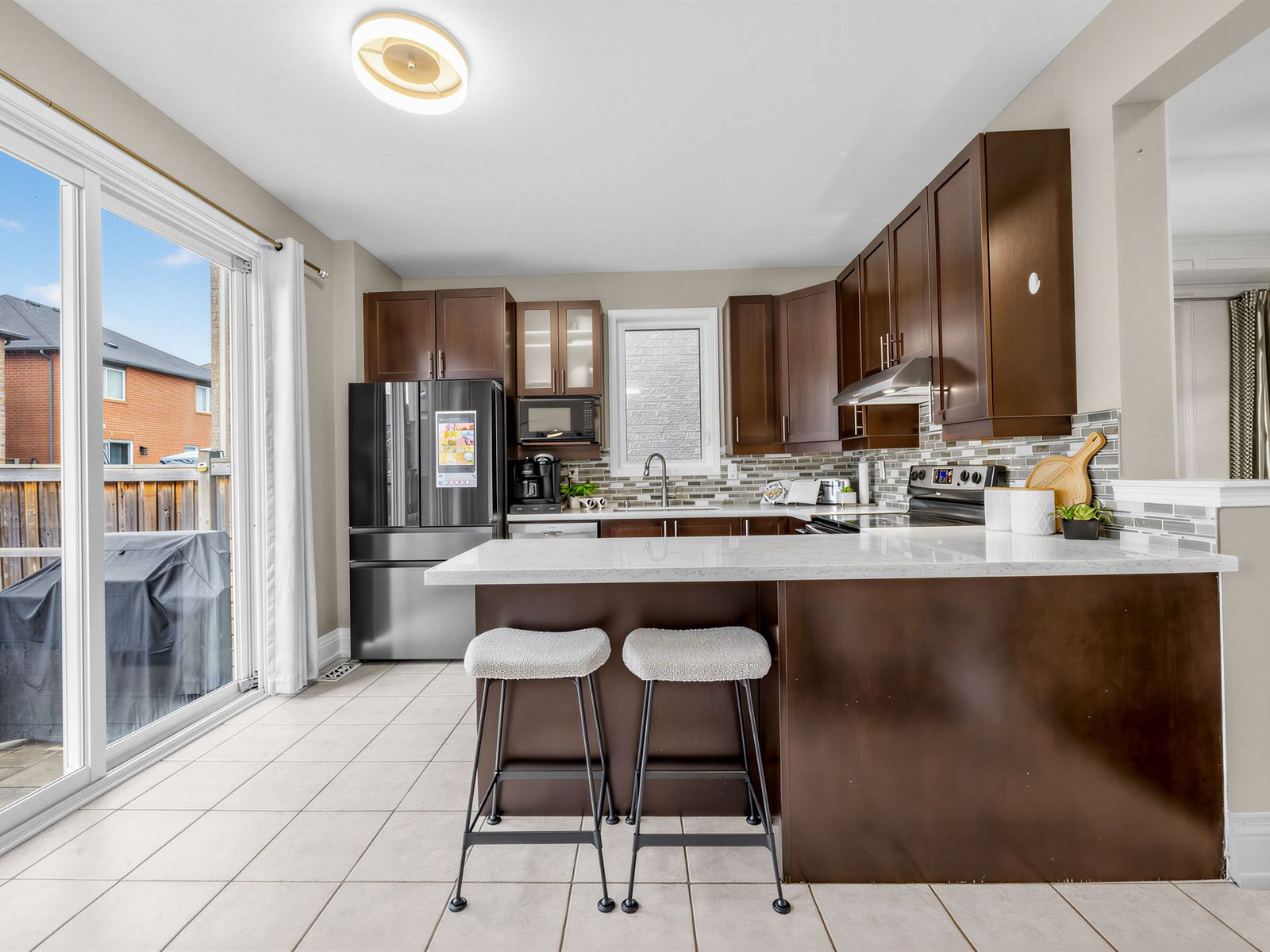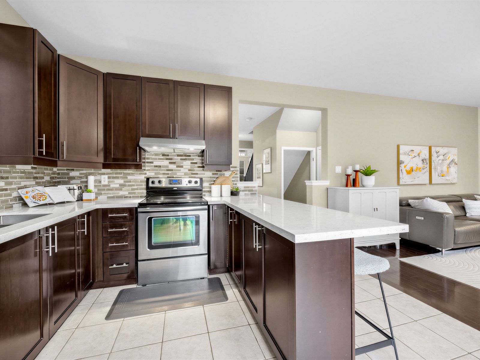 • Upgraded eat-in kitchen with quartz countertops and backsplash.