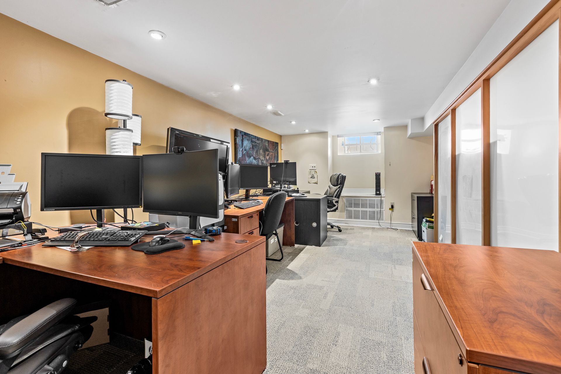 • Spacious layout with multiple offices and reception area for various uses.