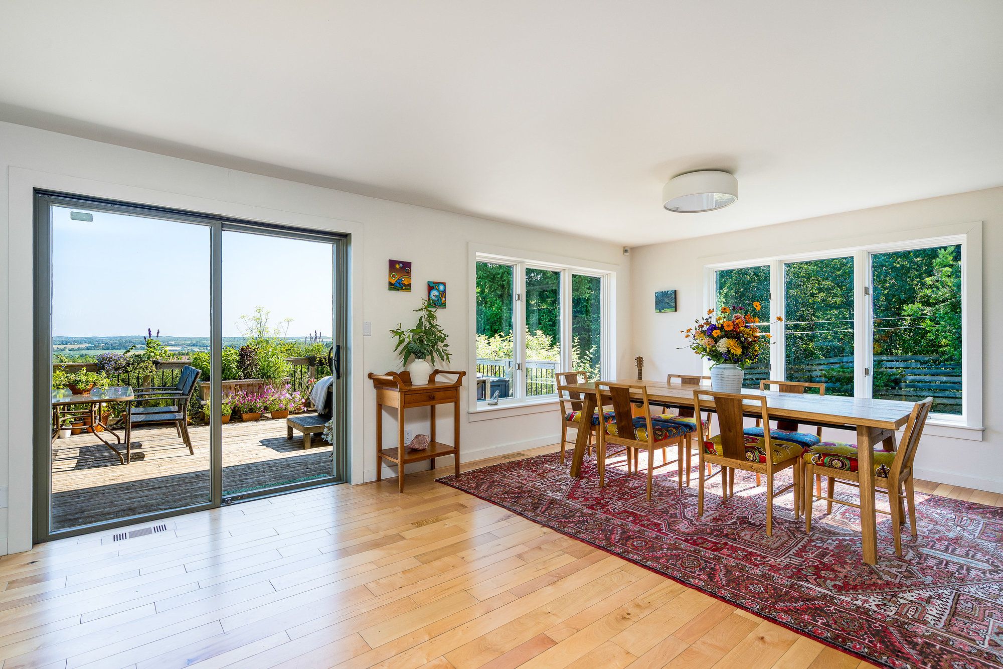 The moment you turn in, you can feel it - you've arrived somewhere unlike anywhere else. On a quiet country road, a long winding driveway leads to a secluded retreat. More than sixty acres of fields, rolling hills, fruit trees, and forests unfold in every direction, threaded with private trails to wander. In the distance, the shimmer of georgian bay. Sunrises that take your breath away, star-filled skies at night, and views that feel limitless. At the heart of it all is a one-of-a-kind healthy home, lovingly restored using biological building principles and natural, eco-friendly materials. Solid hardwood floors run throughout, and natural light fills every corner of this four-bedroom, four-bathroom home. A wood-burning fireplace anchors the main living space, adding both warmth and atmosphere year-round. The kitchen is spacious and inviting, designed for gathering, while the bathrooms are dreamy in every way. The primary suite is a retreat of its own, complete with a four-piece ensuite, walk-in closet, lounge for relaxing, and a deck overlooking the property - an ideal spot for quiet evenings or comfortably welcoming in-laws and guests. From every room, you'll take in stunning views of the land and valley beyond. In winter, the land becomes your own private playground. Step outside for snowshoeing or nordic skiing along the property's trails, or spend the day on the slopes at beaver valley, georgian peaks, and nearby ski hills. Even in the quiet of winter, the views remain expansive and the setting feels deeply peaceful. Practicality meets purpose with geothermal heating and cooling for efficiency, a two-car garage with a built-in workshop, and generous storage throughout. Though it feels worlds away, it's just minutes from thornbury, meaford, georgian bay, top schools, and local farm stores. It's a home that feels good to live in, inside and out. Simply put, this place is special.