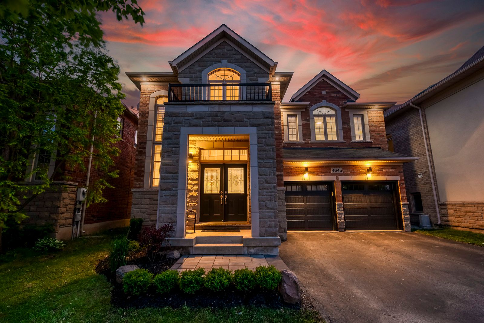 Welcome to 4645 ethel rd where luxury meets location. This fully renovated family home in alton village offers over 4,200 sq ft of finished living space (2,966 sq ft above grade + approx. 1,300 sq ft below grade), blending elegance with modern finishes and colours. Situated on a beautifully landscaped lot with mature trees and premium stonework, this 4+1 bedroom home has been completely transformed with top-of-the-line finishes and custom details throughout. Step inside to soaring 9-foot smooth ceilings, rich hardwood flooring, and a welcoming stone-accented foyer. The designer kitchen is a culinary dream, featuring custom floor-to-ceiling cabinetry, polished quartz counters and backsplash, a massive island with soft-close drawers, built-in spice racks, under-cabinet led lighting, and premium fixtures. The open-concept layout flows seamlessly into a spacious dining area with coffered ceilings and a cozy living room centered around a cast gas fireplace and custom-built entertainment niche with smoked glass shelving. Upstairs, you'll find four generously sized bedrooms with new carpets, upgraded closet systems, and pot lights throughout. The primary suite offers two walk-in closets with custom organizers and a spa-like ensuite with a freestanding tub, rain shower, double vanity, and ceiling-height glass enclosure. The fully finished basement adds remarkable versatility with a soundproofed den or studio, soundproofed 5th bedroom with a large walk-in closet, full bathroom, laundry, a kitchenette with wet bar and bar fridge, and engineered hardwood floors over dricore subfloor with air gap moisture protection ideal for extended family, a home business, or entertaining. This is a rare opportunity to own a turnkey home in one of burlington's most desirable neighbourhoods. Nothing left to do but move in and enjoy.