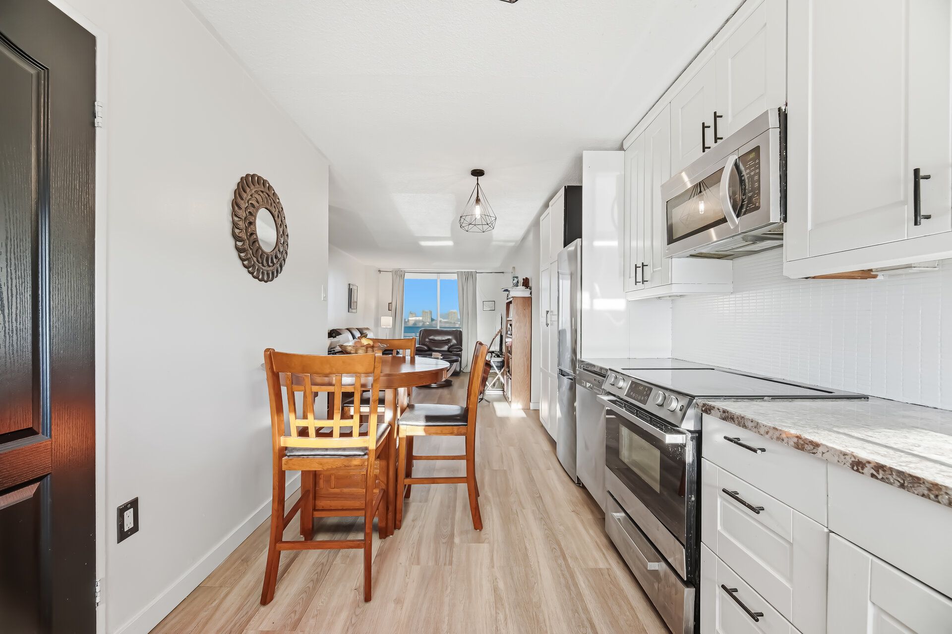 • Beautiful laminate flooring and stainless steel appliances enhance the space.