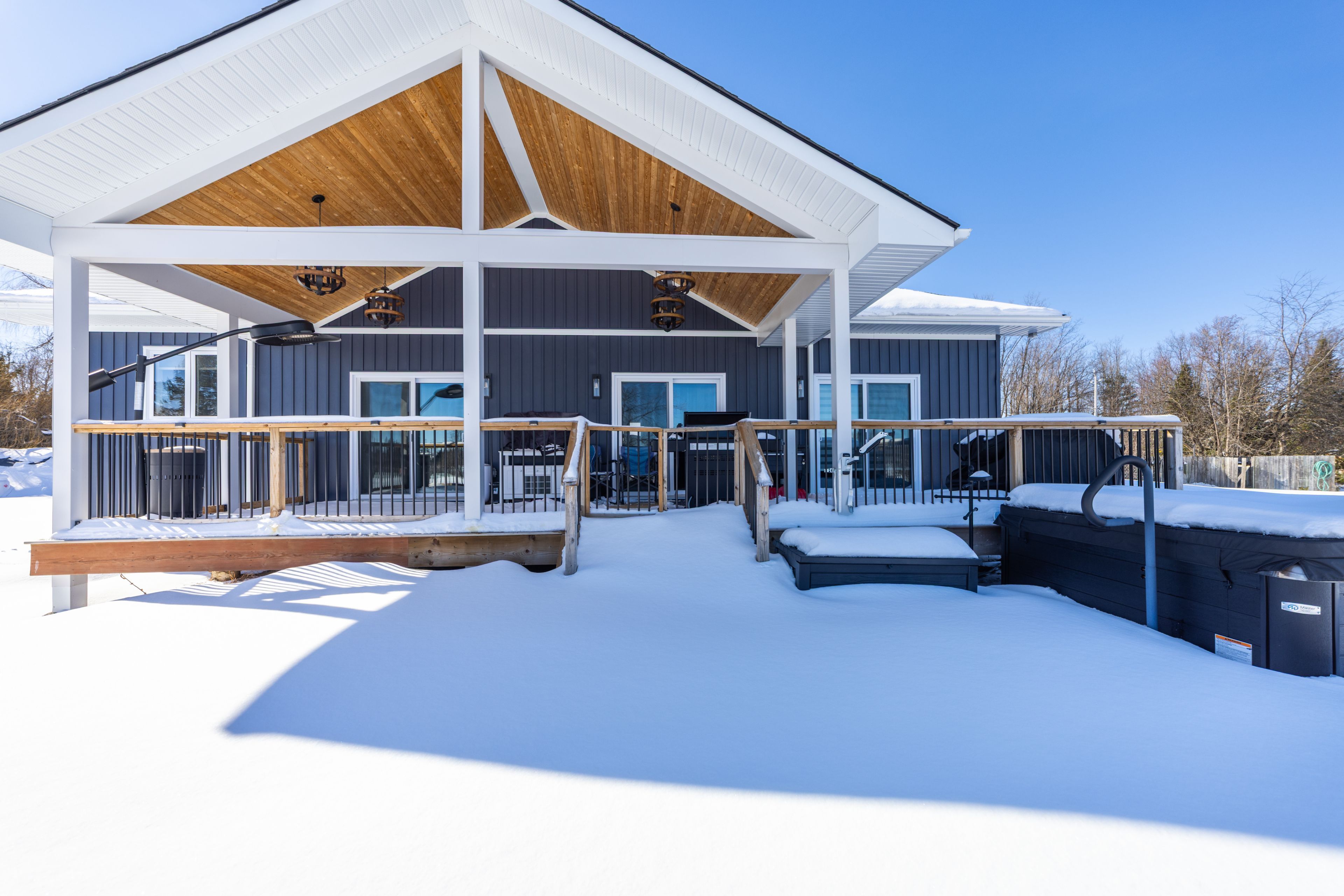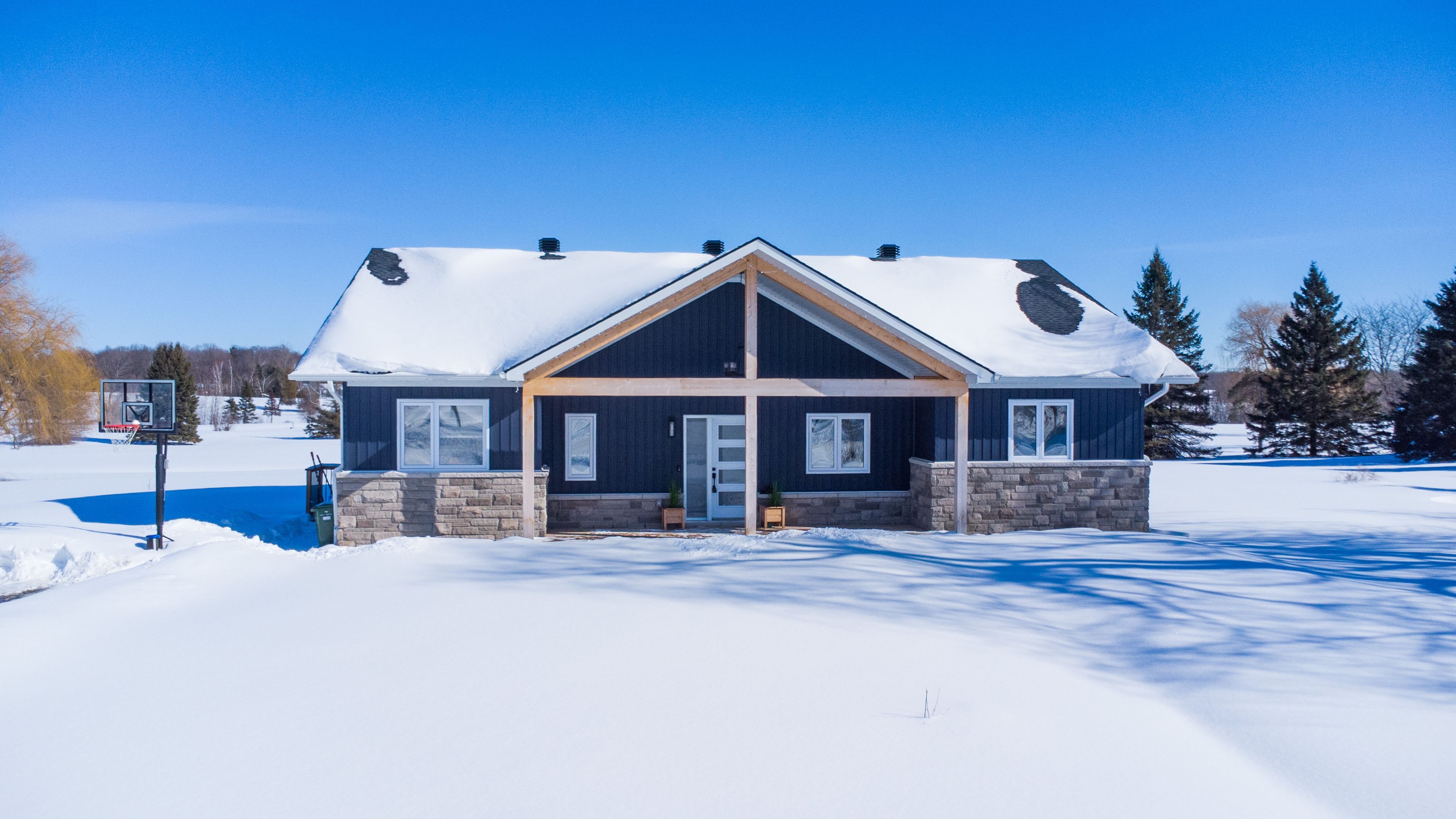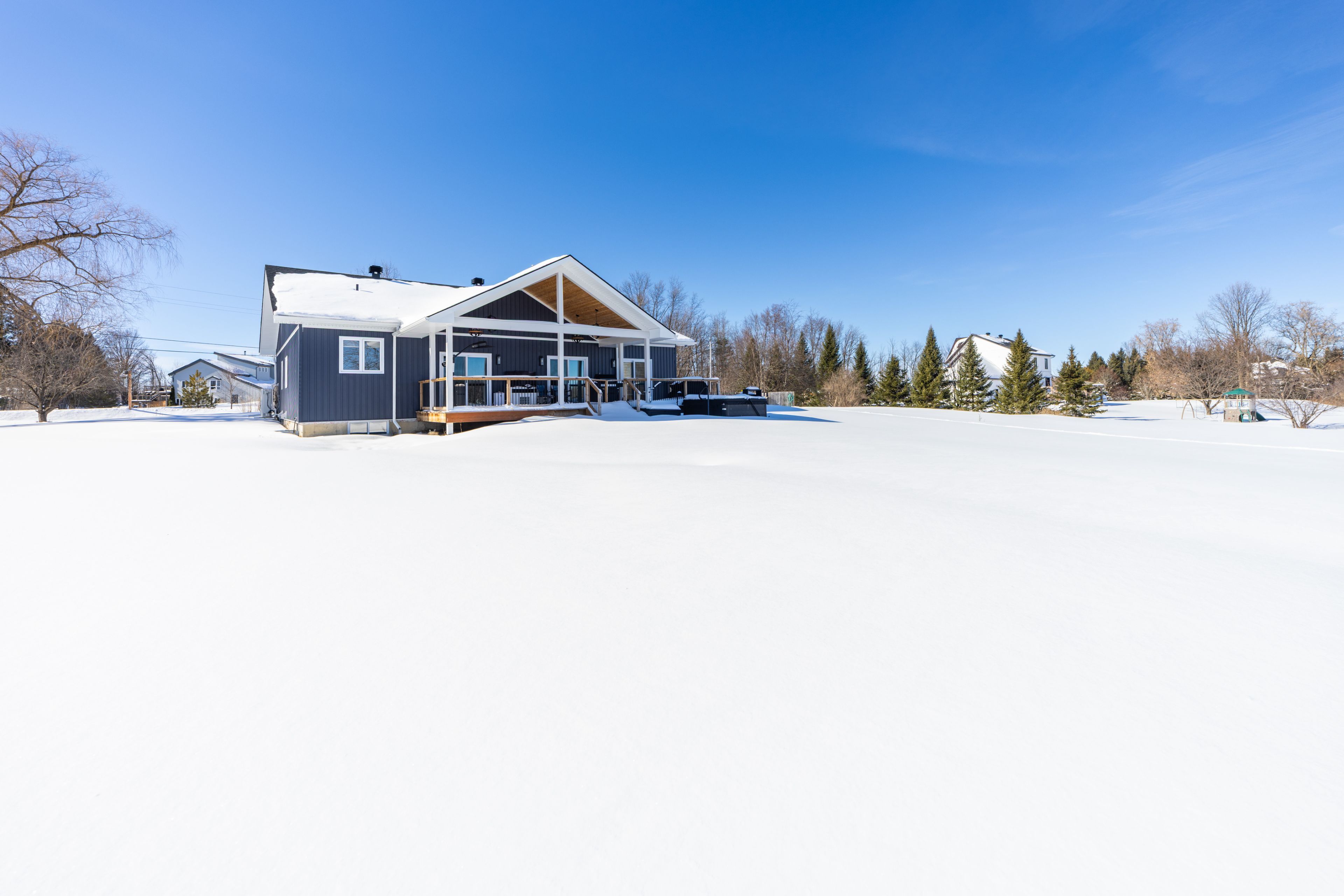 Welcome to 4645 mcneely road a stunning 2023-built bungalow set on nearly 1. 3 acres, backing onto the picturesque bearbrook golf course. Tarion builder tsh homes proudly crafted this quality-built custom home with zip system r-sheathing, ensuring enhanced durability and energy efficiency. This rare offering features four bedrooms on the main level, designed with both family living and modern elegance in mind. The private primary suite is thoughtfully tucked away, complete with a sunlit walk-in closet, a spa-inspired ensuite, and walkout access to a covered deck overlooking the fairway. A versatile den provides the perfect space for working from home. At the heart of the home, the chefs kitchen and great room impress with quartz countertops, a built-in wall oven, wine fridge, pot filler, and rich hand-scraped hickory hardwood floors an inviting space for gatherings and entertaining. Three additional bedrooms and a beautifully appointed main bath with designer finishes complete the main floor. The lower level, with 9-foot ceilings and a rough-in for a full apartment, offers incredible flexibility ideal for an in-law suite or income potential. With a septic system sized to accommodate both a one-bedroom apartment and a two-bedroom coach house, the property is perfectly suited for multigenerational living or future expansion. Additional highlights include a generac outdoor gas generator for year-round peace of mind. Blending luxury, comfort, and endless possibilities, this home is truly one of a kind. 24hr irrevocable
