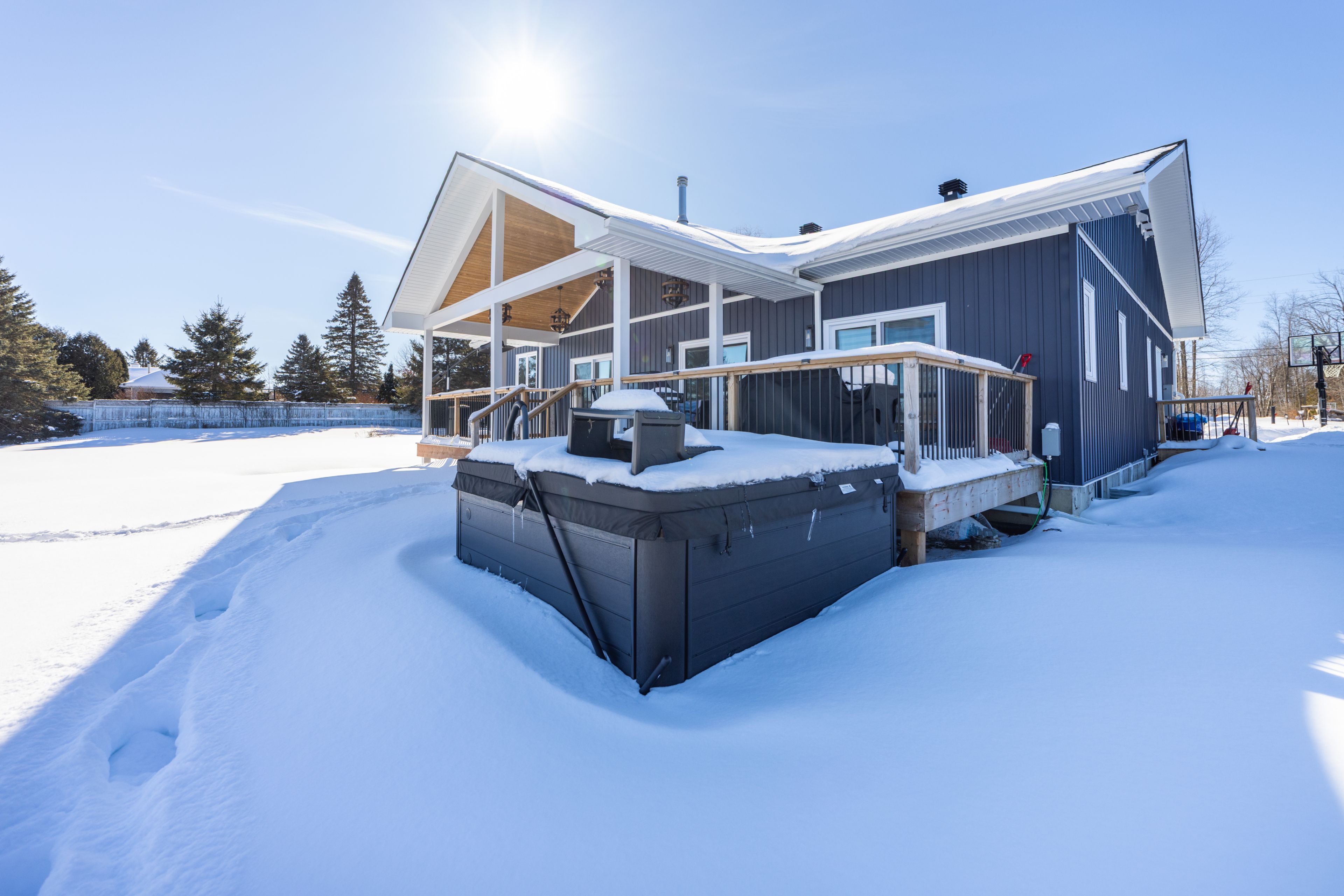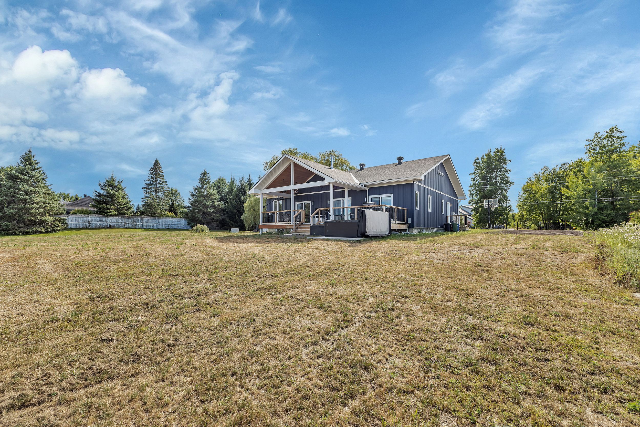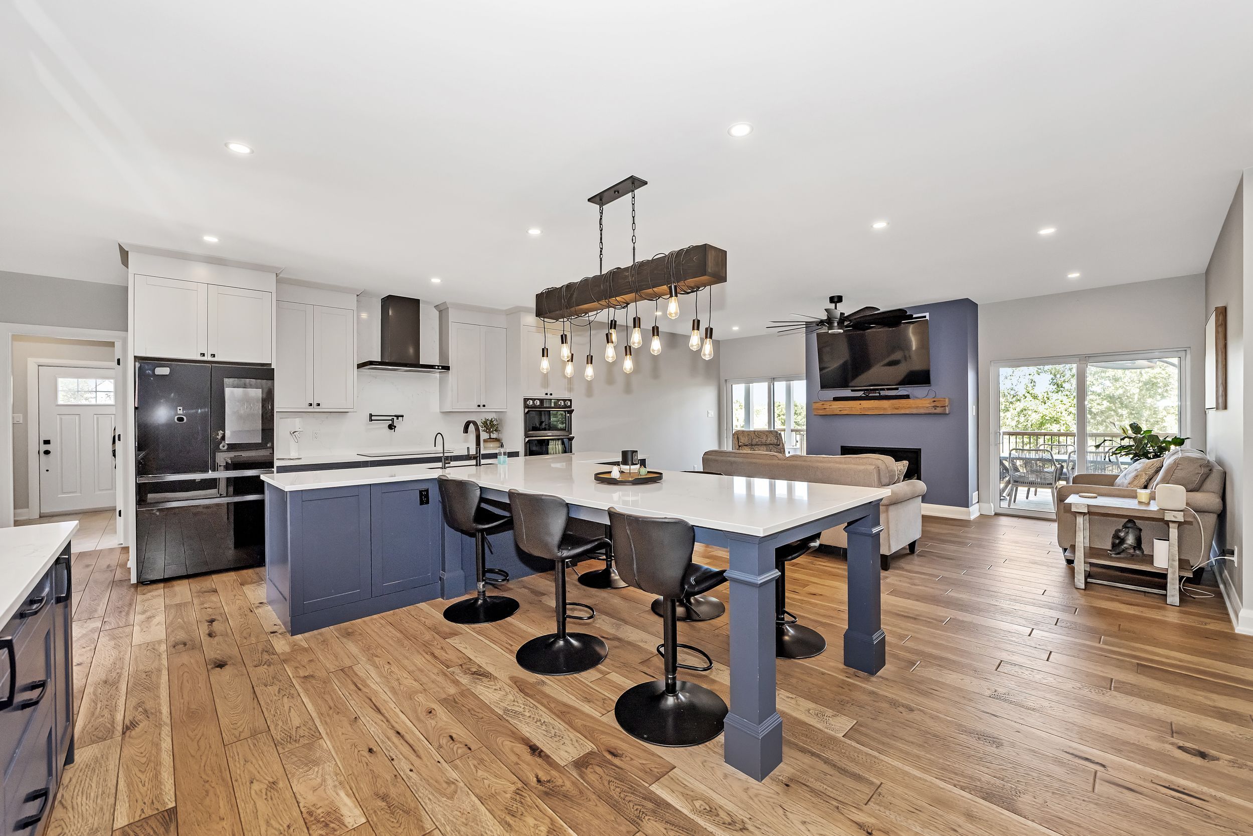 Welcome to 4645 mcneely road a stunning 2023-built bungalow set on nearly 1. 3 acres, backing onto the picturesque bearbrook golf course. Tarion builder tsh homes proudly crafted this quality-built custom home with zip system r-sheathing, ensuring enhanced durability and energy efficiency. This rare offering features four bedrooms on the main level, designed with both family living and modern elegance in mind. The private primary suite is thoughtfully tucked away, complete with a sunlit walk-in closet, a spa-inspired ensuite, and walkout access to a covered deck overlooking the fairway. A versatile den provides the perfect space for working from home. At the heart of the home, the chefs kitchen and great room impress with quartz countertops, a built-in wall oven, wine fridge, pot filler, and rich hand-scraped hickory hardwood floors an inviting space for gatherings and entertaining. Three additional bedrooms and a beautifully appointed main bath with designer finishes complete the main floor. The lower level, with 9-foot ceilings and a rough-in for a full apartment, offers incredible flexibility ideal for an in-law suite or income potential. With a septic system sized to accommodate both a one-bedroom apartment and a two-bedroom coach house, the property is perfectly suited for multigenerational living or future expansion. Additional highlights include a generac outdoor gas generator for year-round peace of mind. Blending luxury, comfort, and endless possibilities, this home is truly one of a kind. 24hr irrevocable