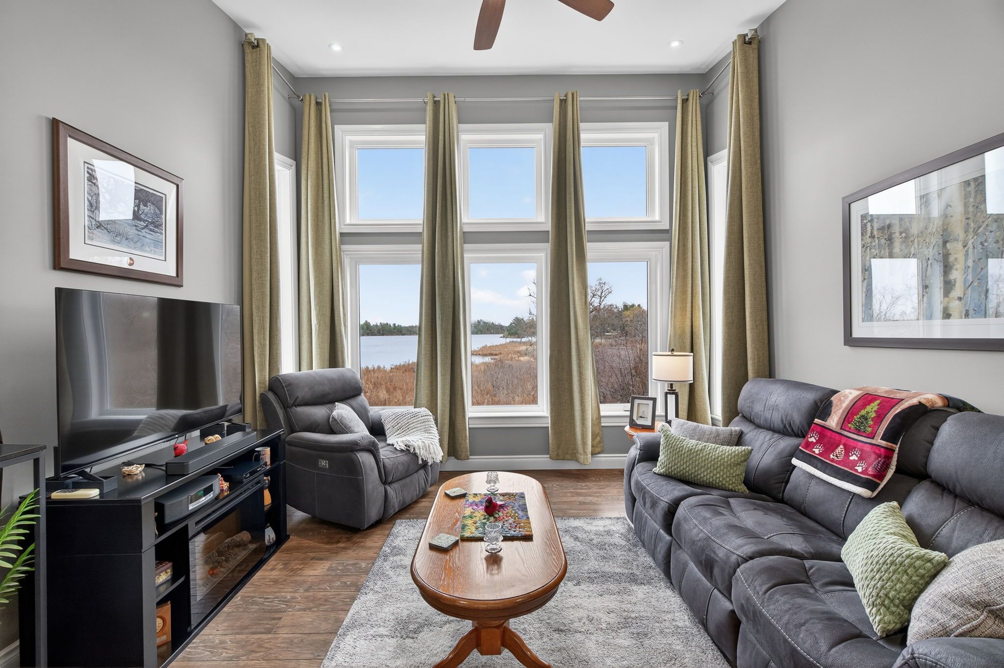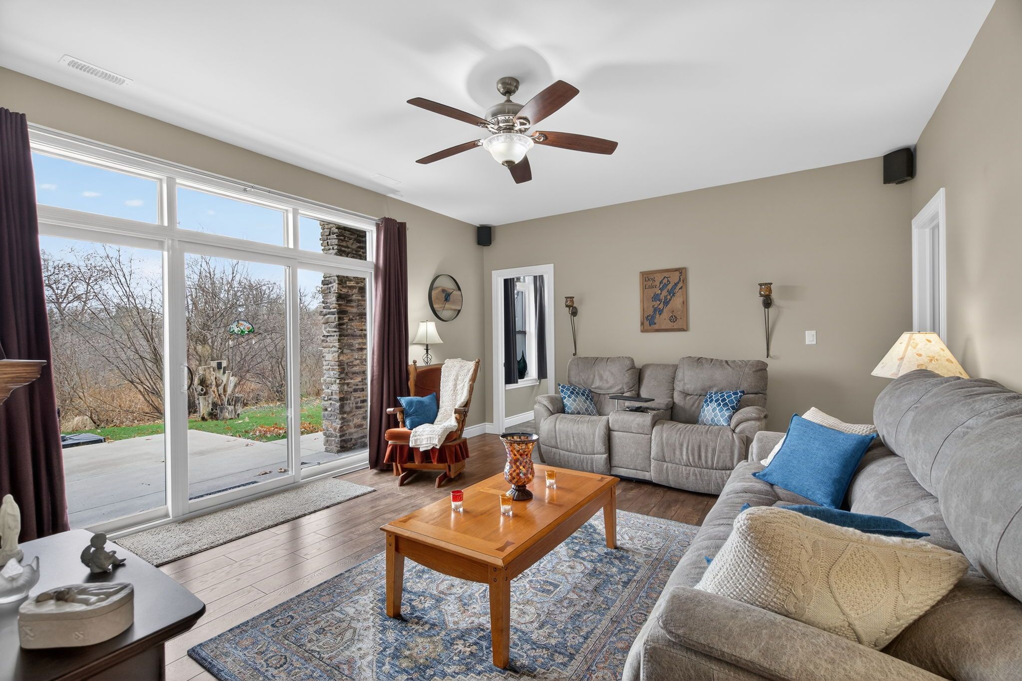 • Spacious upper balcony offering beautiful views of Dog Lake.