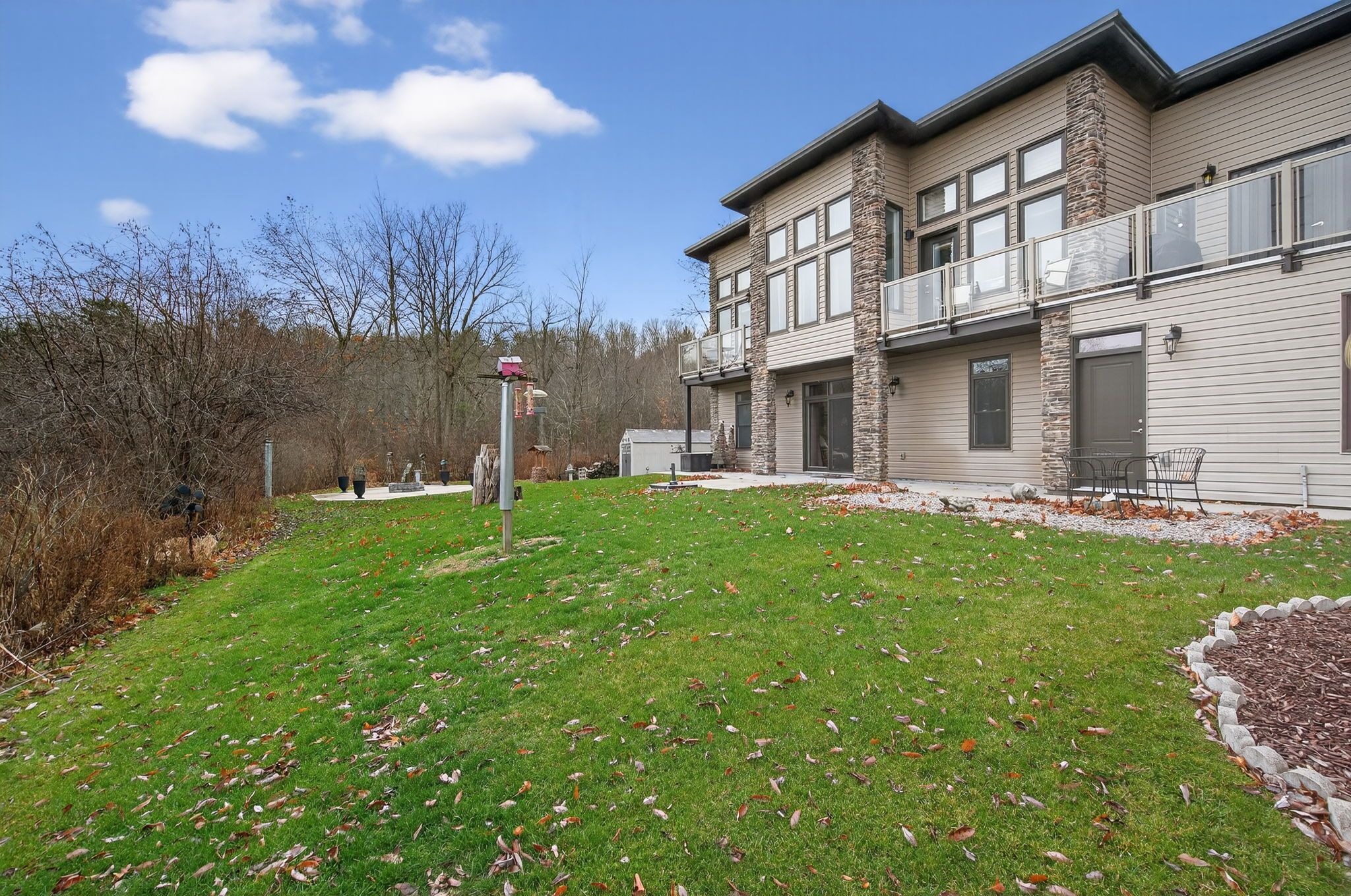 Impeccably built with architectural sophistication, this contemporary lakefront residence showcases dramatic window walls, rich stone columns, and a sprawling upper balcony perfect for soaking in the surrounding beauty. With soaring13-foot ceilings on the main level, a metal roof with leaf guards, and a design that blends modern lines with warm natural textures, the home offers an elevated living experience from the moment you arrive. Set on 85 ft. Of dog lake waterfront, on just under an acre and part of the renowned rideau system, the property offers exceptional water views, a 55 ft. Permanent dock, and recreational opportunities with great fishing and impressive water depth - up to70 feet directly out front. The home also sits on a well-maintained private road with year-round plowing and maintenance for only $500 annually, and features a drilled well providing an abundance of good water. Built on a slab just 10 years ago, the home has been thoughtfully engineered with six inches of underside insulation for comfort, and longevity. Inside, the layout is both functional and luxurious, featuring two bedrooms on the lower level and a private master retreat upstairs complete with its own balcony and walk-in closet. The home is hot-tub ready with a muskoka room designed for year-round enjoyment, and also includes a propane gas feed for your barbecue -ideal for lakeside entertaining. The 200-amp electrical panel comes equipped with a pigtail for easy generator hookup. All appliances, including the washer and dryer, are included with the sale, making this a turnkey opportunity for those seeking a high-quality, low-maintenance lifestyle. Further, the 160 sq. Ft. Shed offers excellent storage, and practical conveniences such as door-side garbage and recycling pickup and even amazon delivery, ensure effortless day-to-day living.