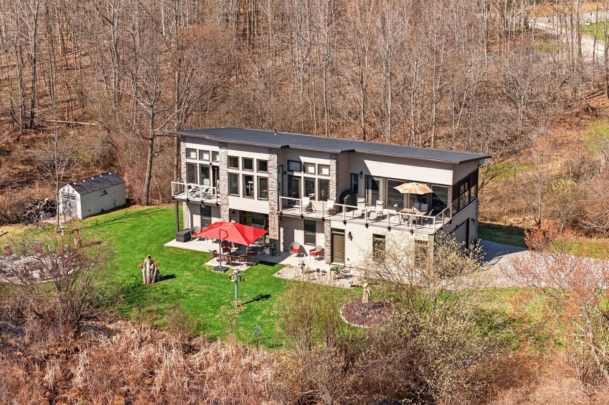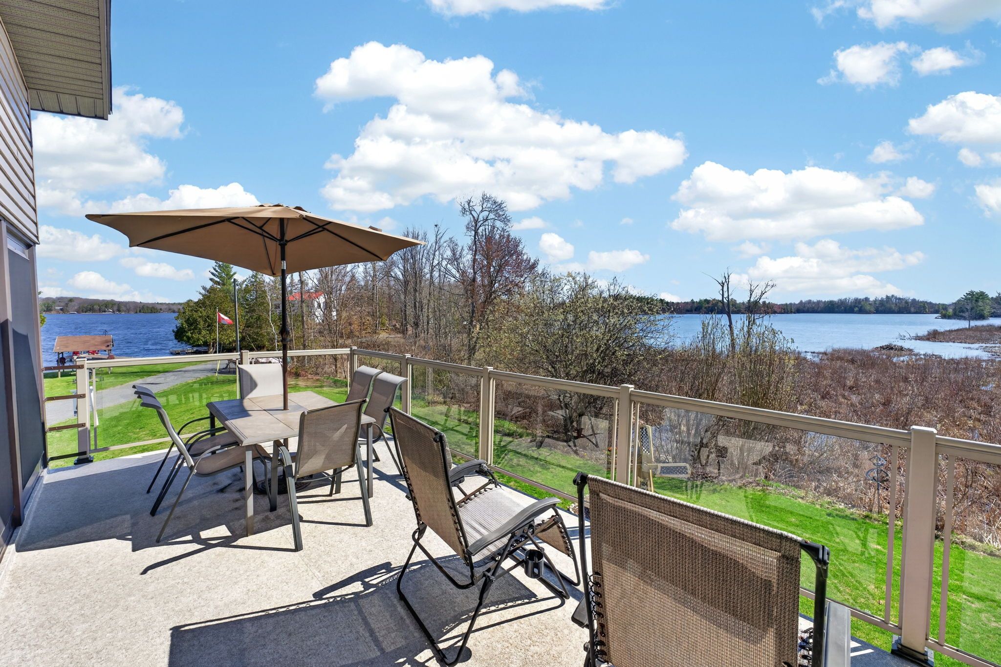 Impeccably built with architectural sophistication, this contemporary lakefront residence showcases dramatic window walls, rich stone columns, and a sprawling upper balcony perfect for soaking in the surrounding beauty. With soaring13-foot ceilings on the main level, a metal roof with leaf guards, and a design that blends modern lines with warm natural textures, the home offers an elevated living experience from the moment you arrive. Set on 85 ft. Of dog lake waterfront, on just under an acre and part of the renowned rideau system, the property offers exceptional water views, a 55 ft. Permanent dock, and recreational opportunities with great fishing and impressive water depth - up to70 feet directly out front. The home also sits on a well-maintained private road with year-round plowing and maintenance for only $500 annually, and features a drilled well providing an abundance of good water. Built on a slab just 10 years ago, the home has been thoughtfully engineered with six inches of underside insulation for comfort, and longevity. Inside, the layout is both functional and luxurious, featuring two bedrooms on the lower level and a private master retreat upstairs complete with its own balcony and walk-in closet. The home is hot-tub ready with a muskoka room designed for year-round enjoyment, and also includes a propane gas feed for your barbecue -ideal for lakeside entertaining. The 200-amp electrical panel comes equipped with a pigtail for easy generator hookup. All appliances, including the washer and dryer, are included with the sale, making this a turnkey opportunity for those seeking a high-quality, low-maintenance lifestyle. Further, the 160 sq. Ft. Shed offers excellent storage, and practical conveniences such as door-side garbage and recycling pickup and even amazon delivery, ensure effortless day-to-day living.